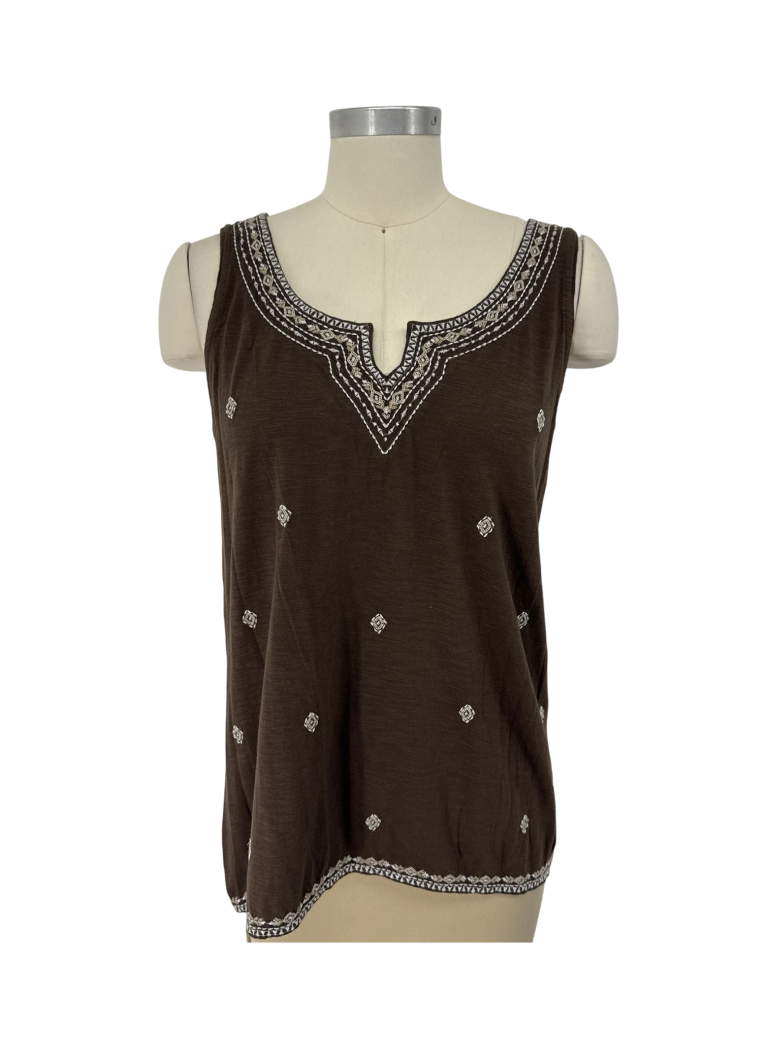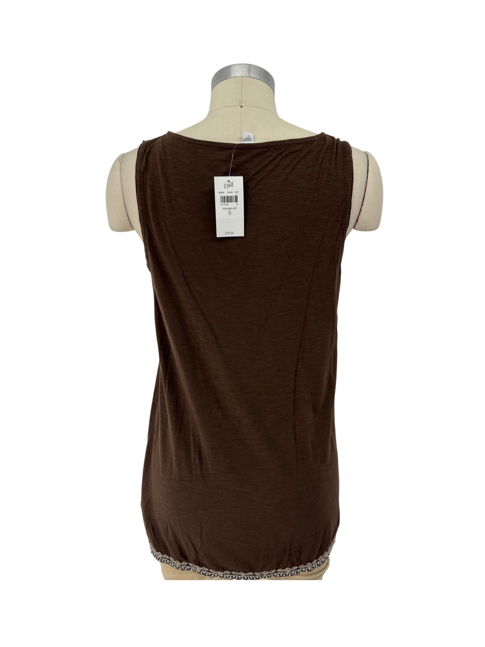 This J.Jill tank top is a stylish addition to any wardrobe. Made from a blend of cotton and modal, it offers comfort and a flattering fit. The brown color and embroidered details add a touch of elegance. Perfect for layering or wearing on its own, this tank is ideal for casual outings or dressing up for a night out. Shop now and elevate your style!