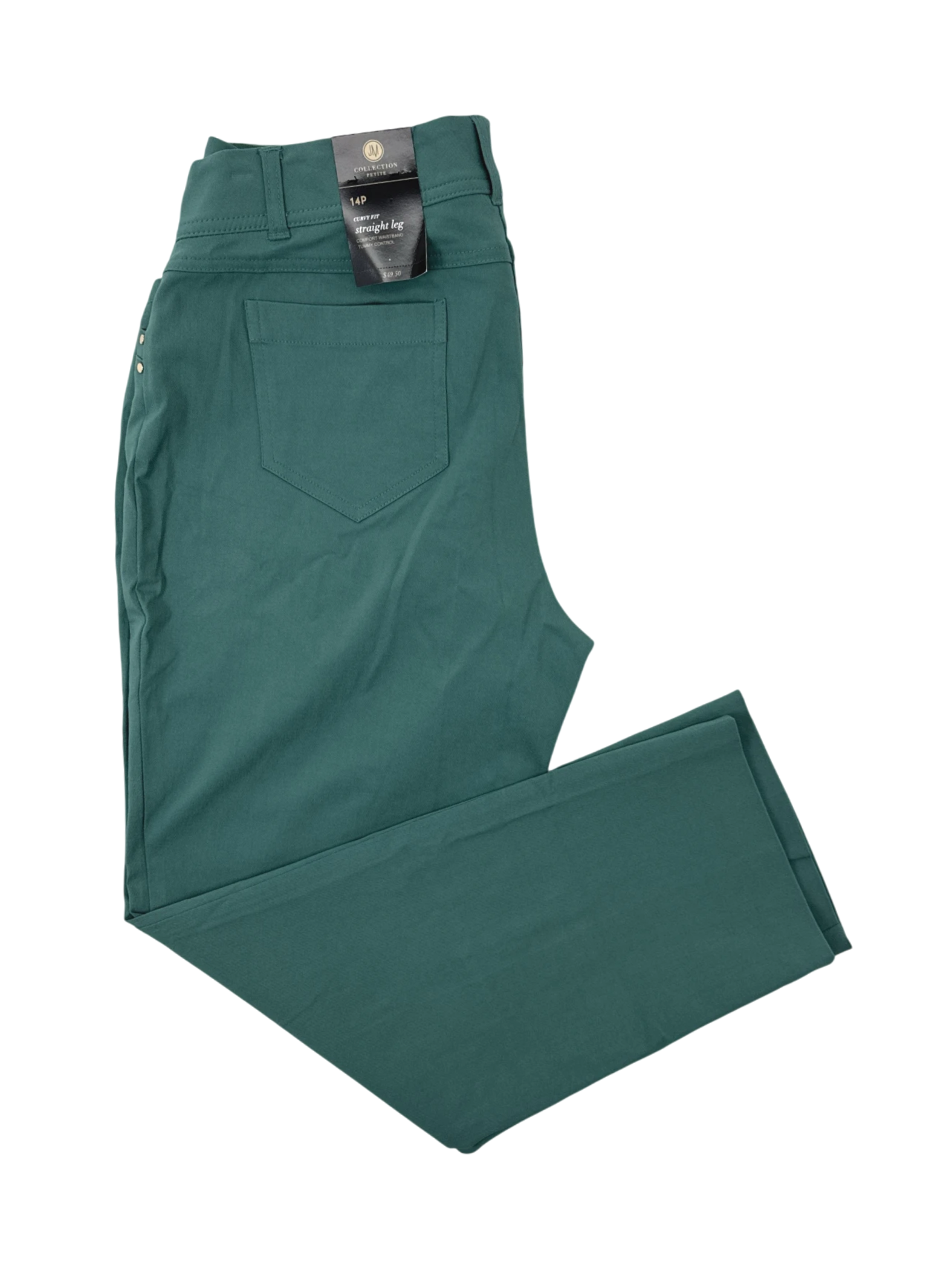 Elevate your wardrobe with these gently used JM Collection dress pants. These stylish pants feature a flattering straight leg cut and are made with comfortable material. The green color adds a touch of sophistication, making them perfect for both casual and formal occasions. Size 14P. Excellent for everyday wear or office attire. A versatile addition to any fashion-conscious woman's collection.