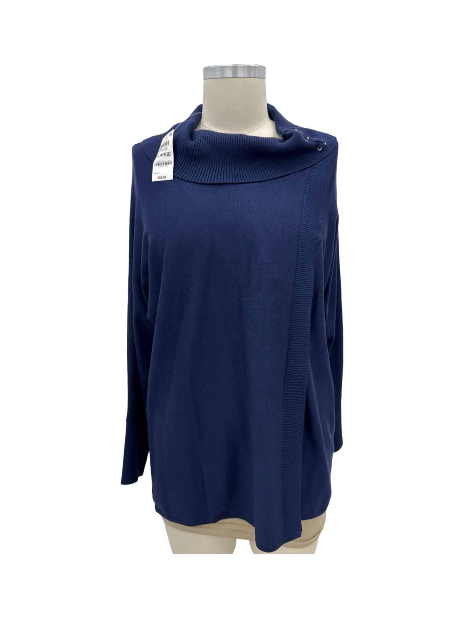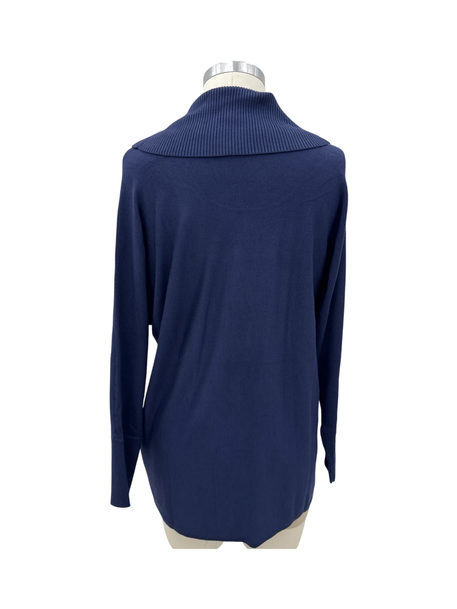 Elevate your wardrobe with this stylish pre-owned JM Collection sweater. This sweater features a chic cowl neckline. The rich Navy Blue color adds a touch of sophistication, and the XL size ensures a comfortable fit. Crafted from a blend of rayon and polyester, this sweater is perfect for staying warm during the fall and winter seasons. A versatile addition to your collection, ideal for layering or wearing on its own. This stylish piece is a must-have for any fashion-forward woman.