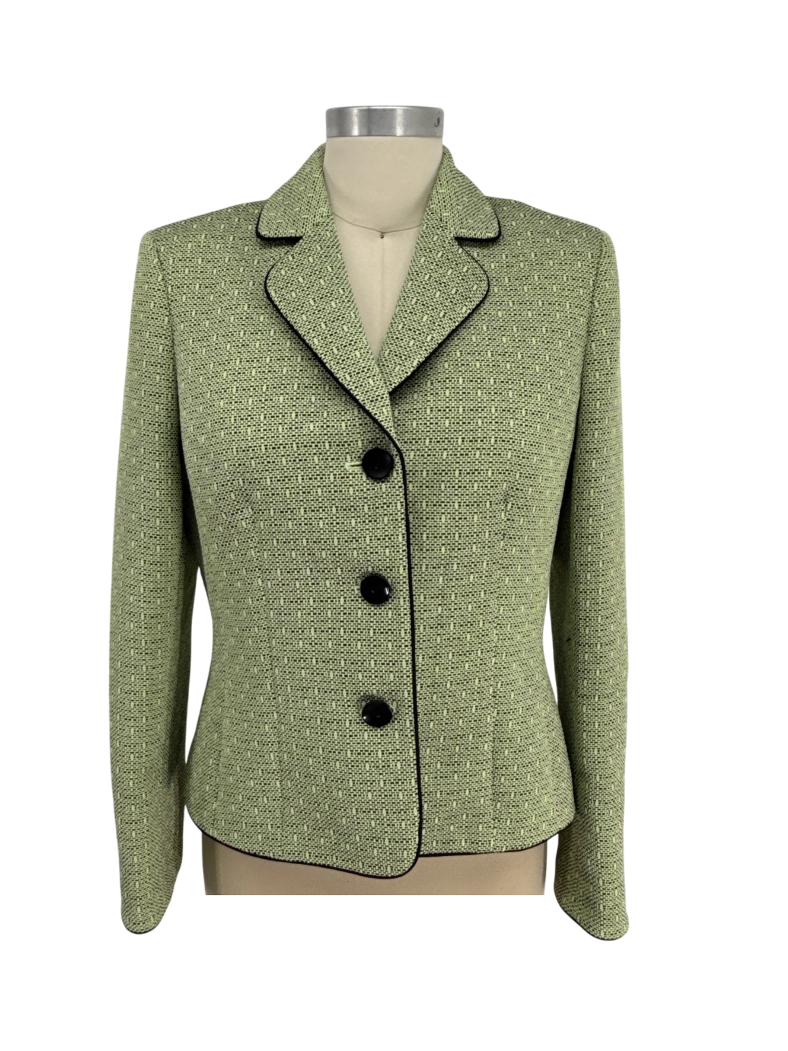 Elevate your wardrobe with this pre-owned JONES STUDIO blazer. Crafted from quality polyester, this blazer features a classic design with a modern twist. The green and black color combination adds a touch of sophistication. Ideal for adding polish to any outfit, this piece offers a timeless style that can be dressed up or down. Perfect for work or any special occasion.