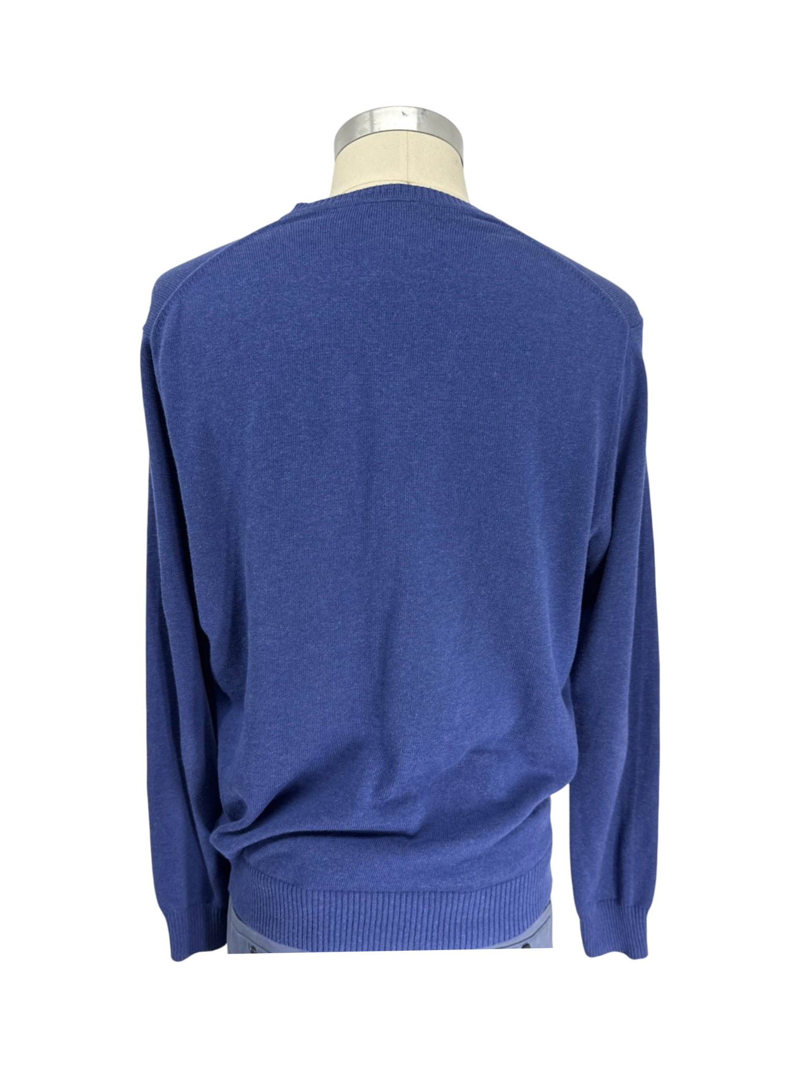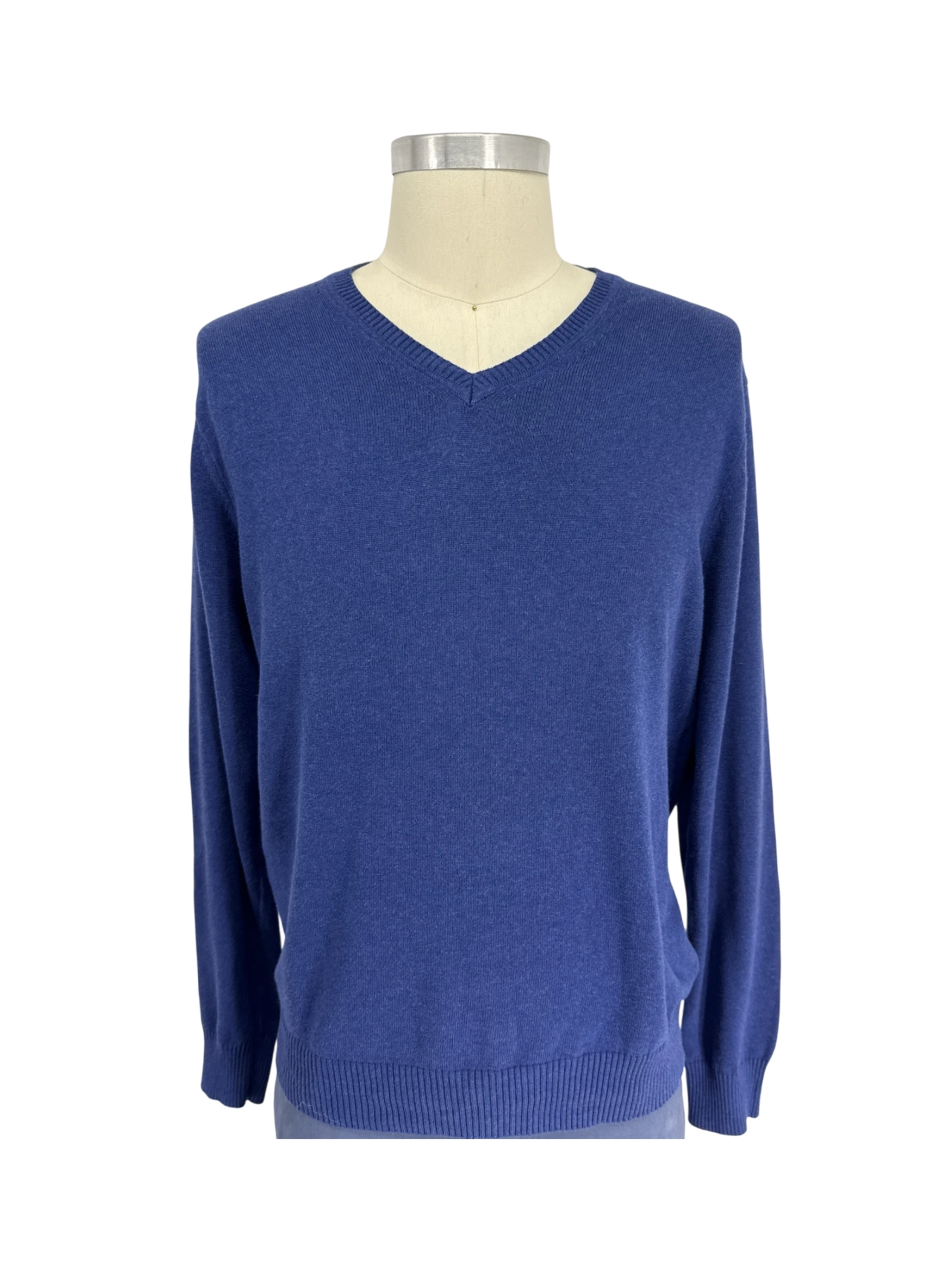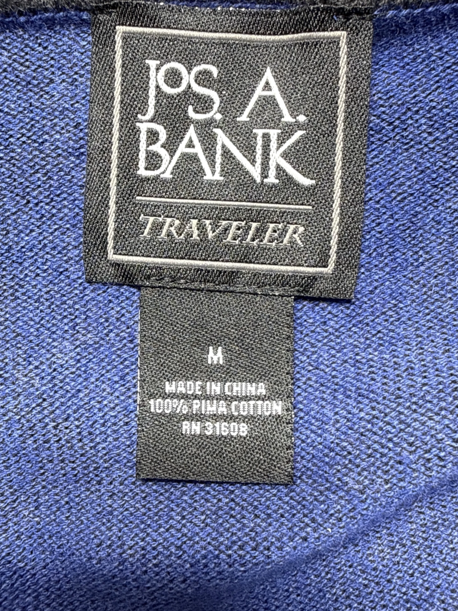 Elevate your wardrobe with this pre-owned Jos. A. Bank men's sweater. Crafted from soft, breathable cotton, this pullover features a classic V-neck design and long sleeves, making it a versatile layering piece. Its simple, solid blue color adds a touch of elegance. Perfect for everyday wear, this sweater provides both comfort and style. The size is a Men's M, and it is in excellent condition.