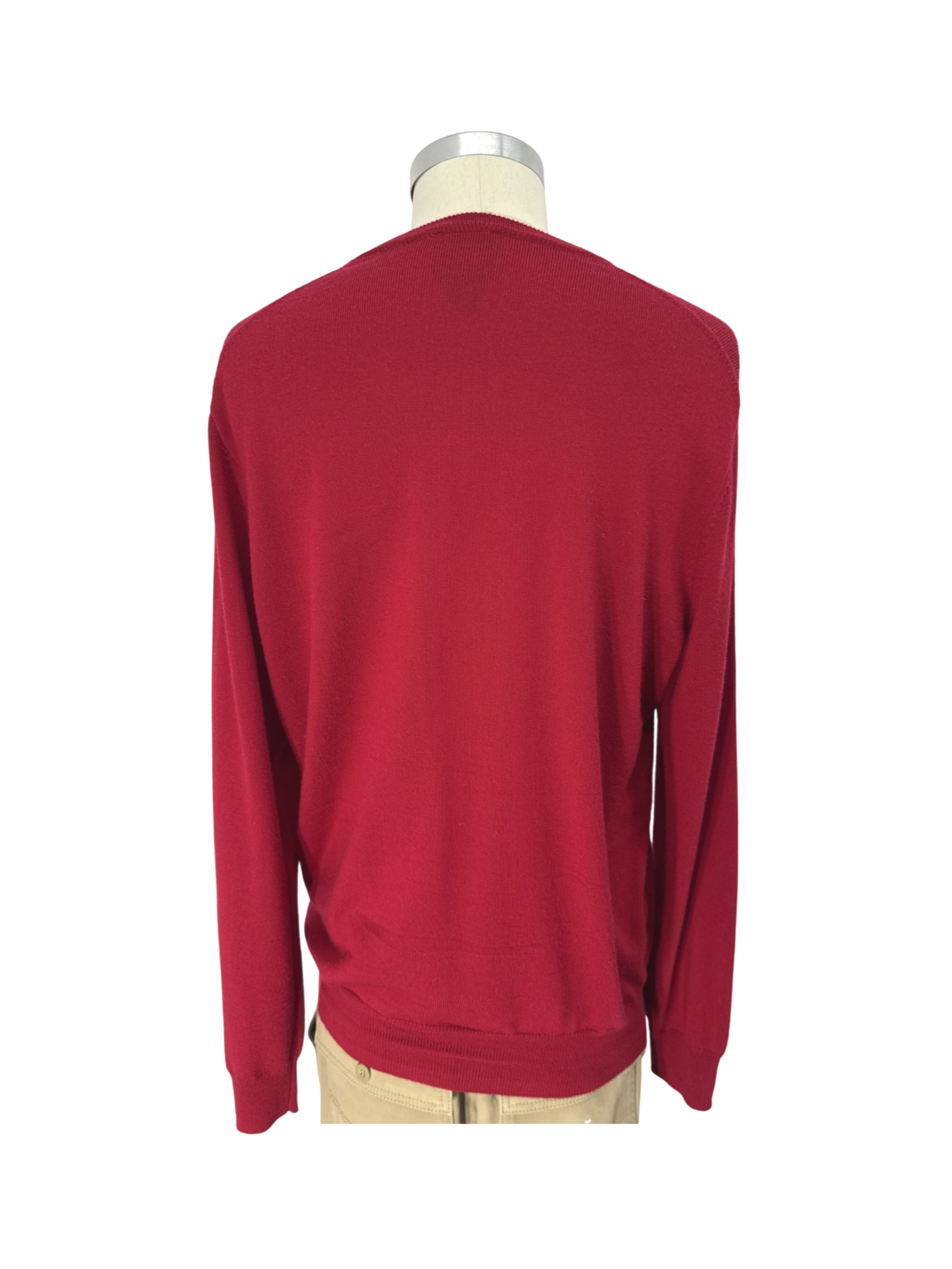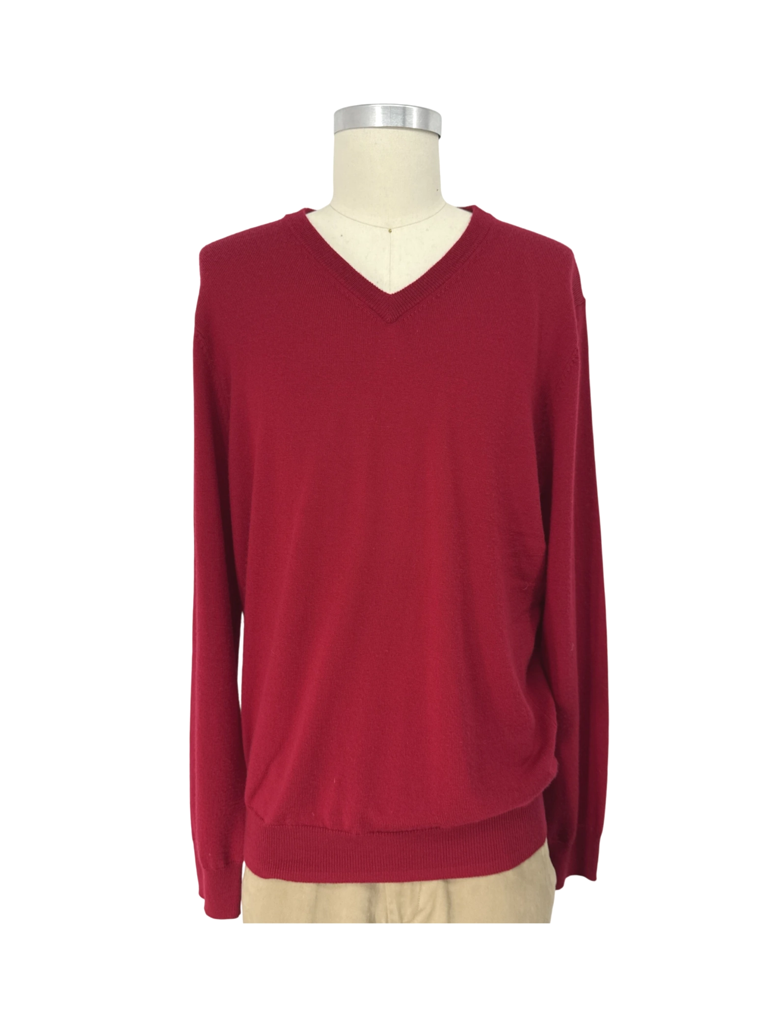 Elevate your wardrobe with this pre-owned JOS. A. BANK Traveler sweater. Crafted from 100% Merino wool, this men's sweater offers superior comfort and warmth. It features a classic V-neck and long sleeves, perfect for layering. The rich red color adds a touch of sophistication to any outfit. In excellent condition, this sweater is an ideal addition to your collection for a stylish and timeless look.