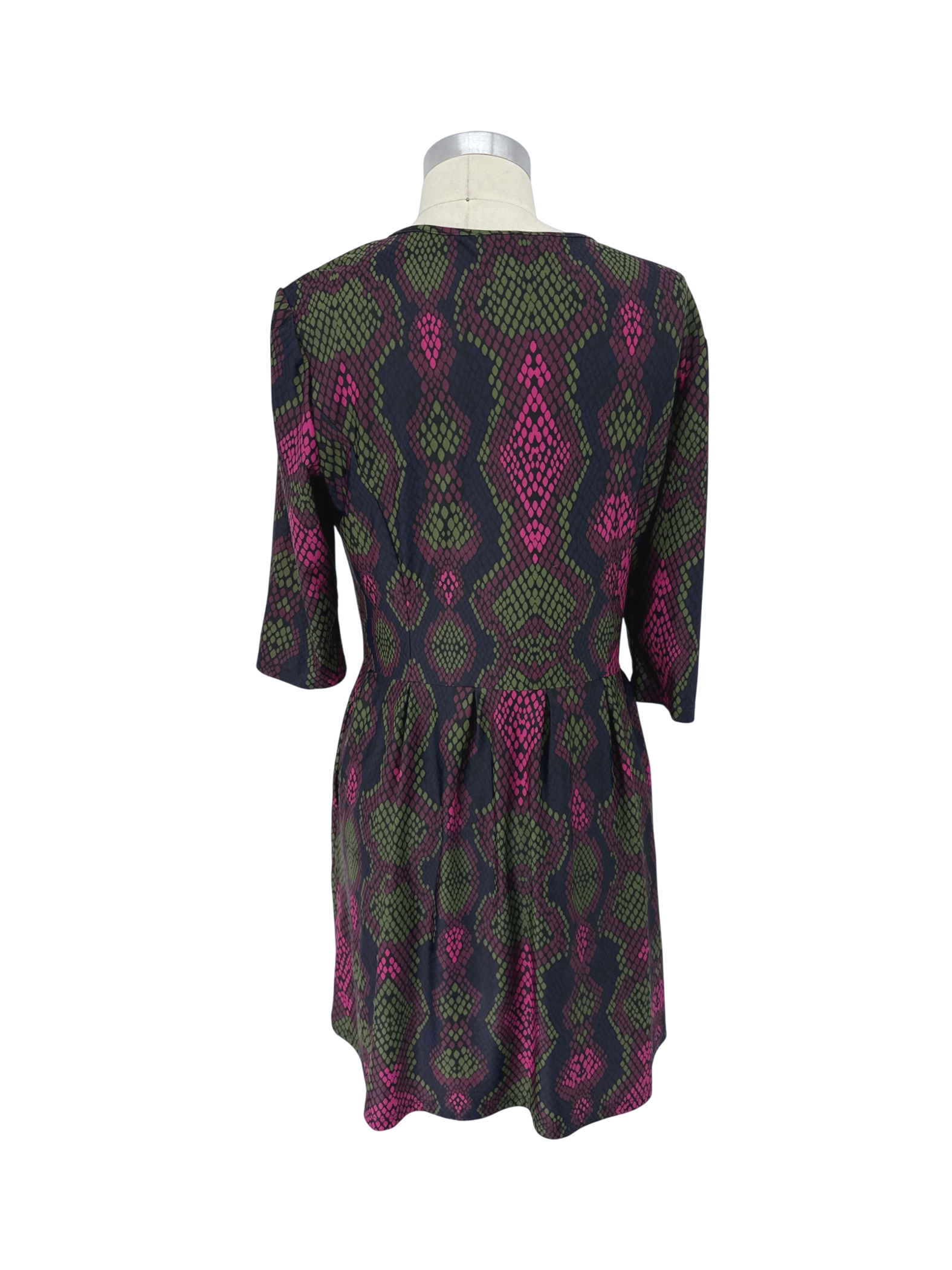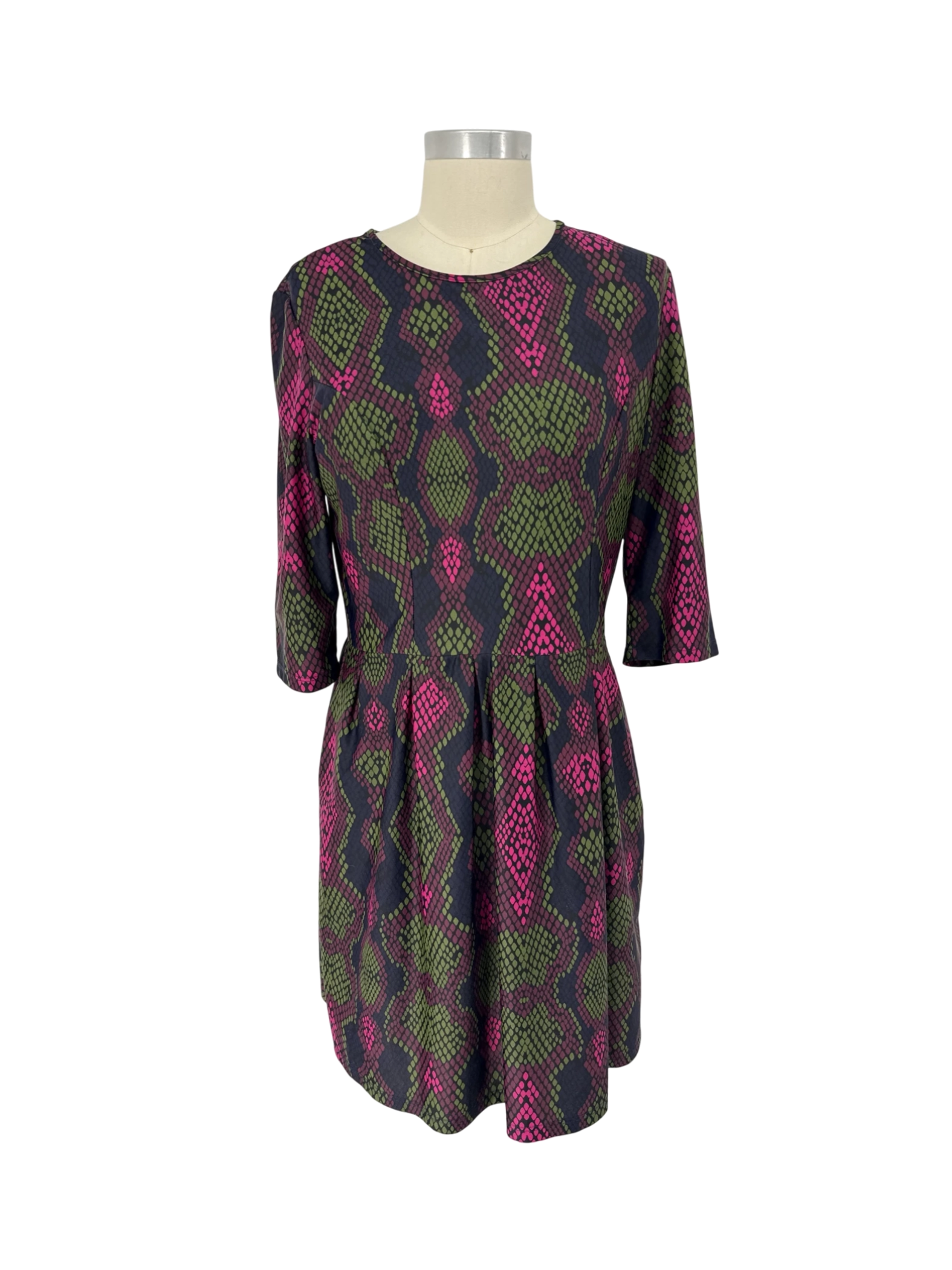 This pre-owned Jude Connally dress is a vibrant addition to any wardrobe. The A-line silhouette is flattering, and the eye-catching animal print adds a touch of boldness. Made from a comfortable blend of nylon and spandex, this dress is perfect for the transition between seasons. This dress is in excellent condition, offering both style and value.