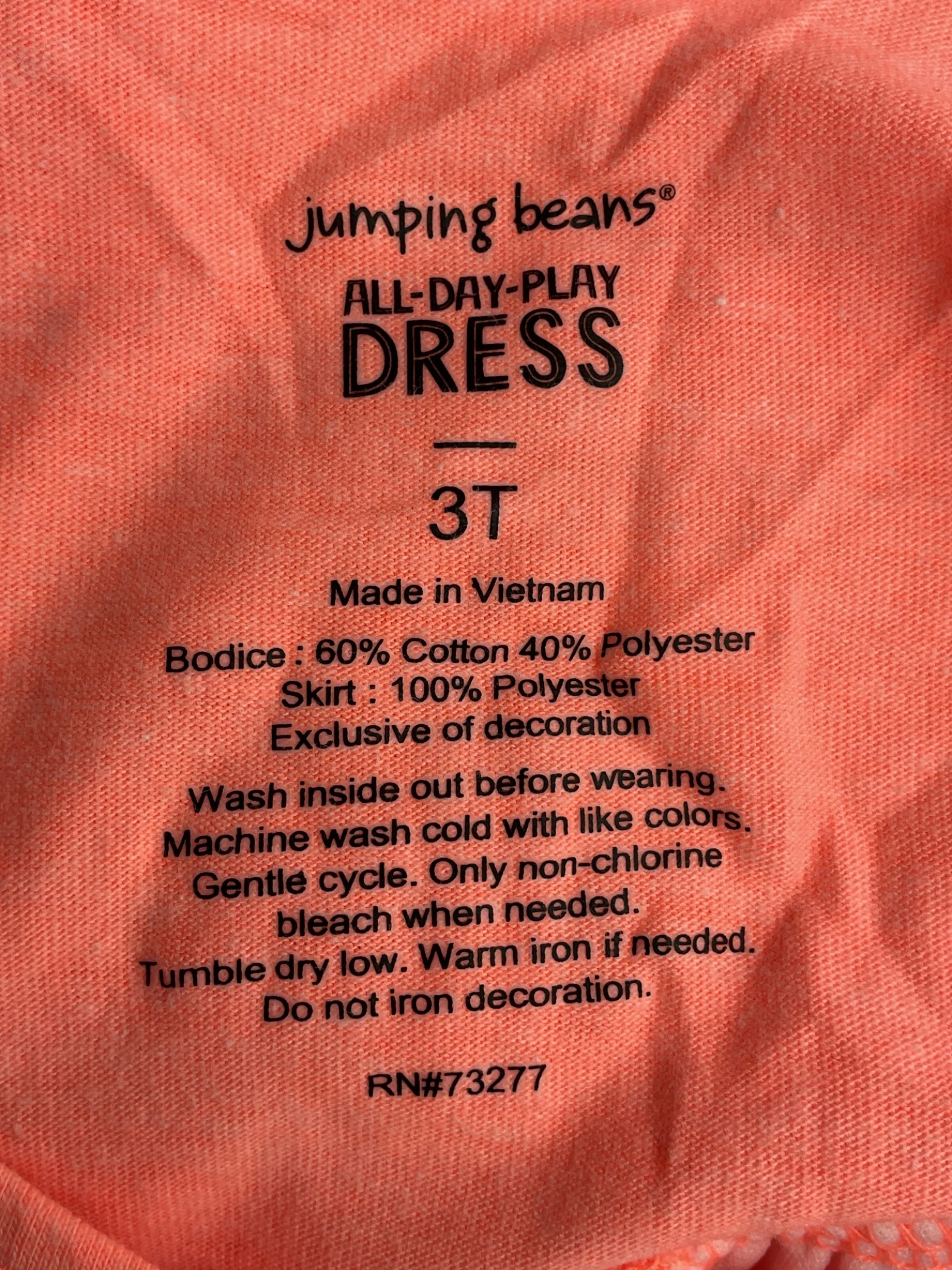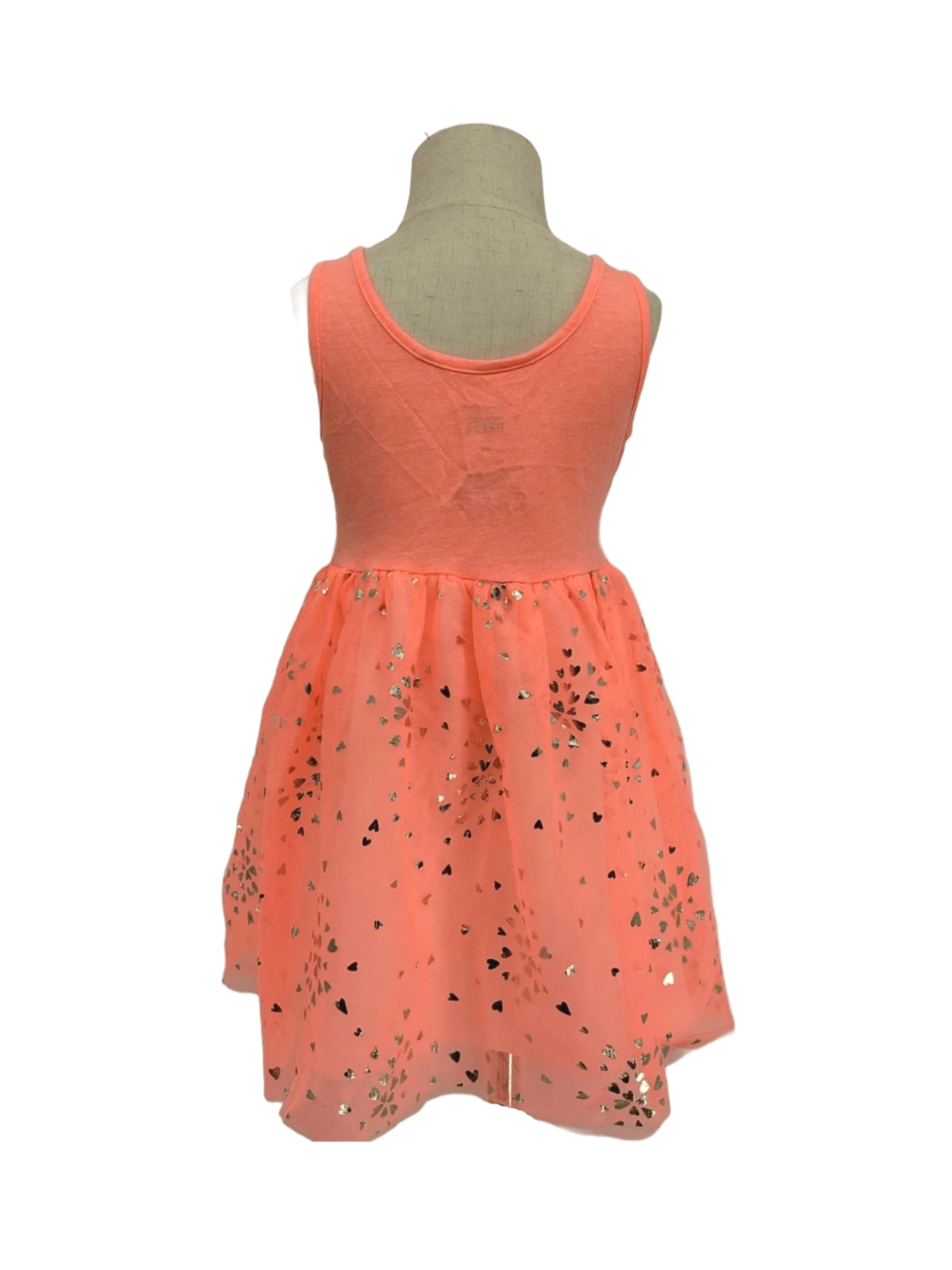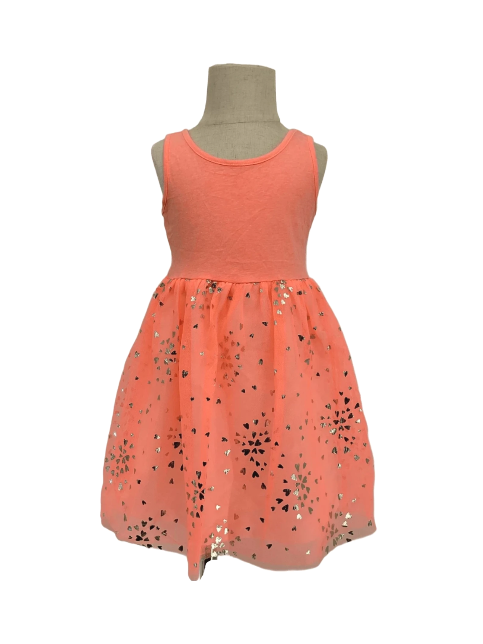 A children's pink dress with heart designs located at the lower half of the dress, size 3T.