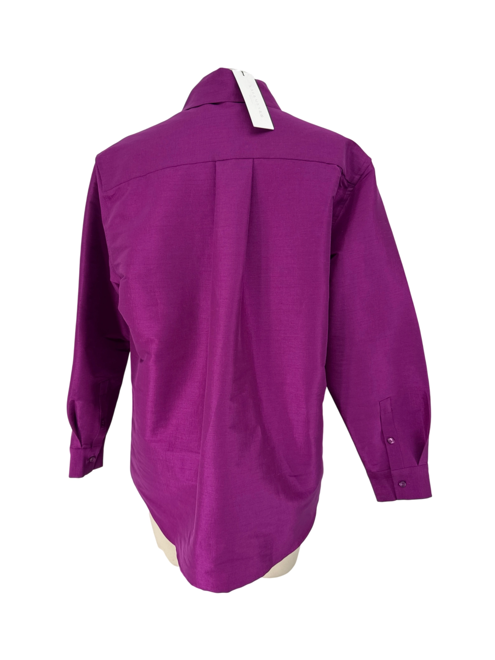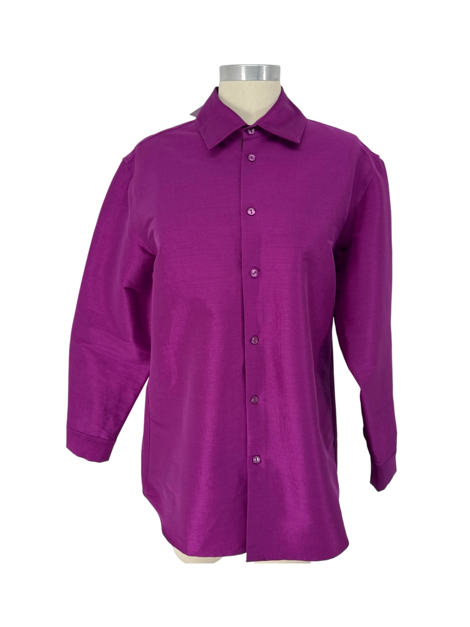 This stunning, pre-owned KALLMEYER blouse is the perfect addition to any wardrobe. Crafted from 100% polyester in a vibrant purple hue, this button-up blouse features a classic collar and long sleeves, offering timeless elegance. The luxurious fabric gives it a silky look and feel. Ideal for fall or winter, this blouse provides both style and comfort. A stylish and versatile top for any occasion.