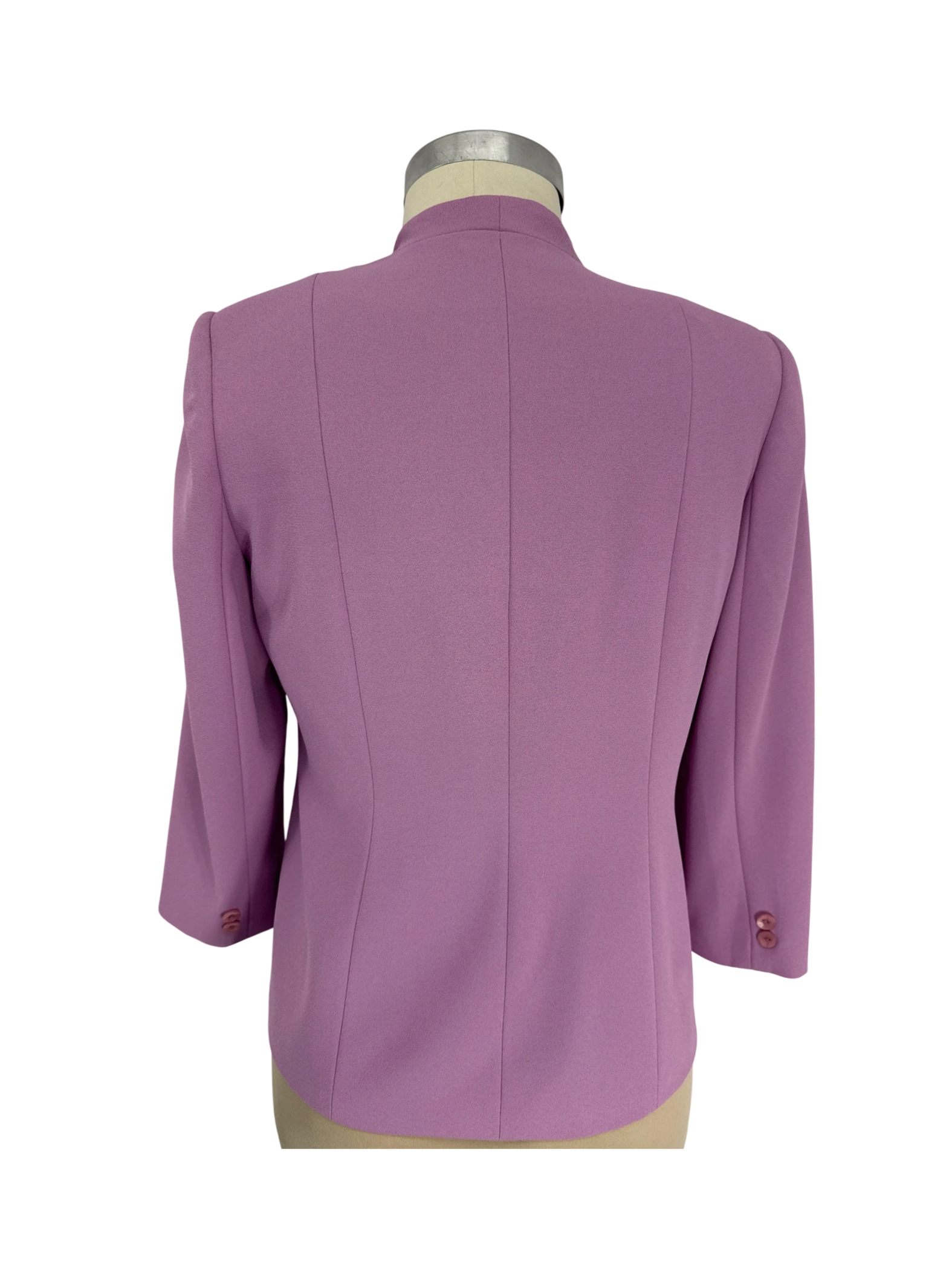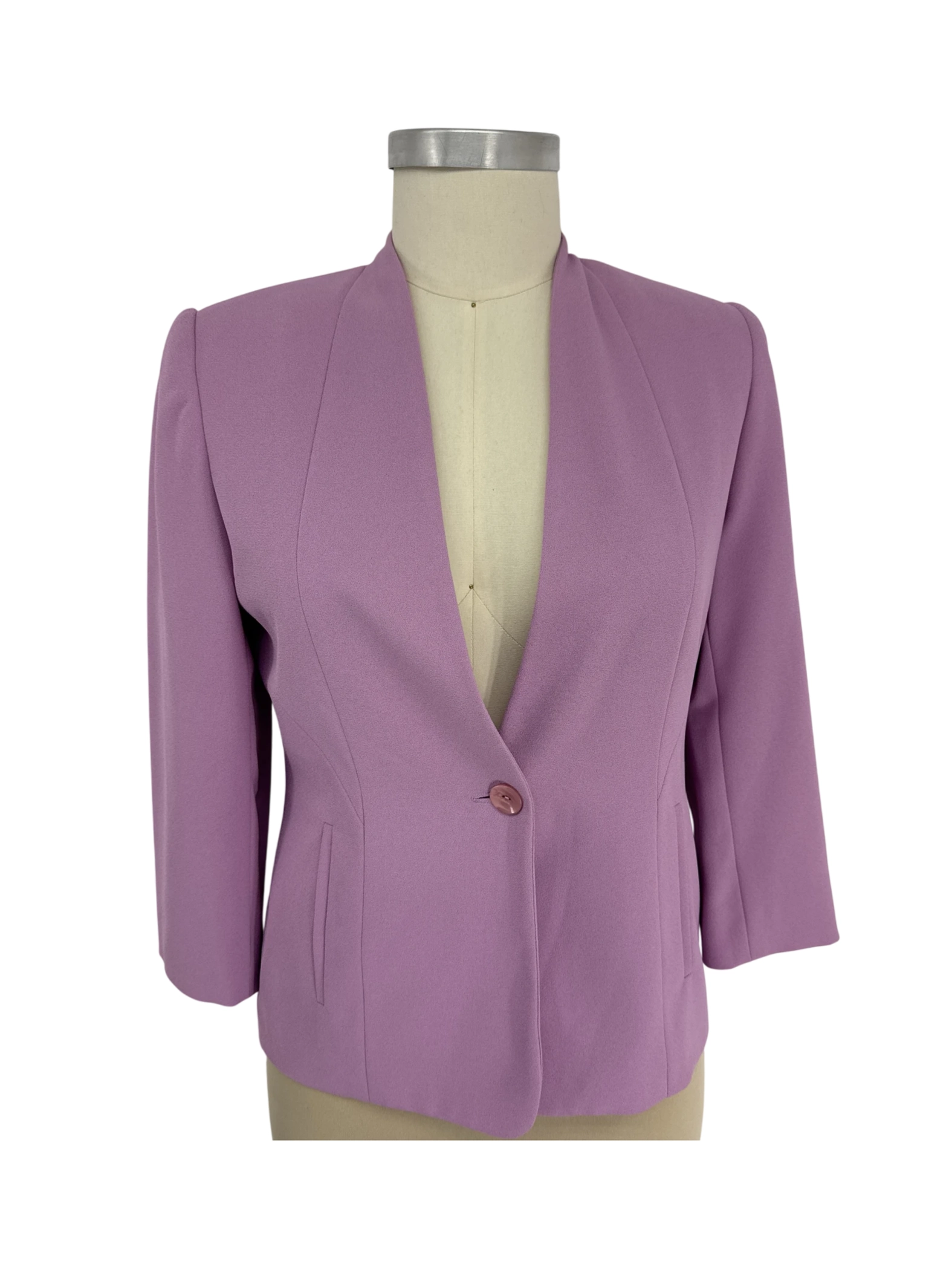 Elevate your wardrobe with this stylish pre-owned Karen Scott blazer. Crafted from a quality polyester fabric in a lovely shade of purple, this blazer features a classic design suitable for both work and casual occasions. The tailored fit and three-quarter sleeves add a touch of sophistication. A versatile piece that can easily be dressed up or down. Perfect for adding a pop of color to any outfit.