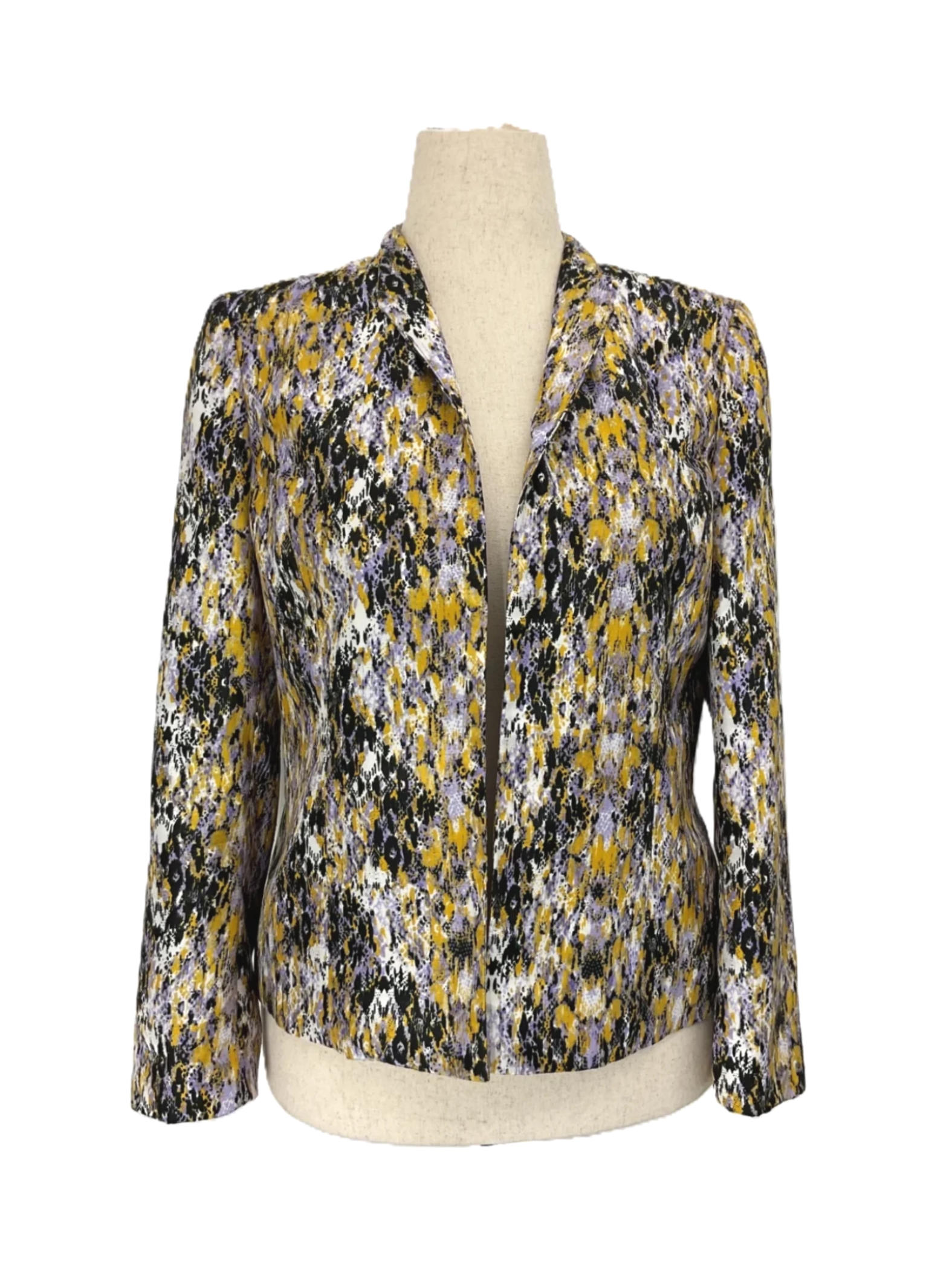 This is a women's Kasper yellow and black polyester casual blazer in size 10P.