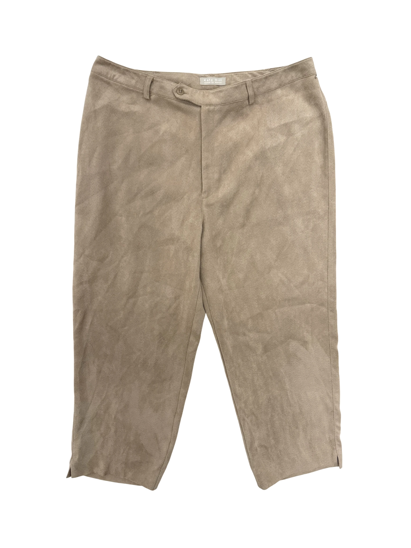Elevate your wardrobe with these pre-owned Kate Hill wide-leg pants, perfect for fall. Crafted from a luxurious brown polyester, these dress pants offer a comfortable and stylish fit. Featuring a classic design and a flattering wide-leg cut, these pants are versatile enough for both casual and dressier occasions. The high-quality material ensures durability and long-lasting wear. A stylish addition to any closet.