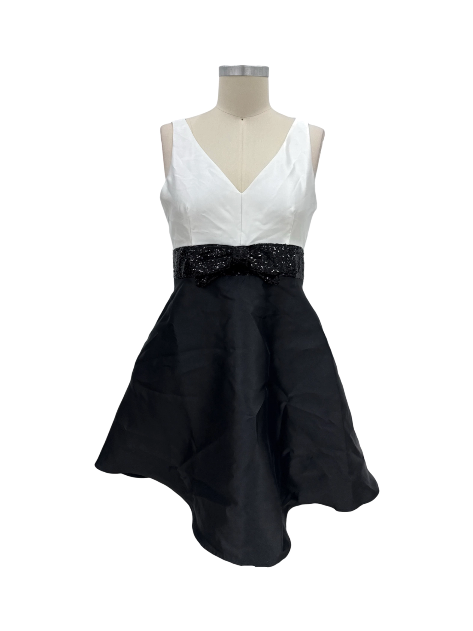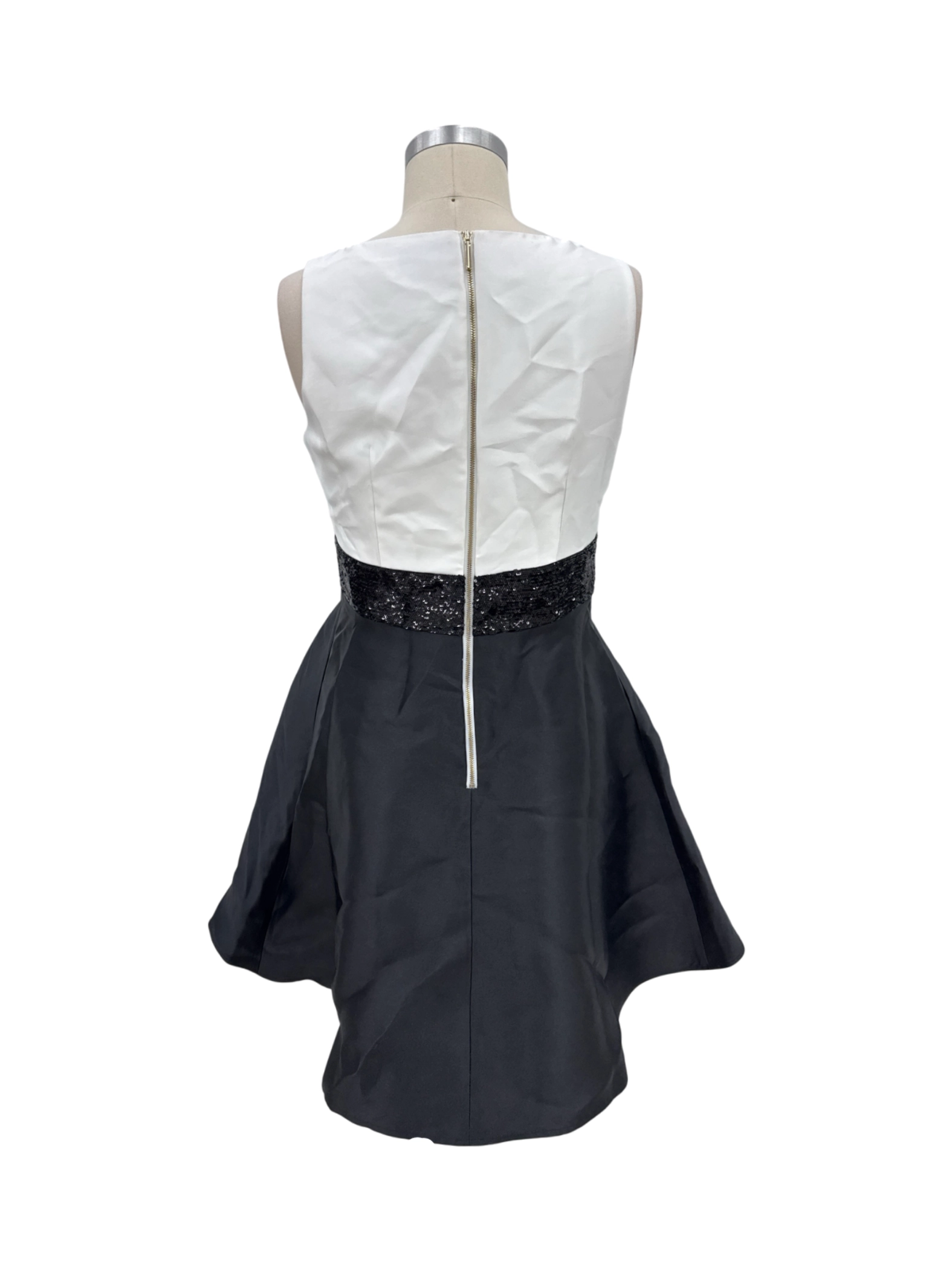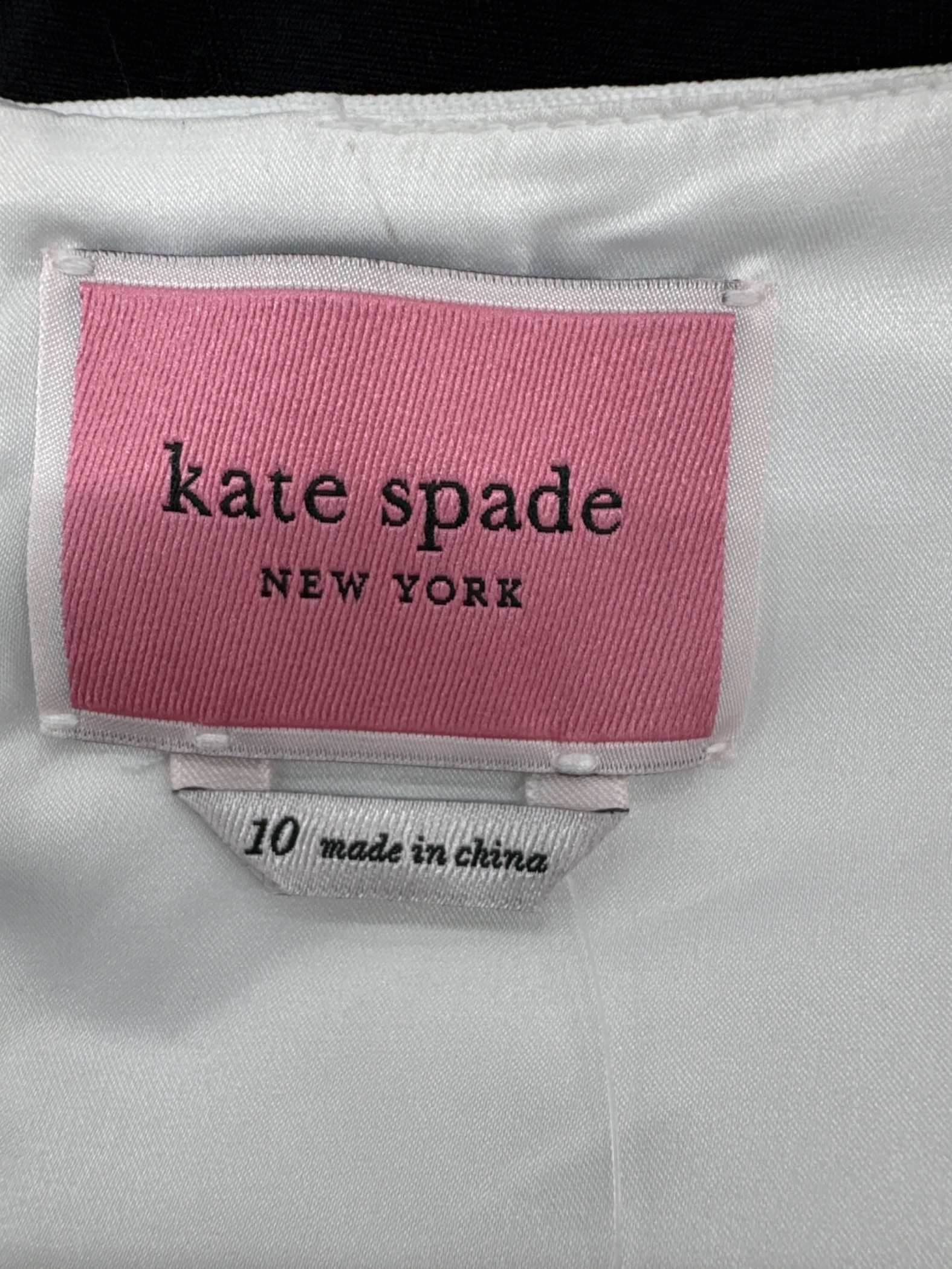This elegant Kate Spade A-Line dress is perfect for a special occasion. Featuring a flattering V-neck, sleeveless design, and a stylish black and white color scheme. The dress is crafted from high-quality materials, ensuring a comfortable and chic fit. It is perfect for summer or spring events, with a playful skirt length, it's a timeless addition to any wardrobe. This dress is perfect for cocktail parties, date nights, or any event where you want to make a statement.