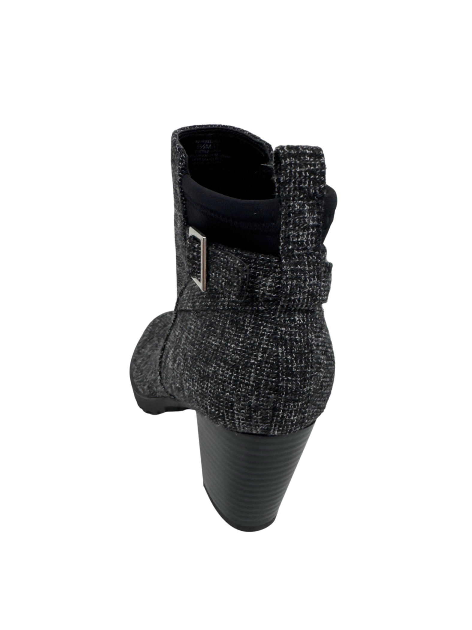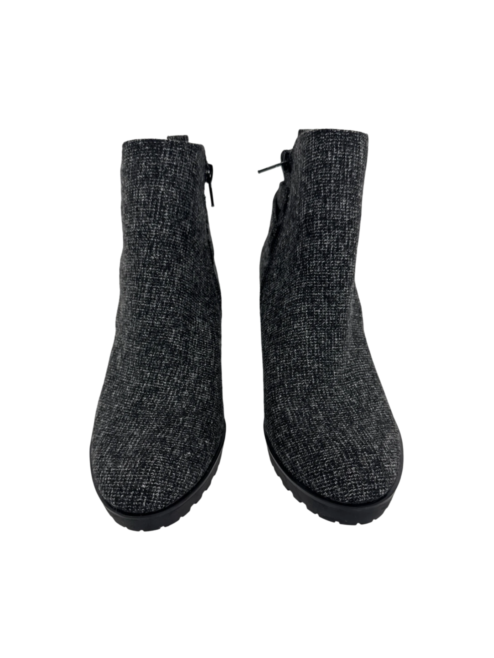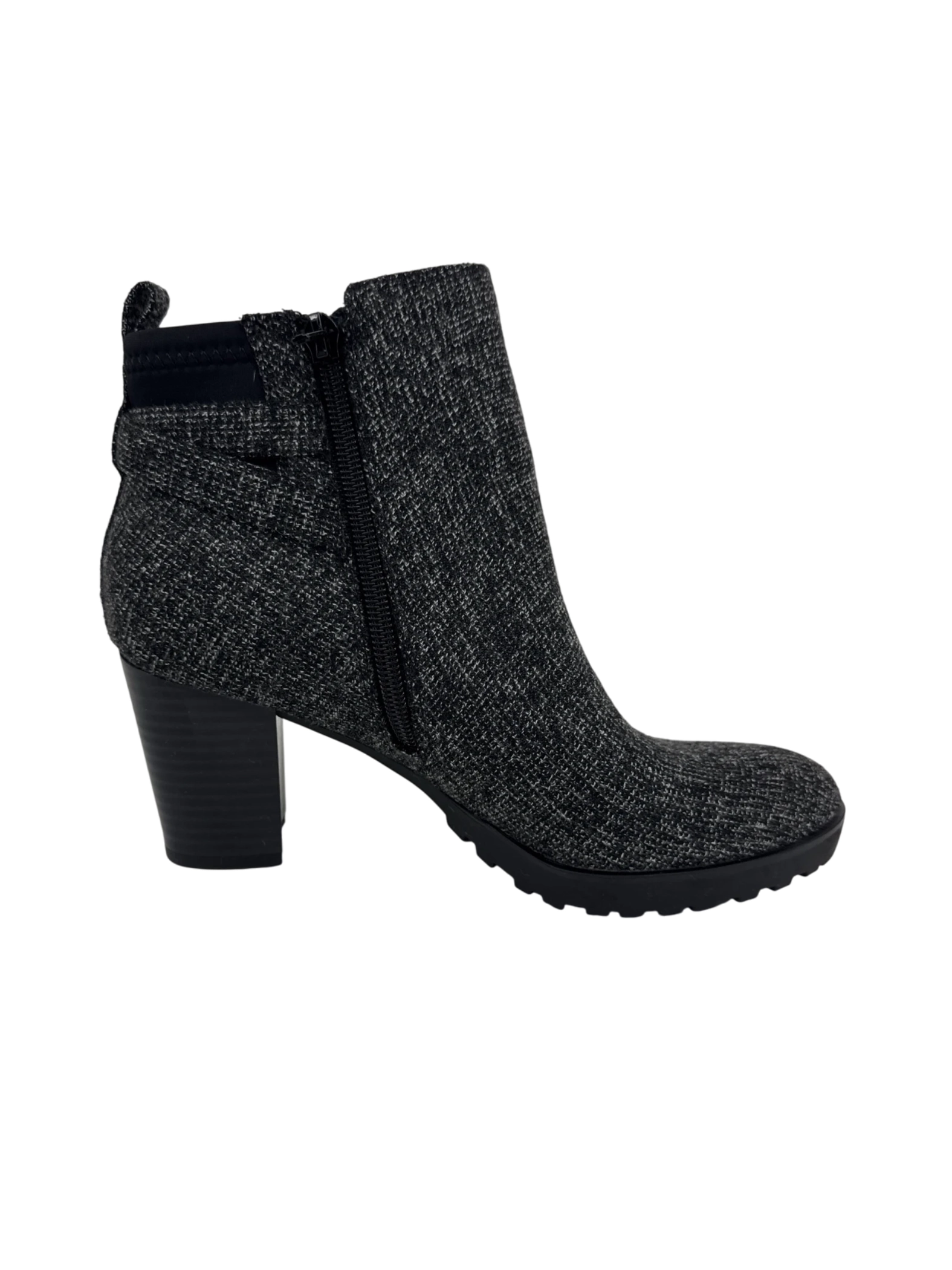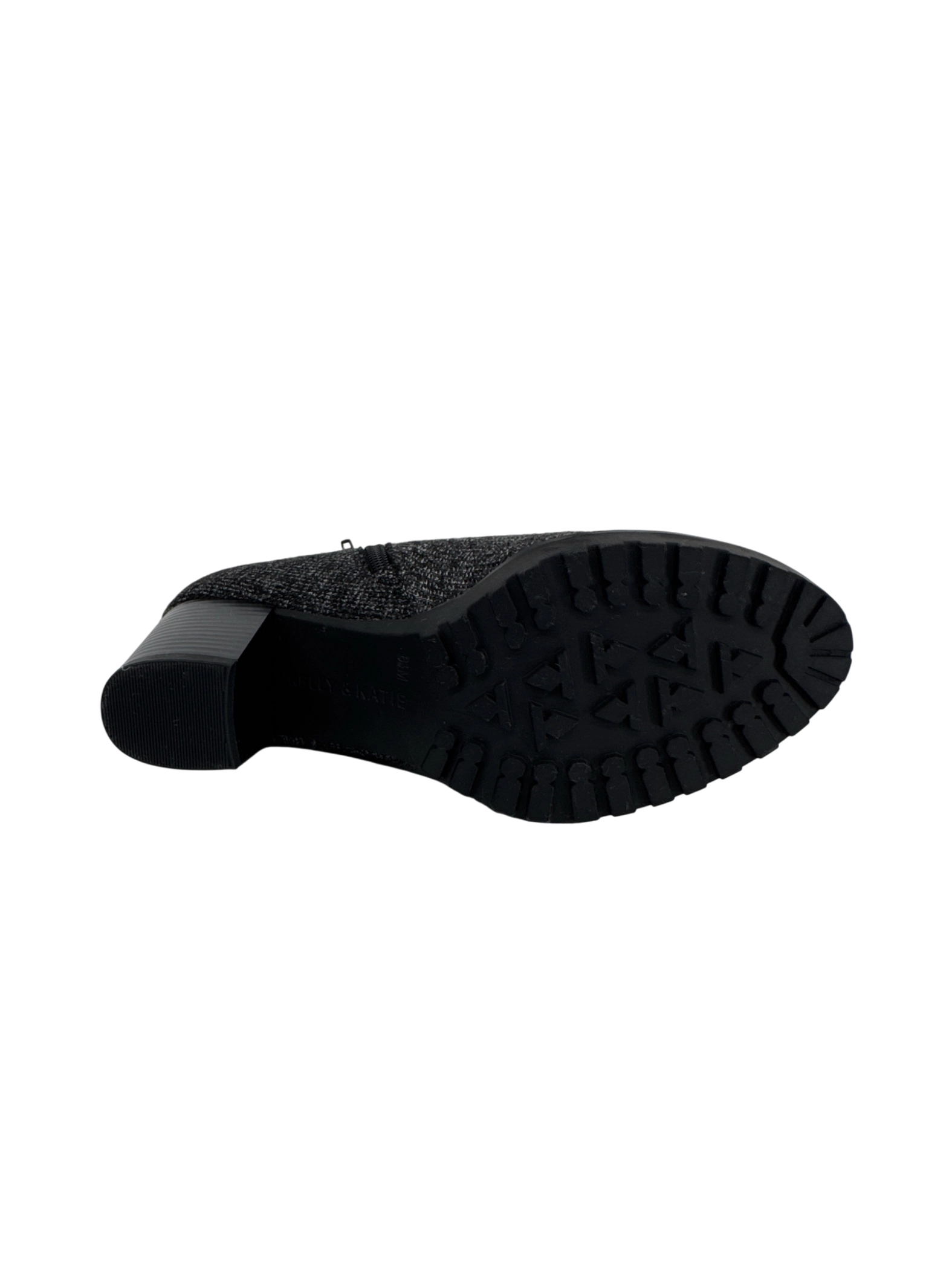 These stylish KEELY & KATIE ankle boots are the perfect addition to your wardrobe. These pre-owned boots feature a sleek black and gray pattern, offering versatility for various outfits. Crafted for comfort and style, these boots are ideal for colder weather. With a practical heel design, they provide a blend of fashion and functionality. These boots are ready to elevate your everyday style.