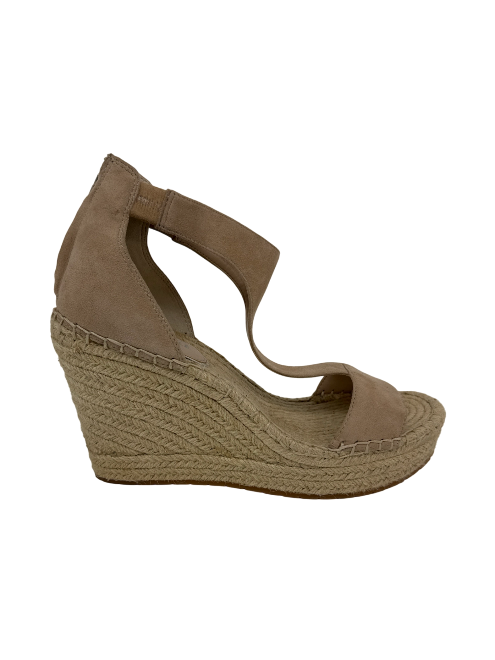 Step into summer with these pre-owned Kenneth Cole wedge sandals. These stylish sandals feature a comfortable wedge heel and a classic design, perfect for any warm-weather occasion. The neutral color makes them versatile enough to pair with any outfit. These sandals have been gently worn and are in excellent condition, offering both fashion and value.