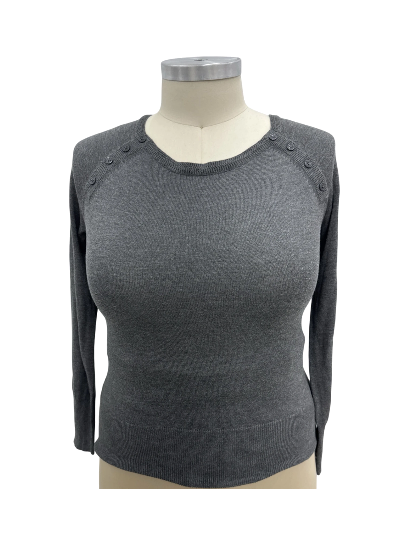 This pre-owned Kenneth Cole sweater is a stylish addition to any wardrobe. Crafted from a blend of soft polyester and rayon, this sweater offers a comfortable fit and a classic look. The gray color makes it versatile for any occasion, perfect for layering or wearing on its own. With long sleeves and button accents, it's a timeless piece suitable for fall and winter. This sweater combines style and comfort, making it a wardrobe staple. Gently used, it's in great condition, ready for a new owner.