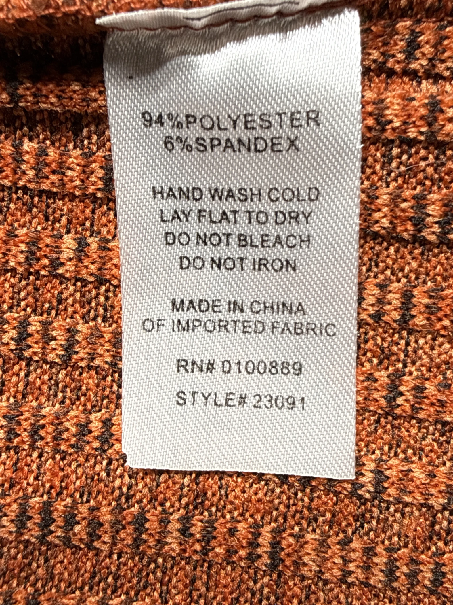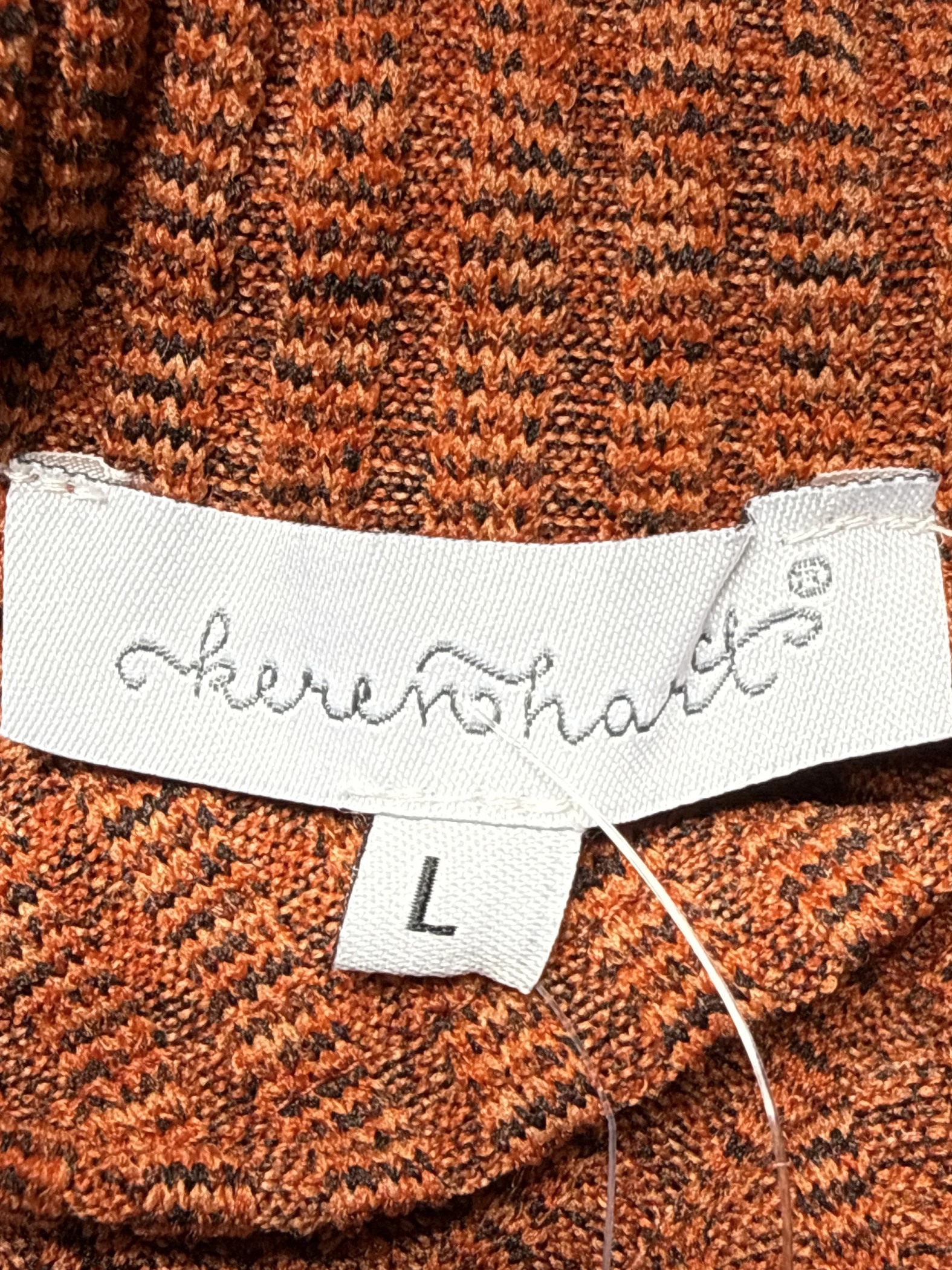 This pre-owned Keren Hart sweater is a stylish addition to your wardrobe. Featuring a chic turtleneck design and button-up cuffs, this sweater offers both warmth and sophistication. The earthy brown color adds a touch of elegance and versatility, perfect for fall and winter wear. Crafted from a comfortable blend of polyester and spandex, this sweater combines style and comfort. A great find for anyone seeking a cozy and fashionable garment.