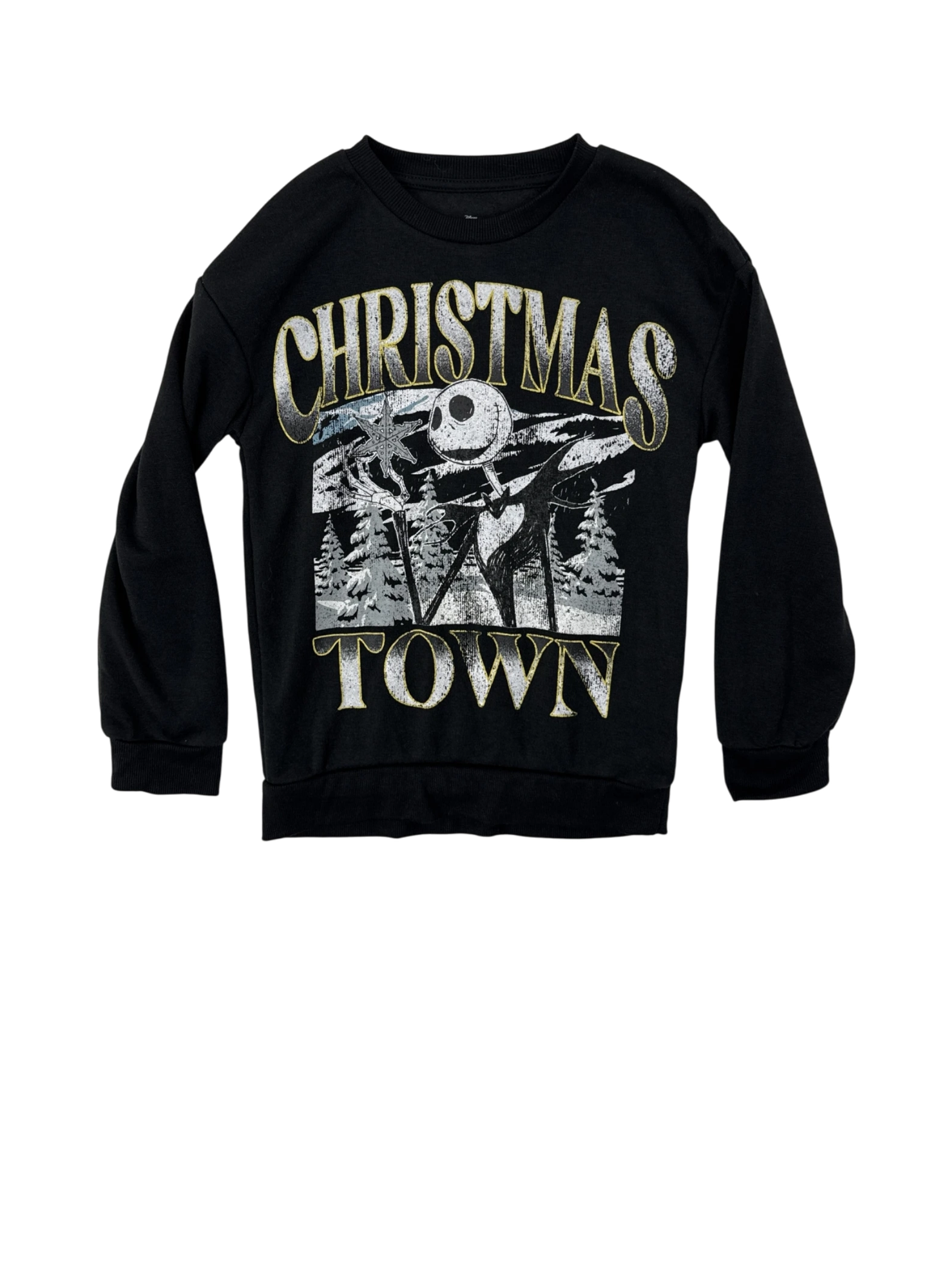 This pre-owned Disney sweatshirt is the perfect addition to your child's wardrobe. Featuring a vibrant graphic from The Nightmare Before Christmas, this black sweatshirt is ideal for the winter season. Made from a comfortable blend of polyester and rayon, it's perfect for everyday wear. A must-have for any fan of the movie. Pair it with jeans or joggers for a complete look.