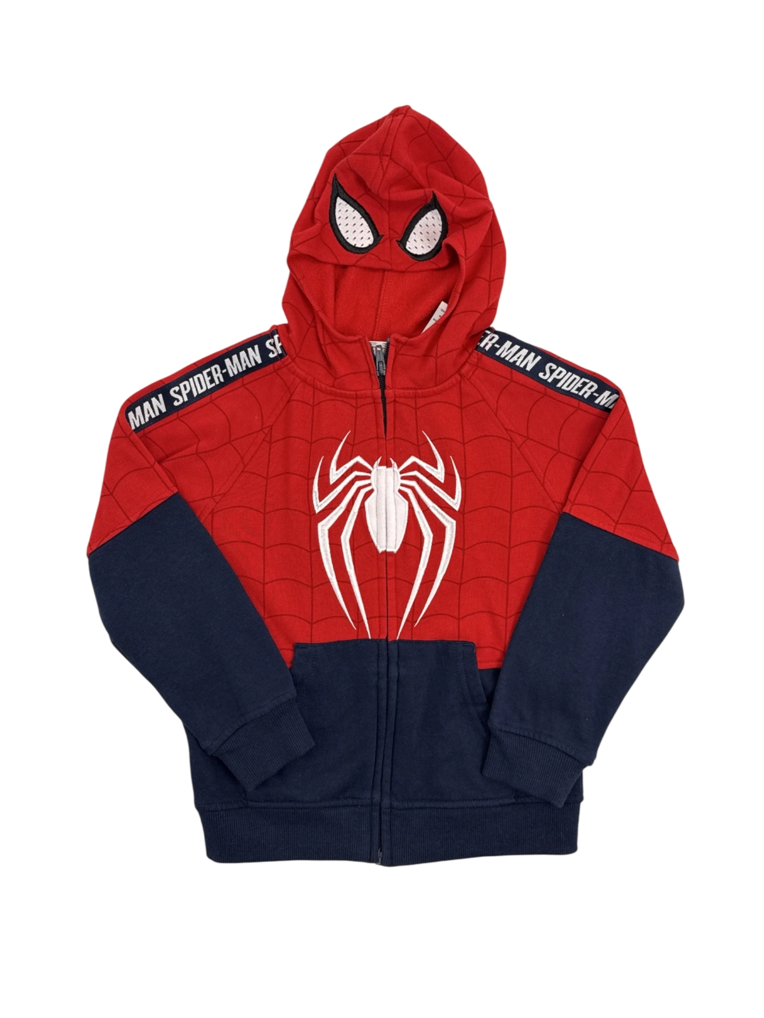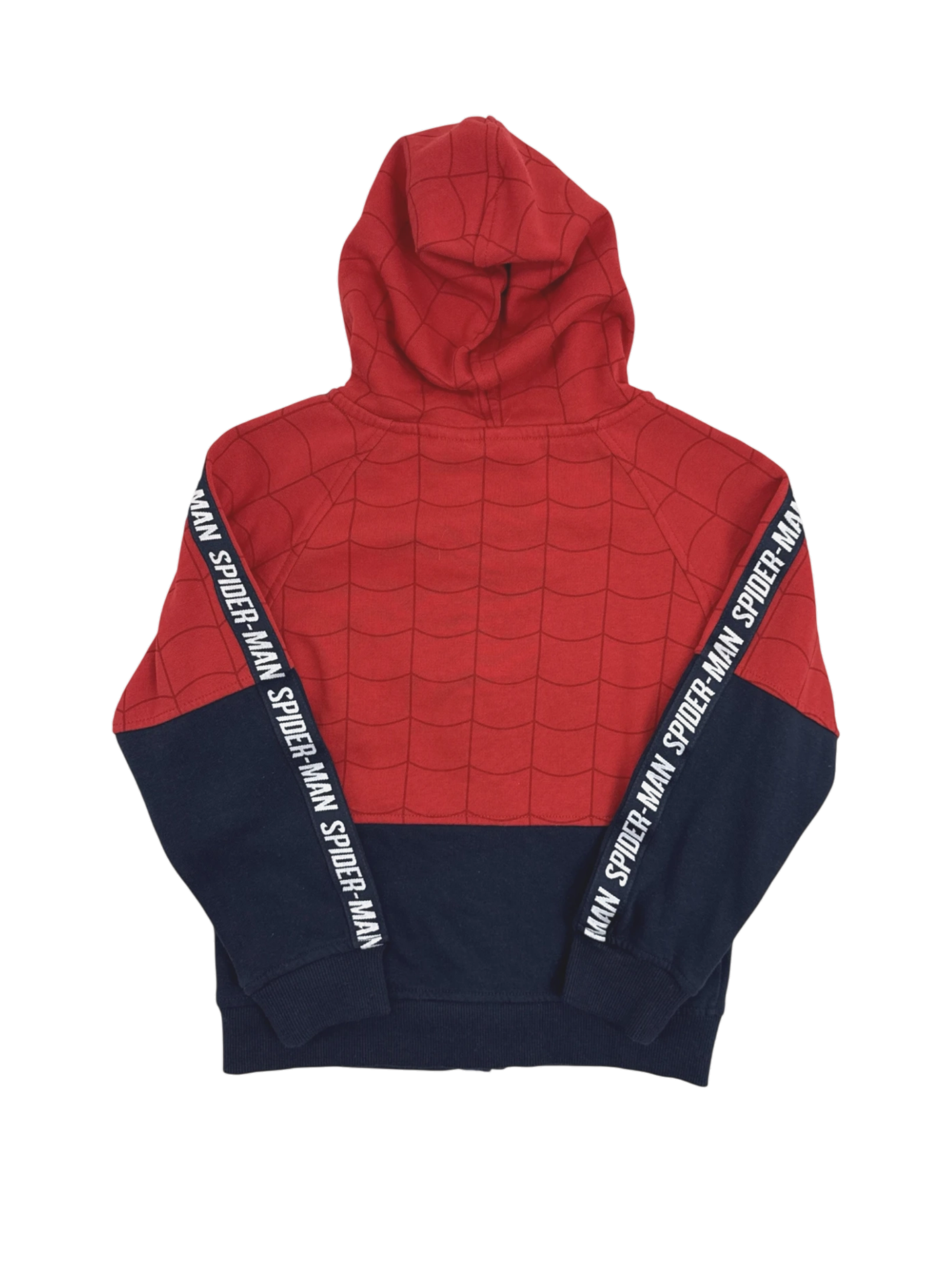 This pre-owned Marvel Spider-Man hoodie is a must-have for any young superhero fan. Featuring the iconic Spider-Man design with a vibrant red and blue color scheme, this hooded jacket is perfect for keeping warm in the cooler months. It is crafted from a comfortable cotton blend material. The jacket is size 6 and is in excellent condition. A perfect addition to any child's wardrobe, ideal for everyday wear or costume play.