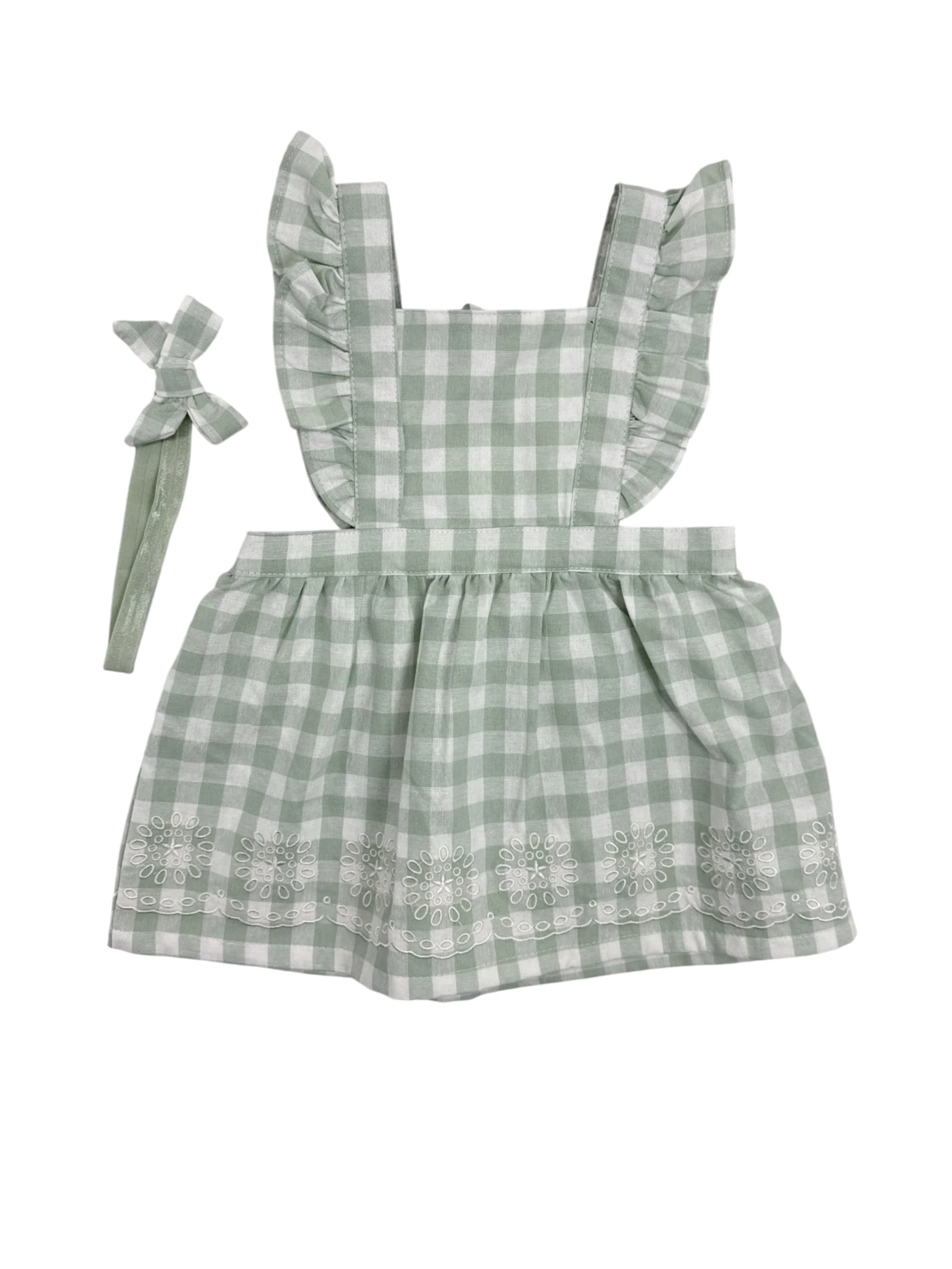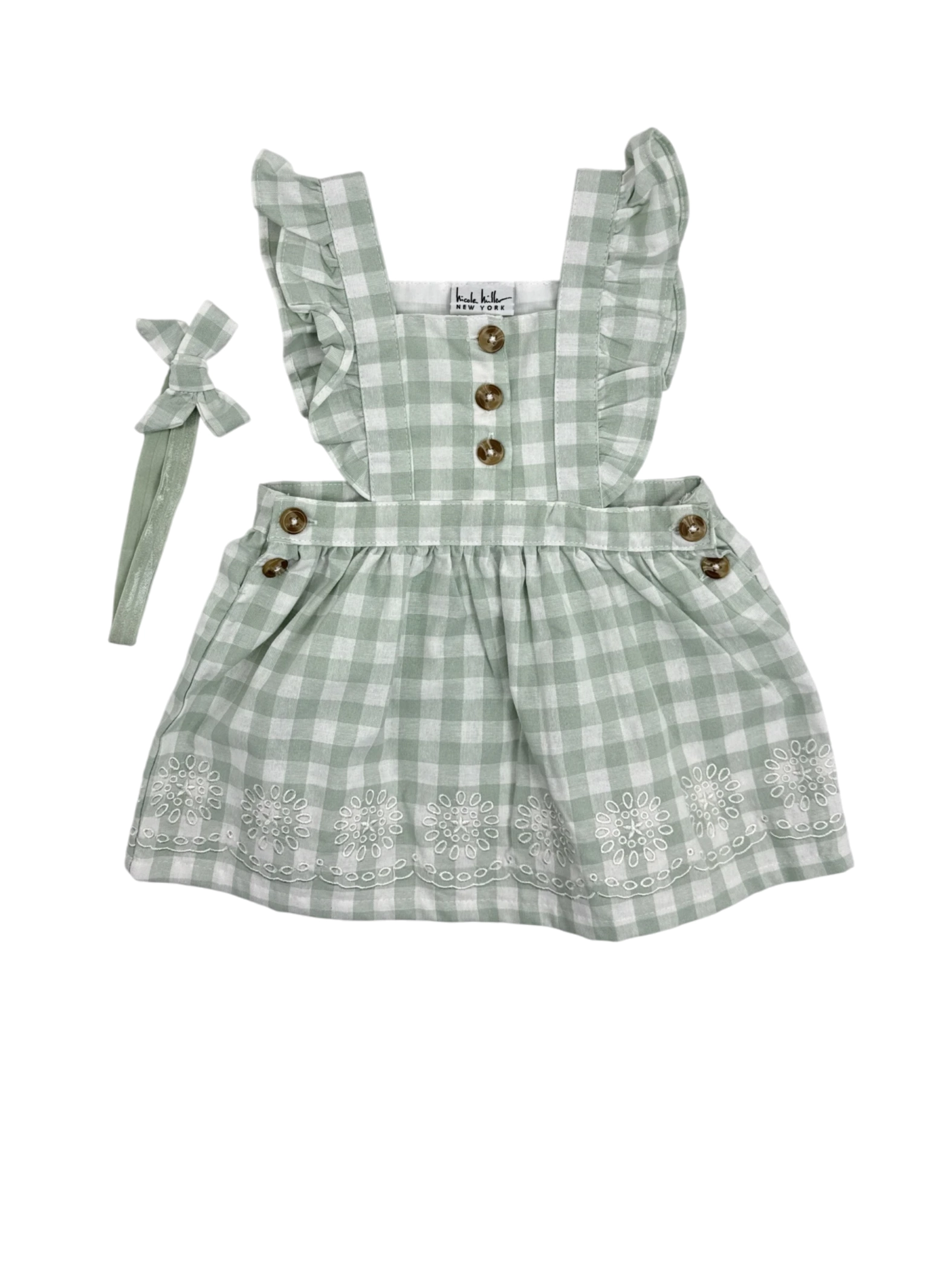 This adorable pre-owned Nicole Miller New York dress for baby girls is the perfect outfit for warm weather or special occasions like Easter! This cute A-line dress features a charming checkered pattern with delicate embroidered details. The dress is made of a comfortable cotton blend and comes with a matching headband, making it a complete and stylish ensemble. This sweet sundress is perfect for your little one's casual outings or spring photoshoots.
