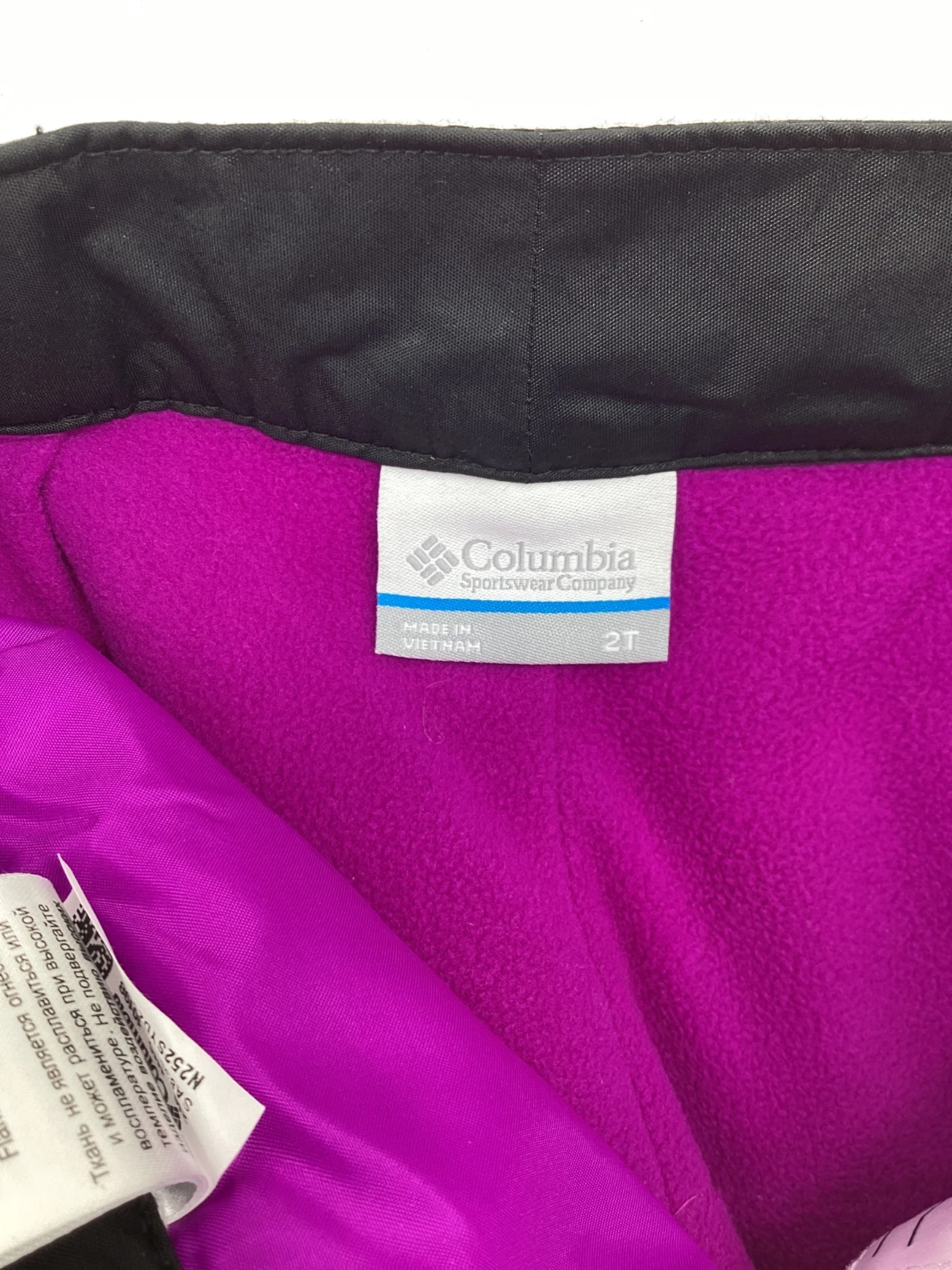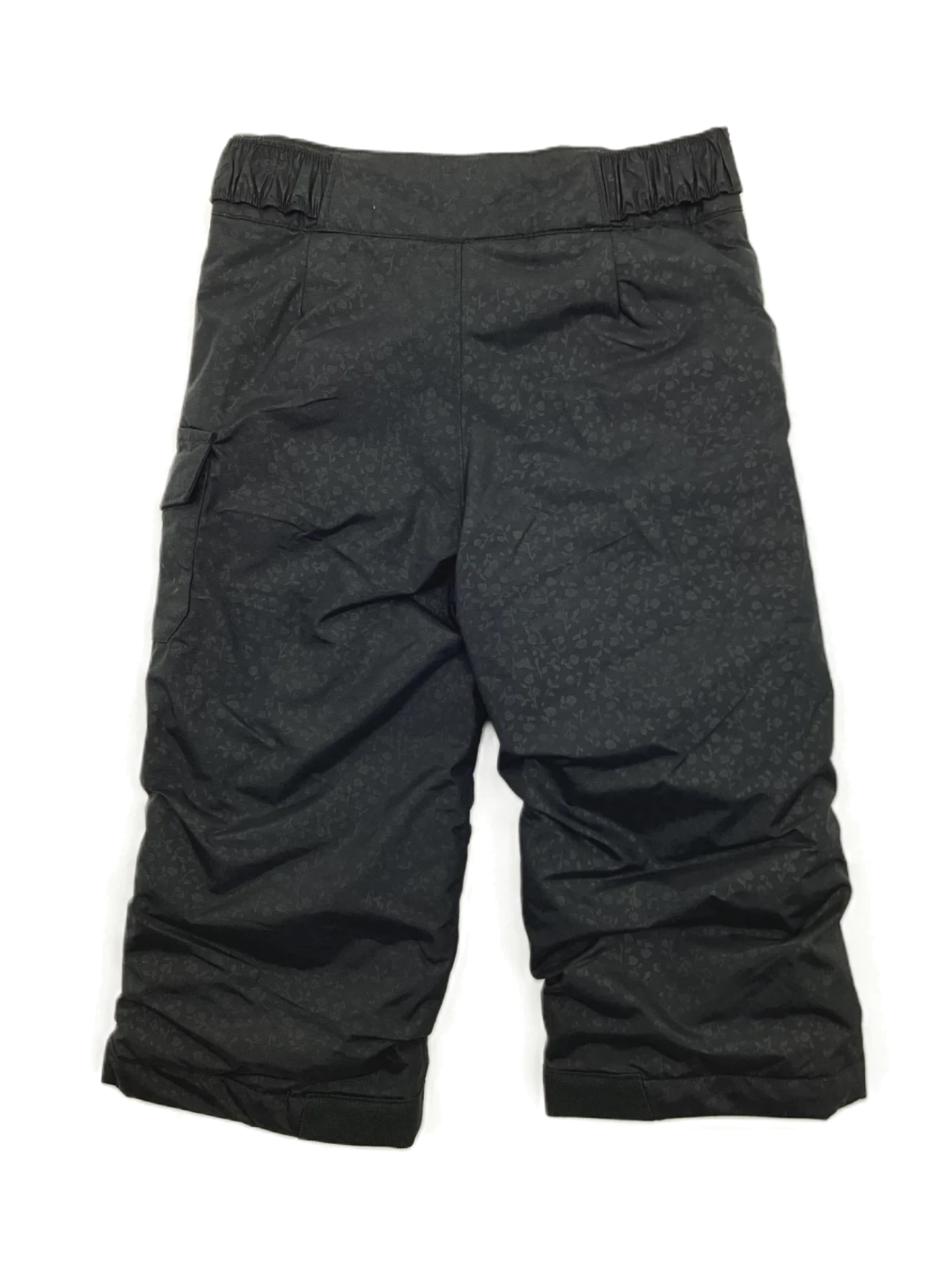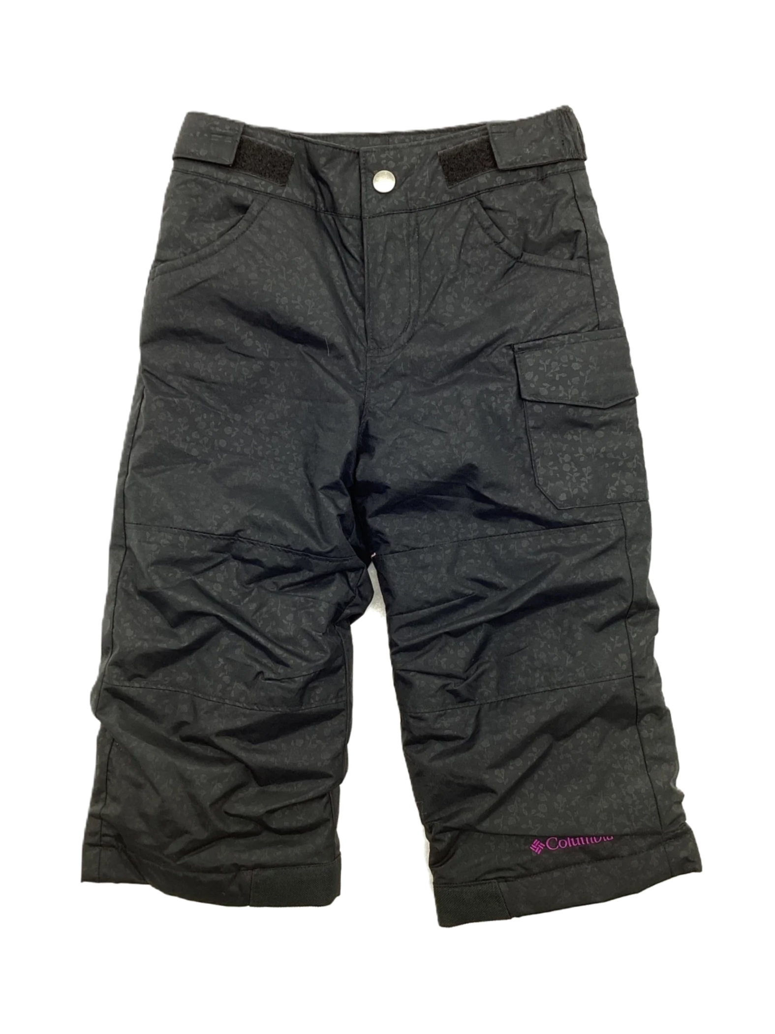 The item is a pair of Columbia ski or snowboard pants for girls in black with a floral print, size 2T.
