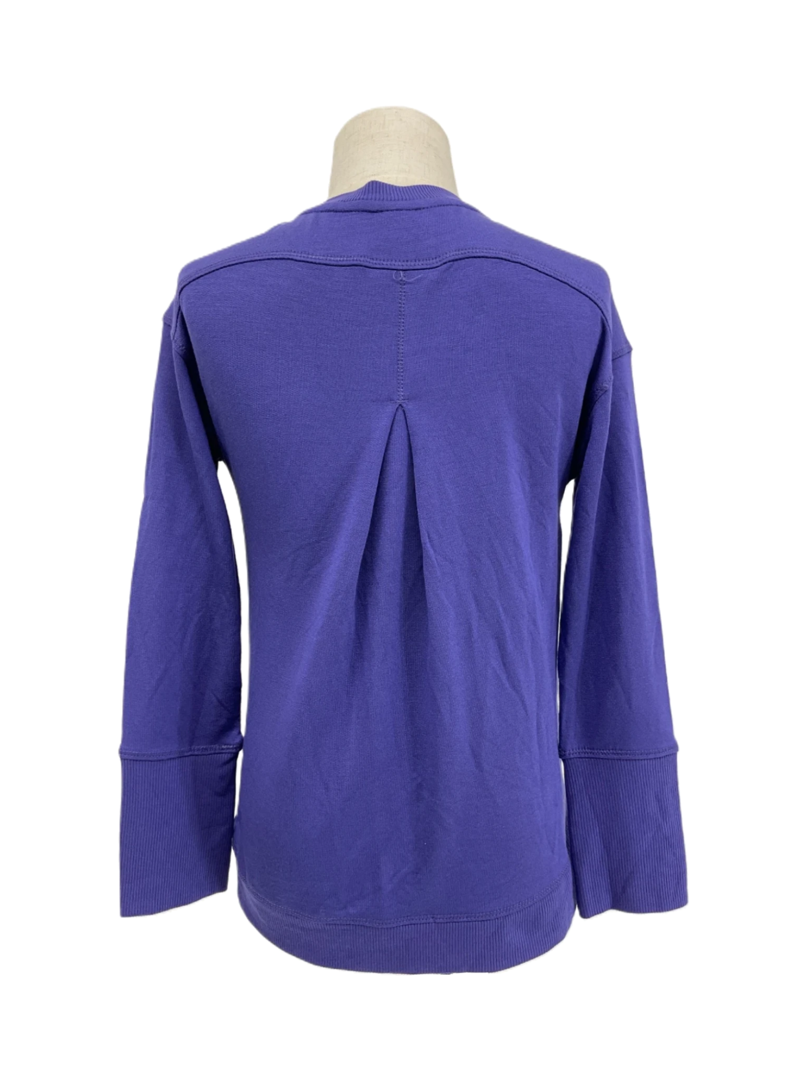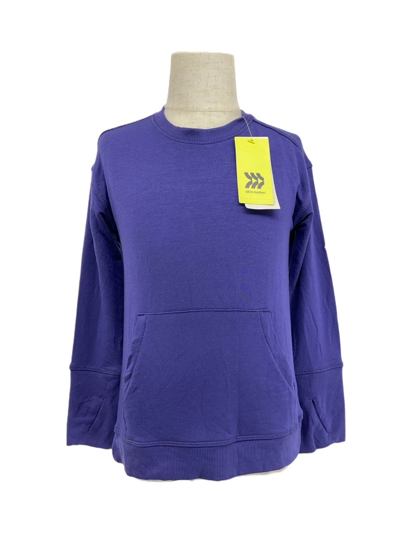 This is a girls' cozy lightweight fleece crewneck sweatshirt in dark purple, size XS, by All in Motion.