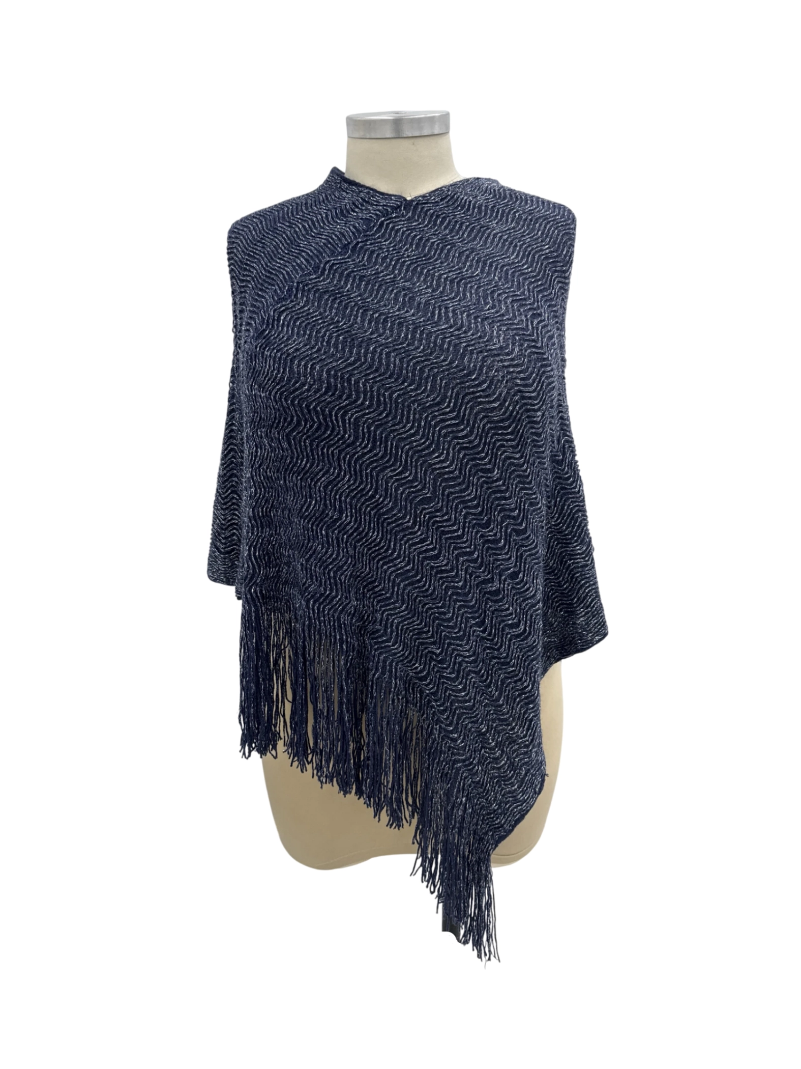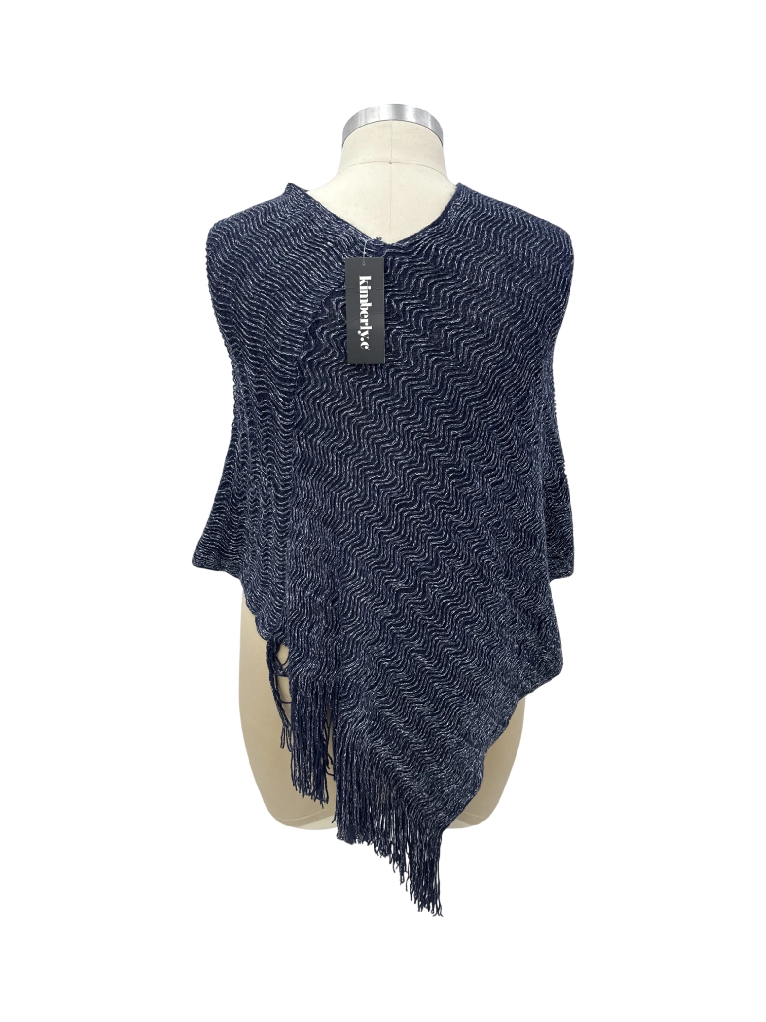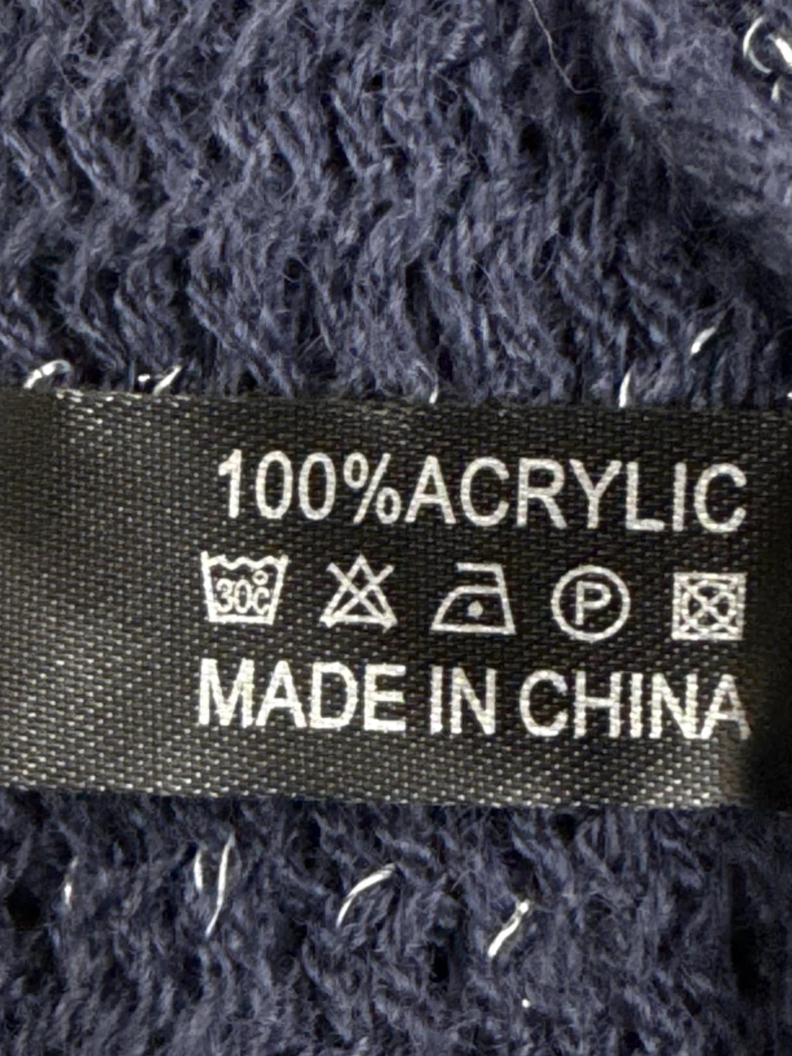 Elevate your wardrobe with this stylish pre-owned Kimberly cardigan shrug. Crafted from 100% acrylic, this one-size-fits-most piece offers a comfortable and chic layering option. The blue and metallic design adds a touch of sophistication, perfect for fall and winter. The open front and unique shape make it versatile for various outfits. A perfect addition to any wardrobe, offering a blend of comfort and style. Ideal for those who love unique and fashionable pieces.