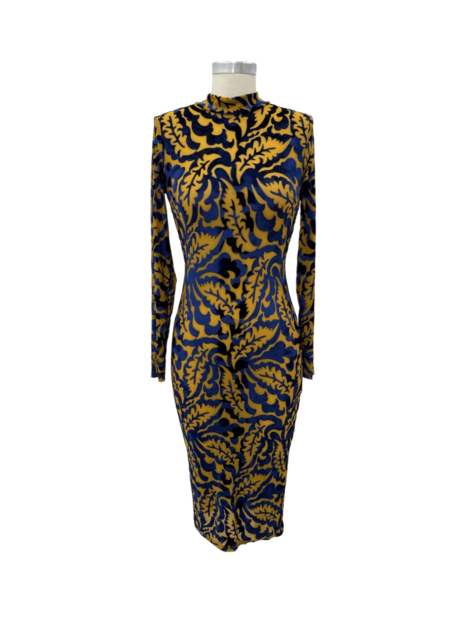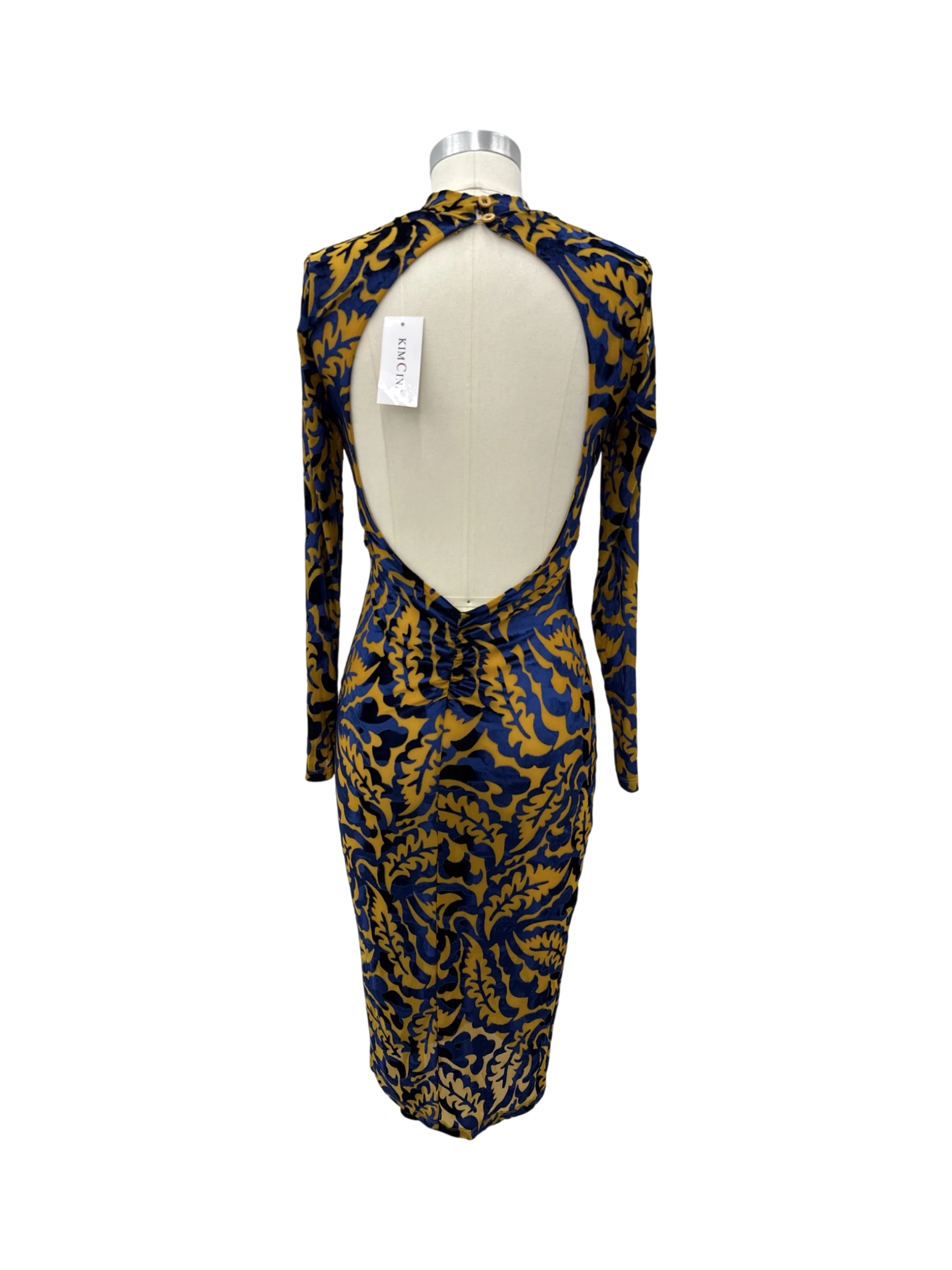 This stunning Kimcine Curve dress is a head-turner, perfect for cocktail parties or special evenings. The bodycon silhouette flatters your figure, while the floral pattern and long sleeves add a touch of elegance. Crafted from a comfortable blend of polyester, nylon, and spandex, this dress offers both style and a great fit. Featuring a turtleneck and a daring open-back design, it's a unique piece that is sure to make a statement.