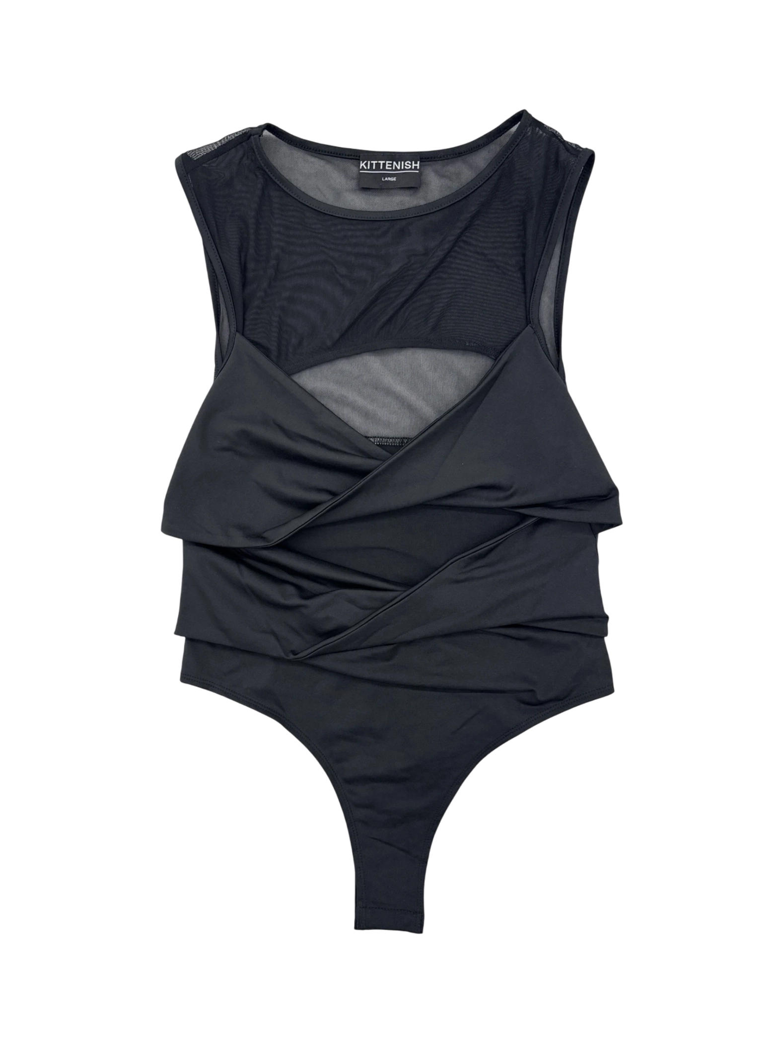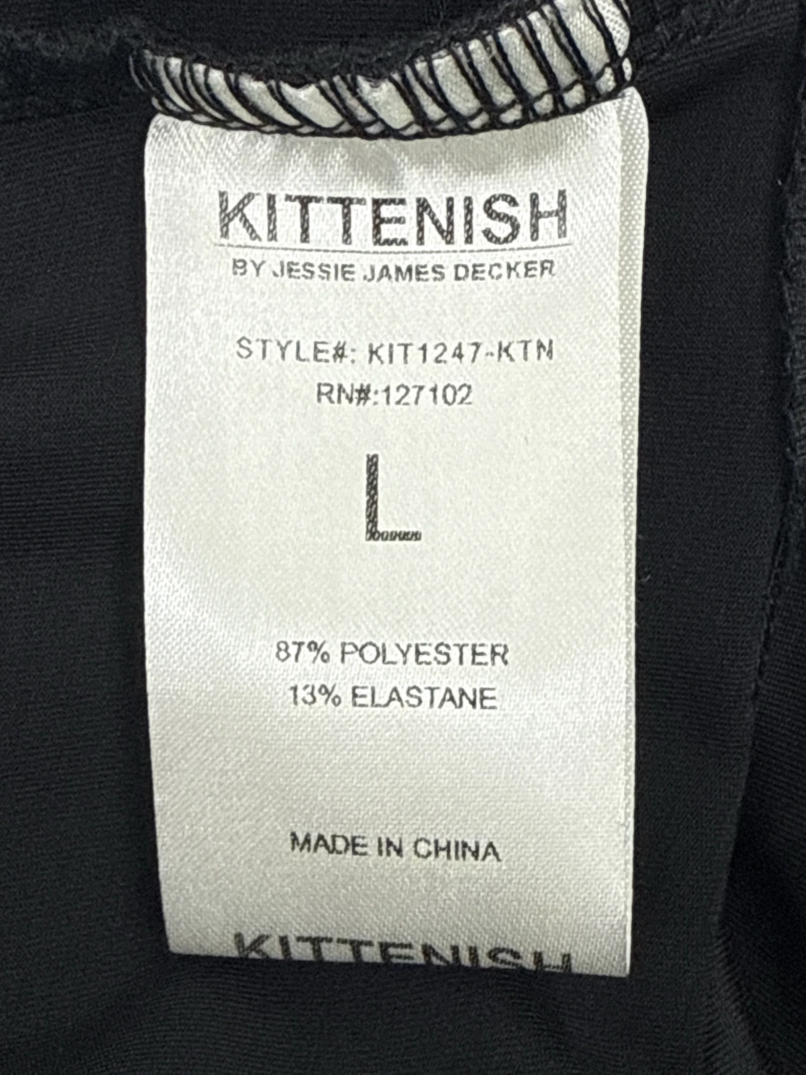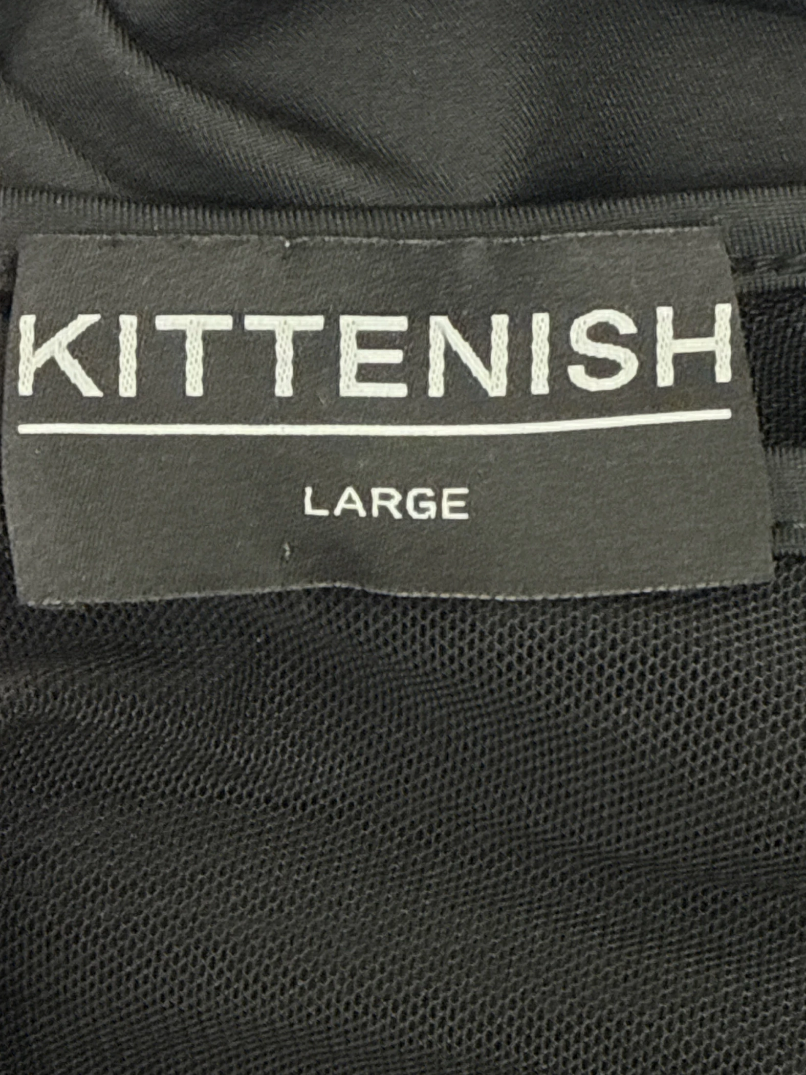 Elevate your swimwear collection with this stylish and flattering one-piece swimsuit from KITTENISH. This pre-owned swimsuit features a sleek black design with an eye-catching cut-out detail. It's made from a comfortable and supportive blend of polyester and elastane, perfect for a day at the beach or poolside relaxation. This swimsuit is a size Large. Embrace the chic and trendy design of this KITTENISH swimsuit.