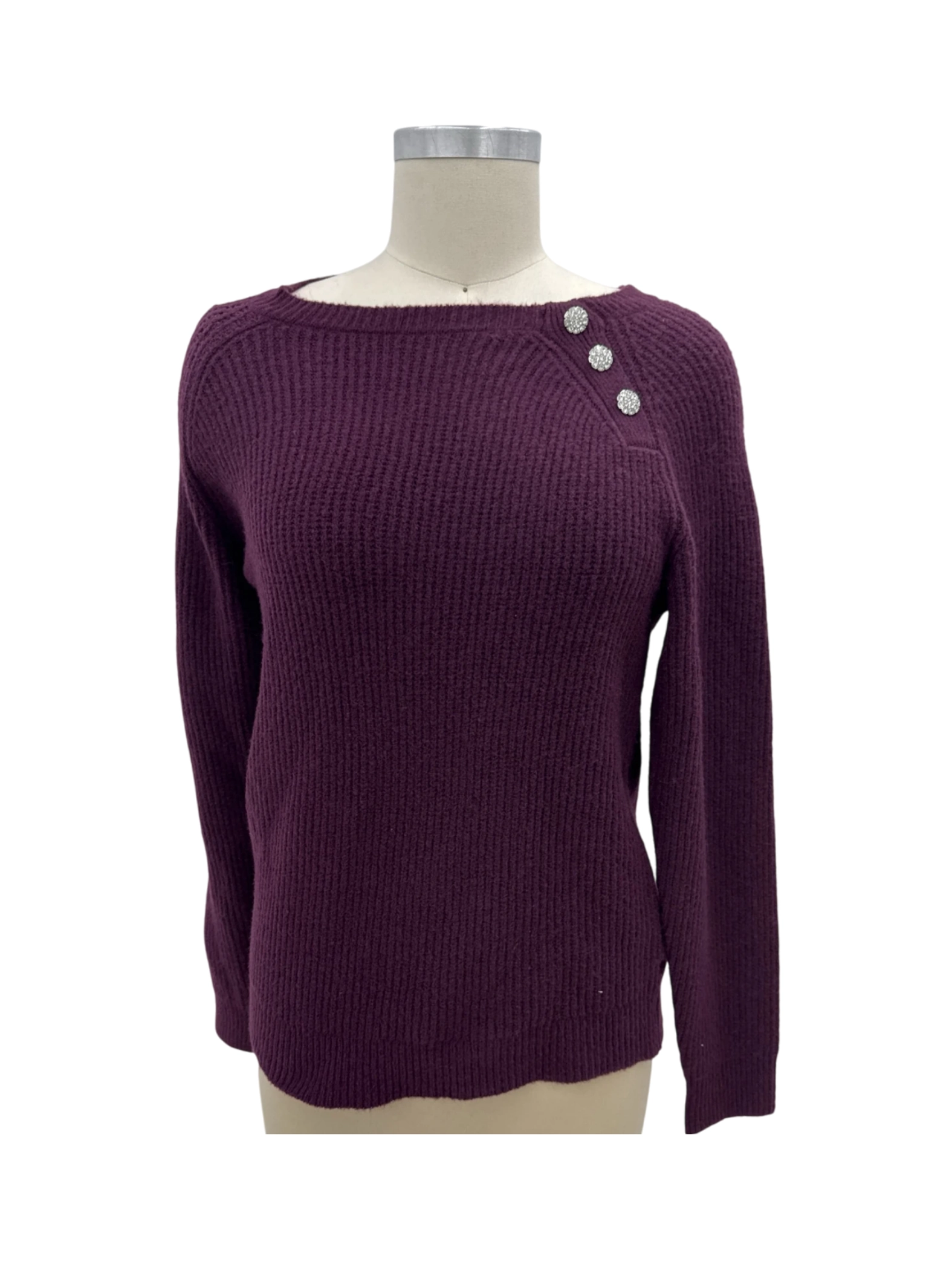 Elevate your wardrobe with this stylish pre-owned KNOX ROSE sweater. This cozy pullover in a rich purple hue features a classic design, perfect for cooler seasons. The sweater boasts a comfortable fit and a flattering silhouette. Made with quality materials, this versatile piece is ideal for layering. Whether you're heading to the office or enjoying a casual outing, this sweater will keep you warm and fashionable. Don't miss out on adding this chic sweater to your collection.