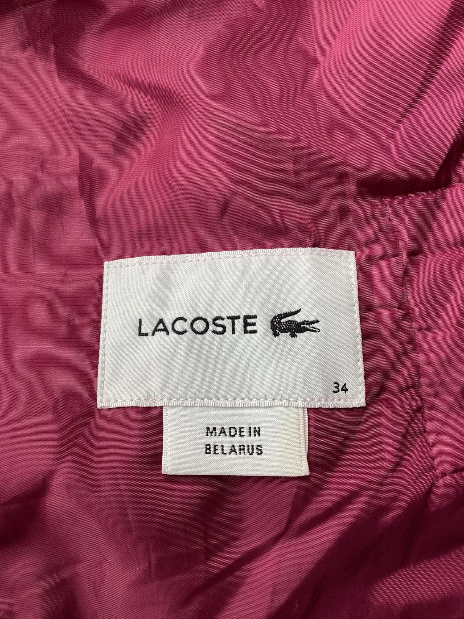This is a women's light down vest made of polyester with a stand collar, zip-up front, and warm padded down filling.
