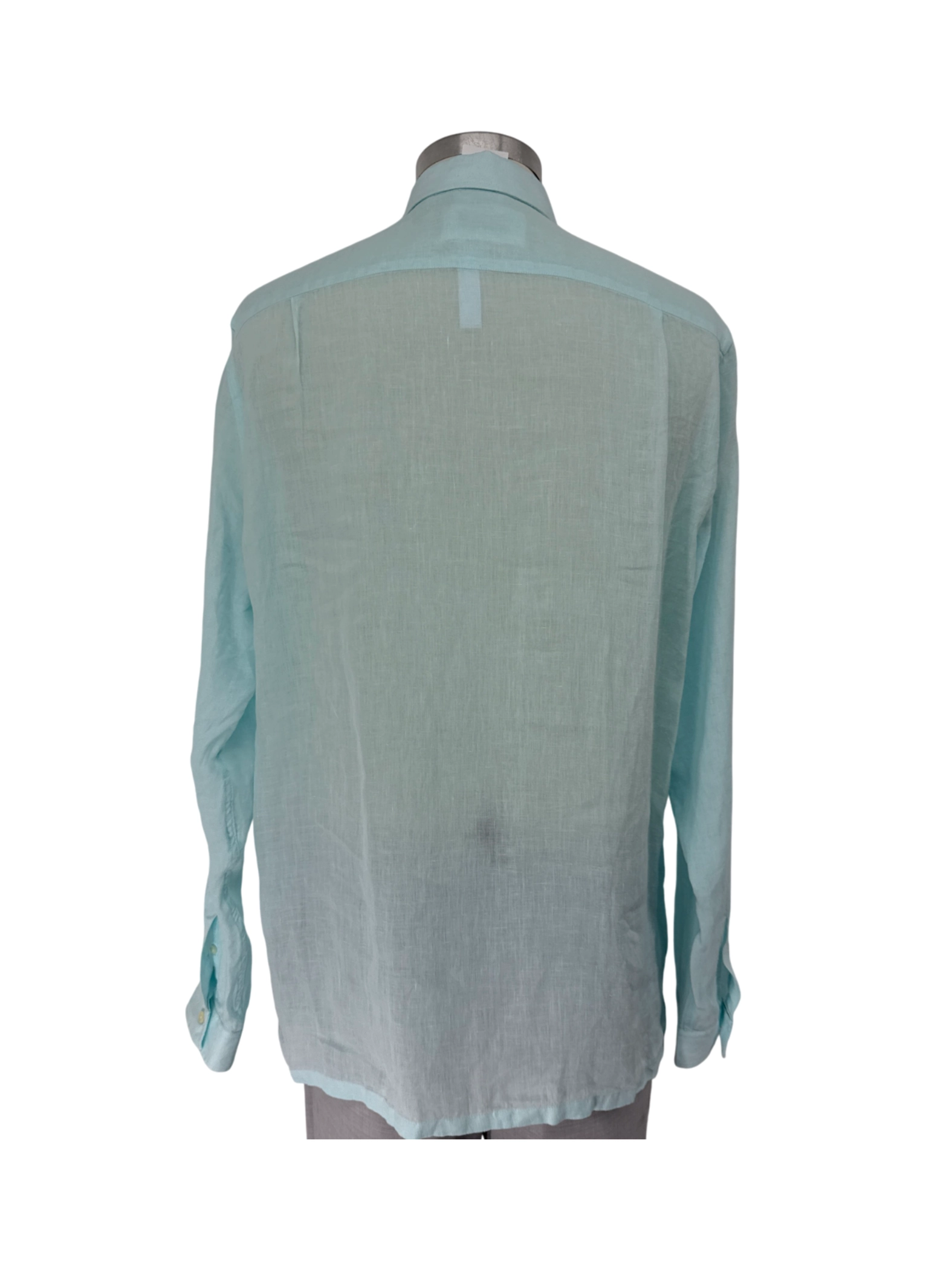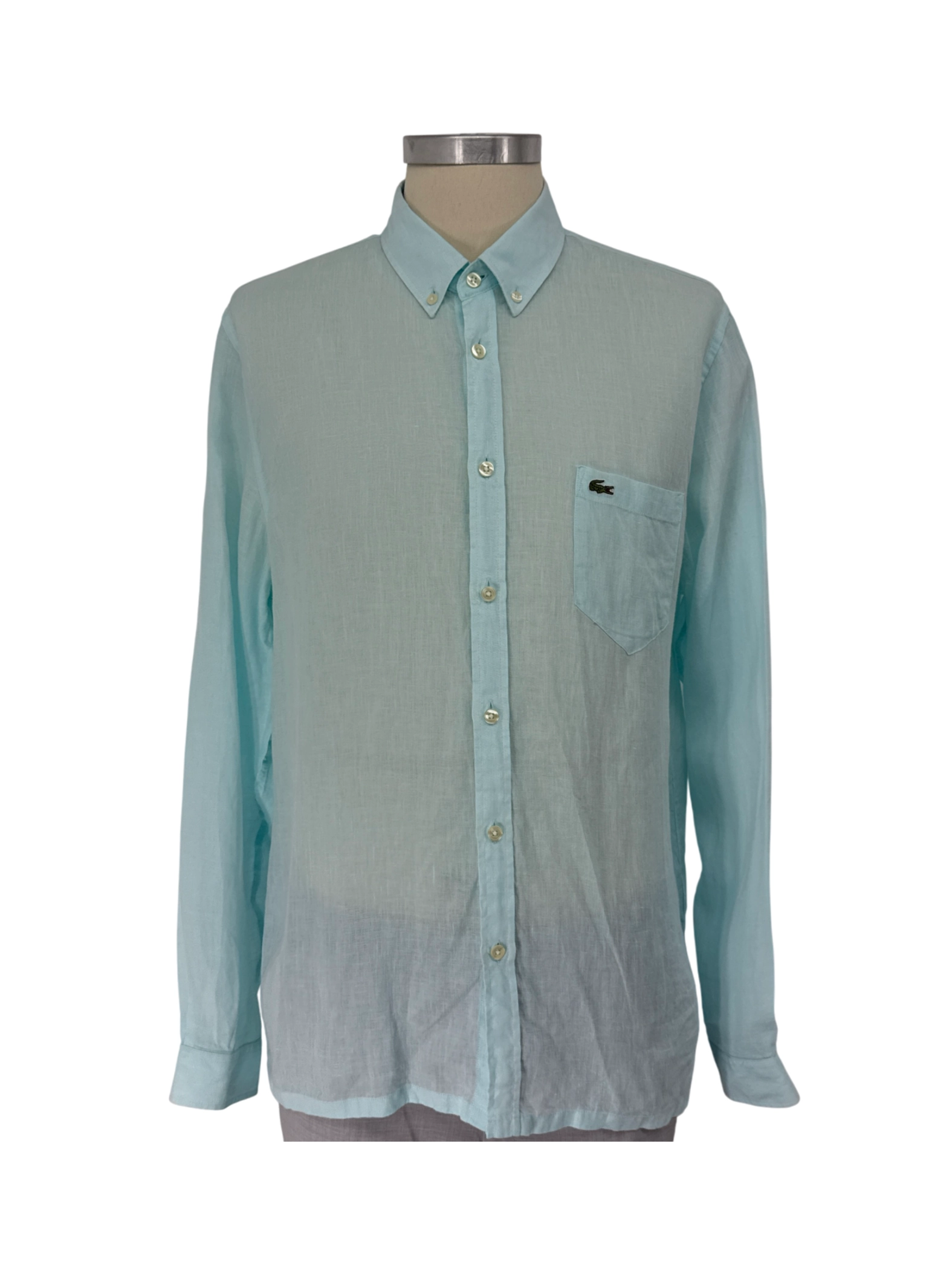 Must Have - Elevate your wardrobe with this pre-owned Lacoste long sleeve shirt, crafted from 100% linen for ultimate comfort and breathability. This shirt features a classic button-up design, a stylish collar, and a sophisticated light blue color, perfect for any occasion. The regular fit ensures a comfortable silhouette. The shirt is perfect for a casual or semi-formal look.