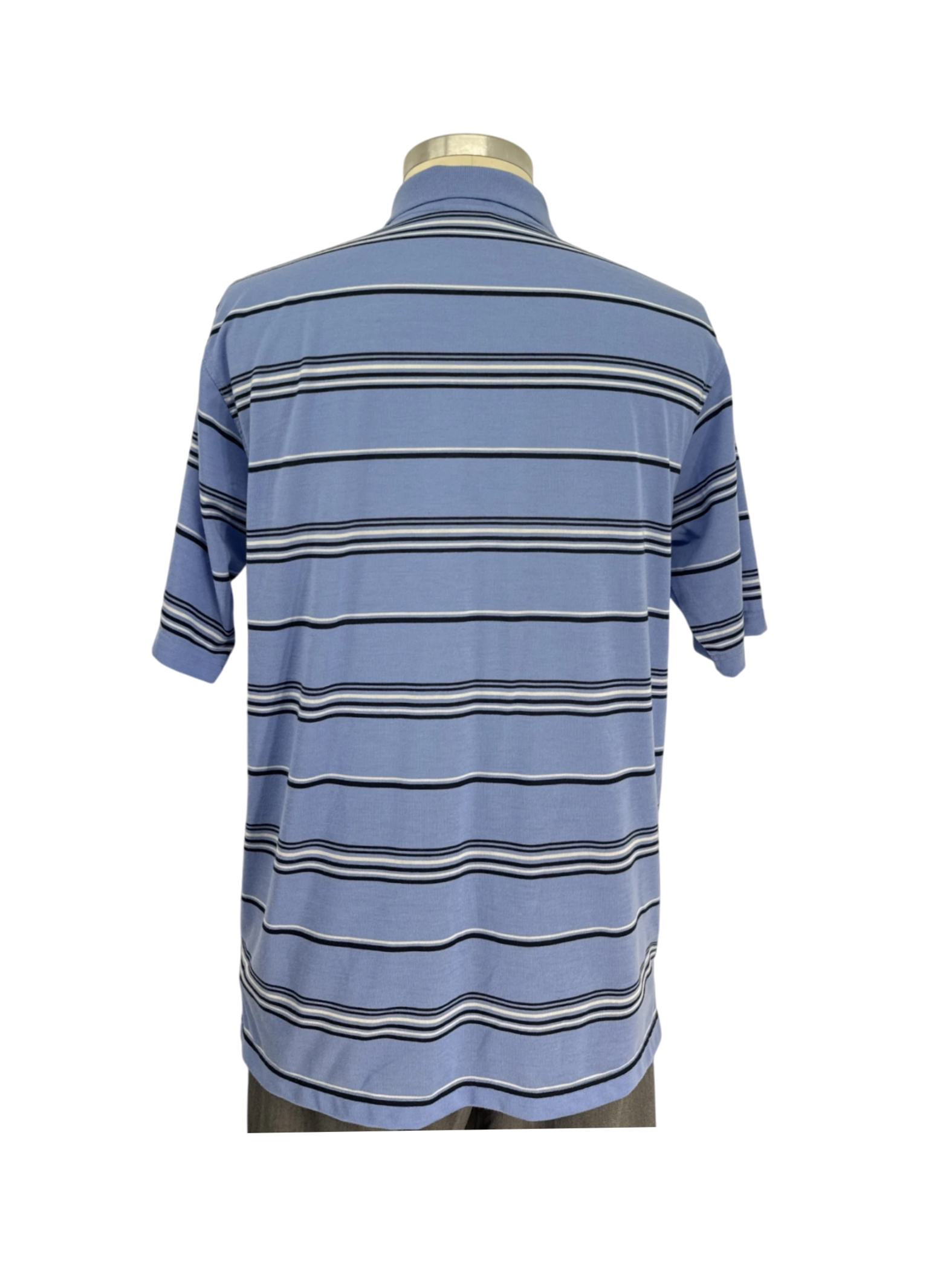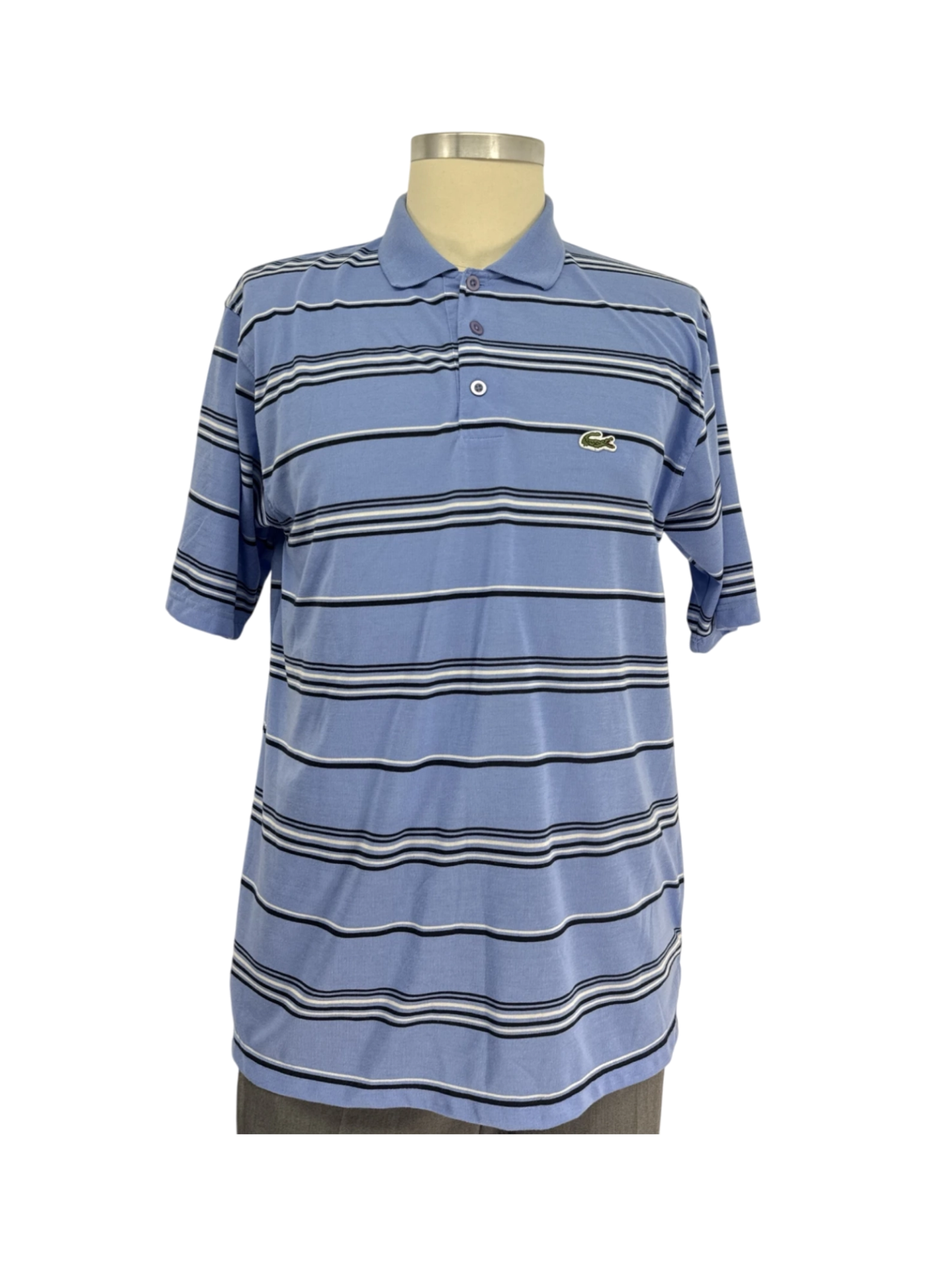 Pre-owned Lacoste polo shirt, a timeless classic. This shirt, made in Peru, showcases Lacoste's signature quality. Features a classic collar and short sleeves. Crafted from comfortable cotton, it's perfect for warm weather. The blue and white striped design adds a touch of style. A versatile piece suitable for casual wear, it embodies both comfort and sophistication. Get this iconic polo today and elevate your wardrobe!