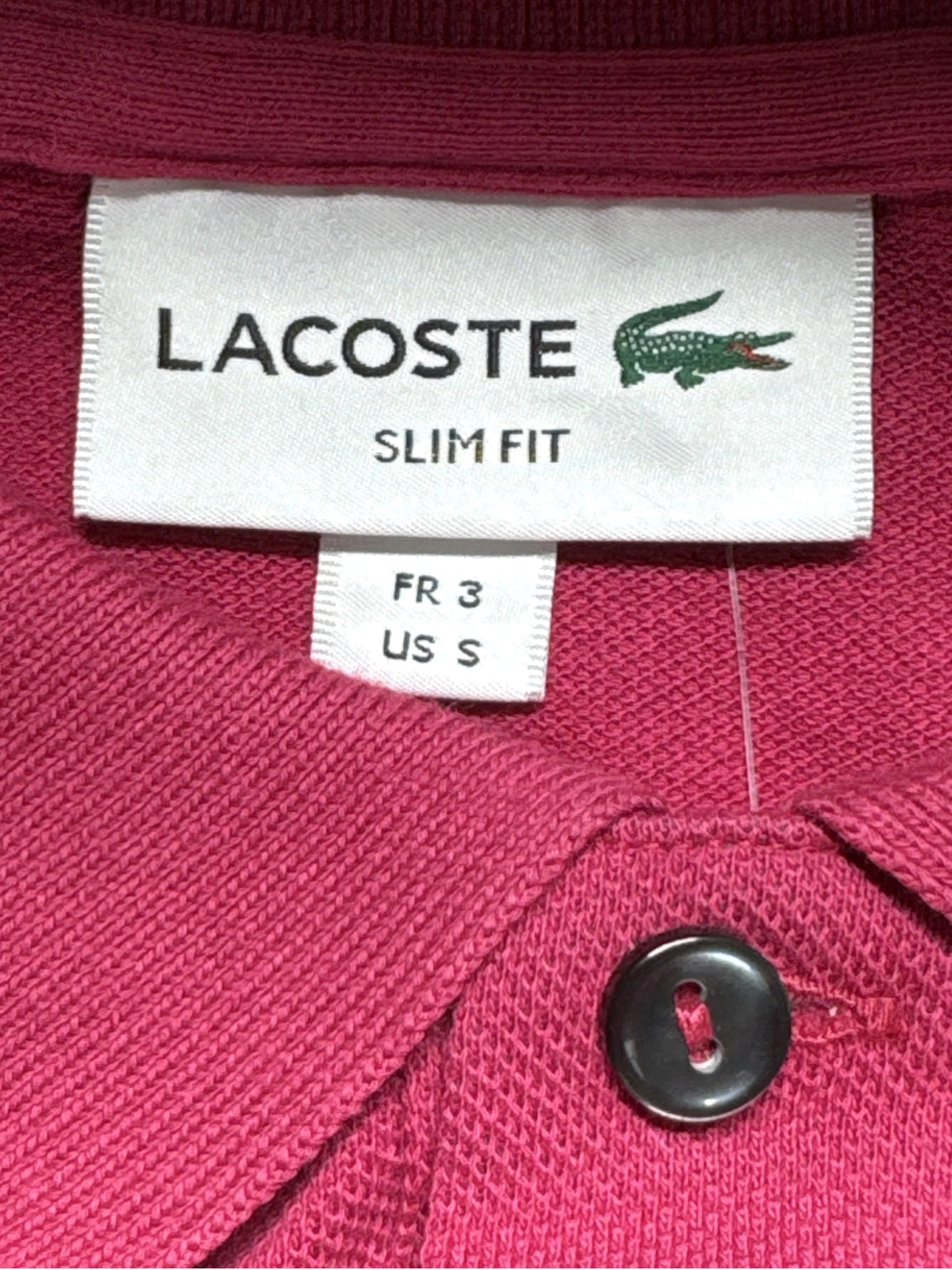 Elevate your wardrobe with this stylish pre-owned LACOSTE polo shirt. Crafted from high-quality cotton, this classic polo features a sleek, slim fit and a sophisticated collar neckline. The vibrant red color makes it a versatile piece, perfect for both casual and smart-casual occasions. With its short sleeves and button-up closure, this polo offers a comfortable and timeless look. Perfect for layering or wearing on its own, this LACOSTE polo is a must-have addition to any man's collection.