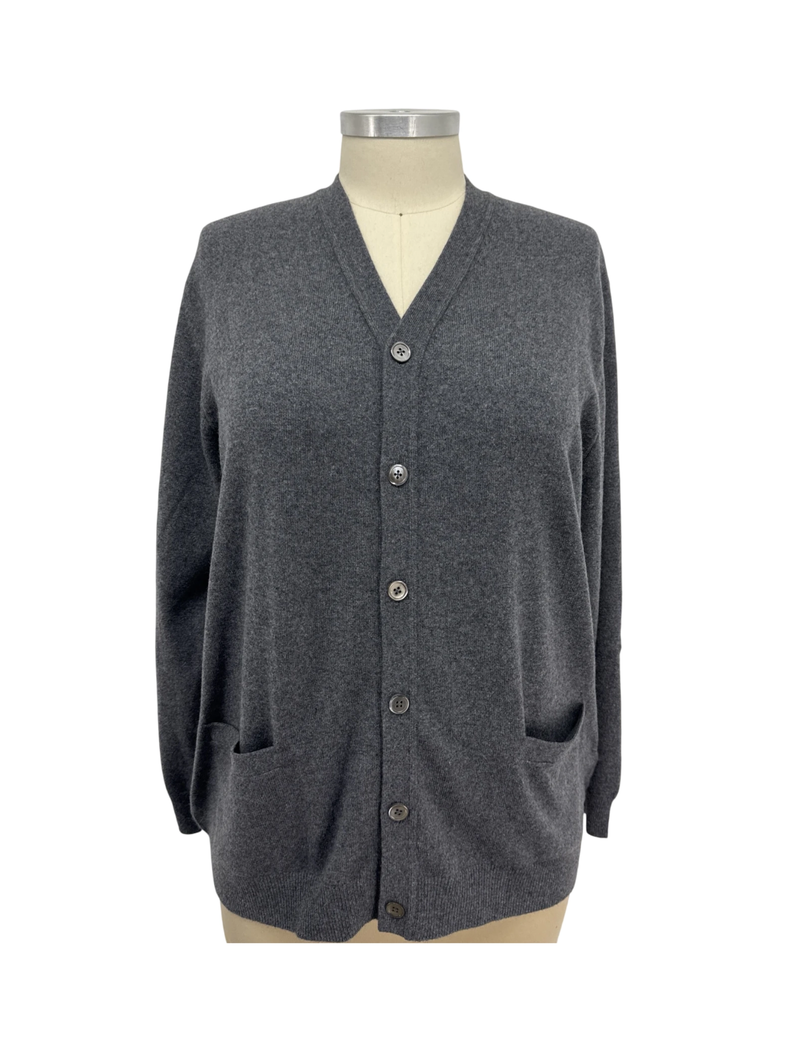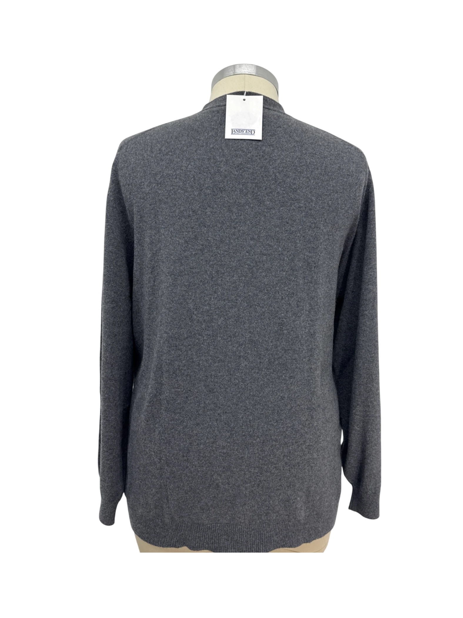 Elevate your wardrobe with this pre-owned Lands' End cardigan, a luxurious blend of wool and cashmere. This sweater features a classic V-neck design, convenient pockets, and a button-up closure. It's perfect for layering during fall and winter, offering both style and comfort. The soft gray color and timeless design make this a versatile piece for any outfit, from casual to semi-formal. This sweater is in excellent condition.