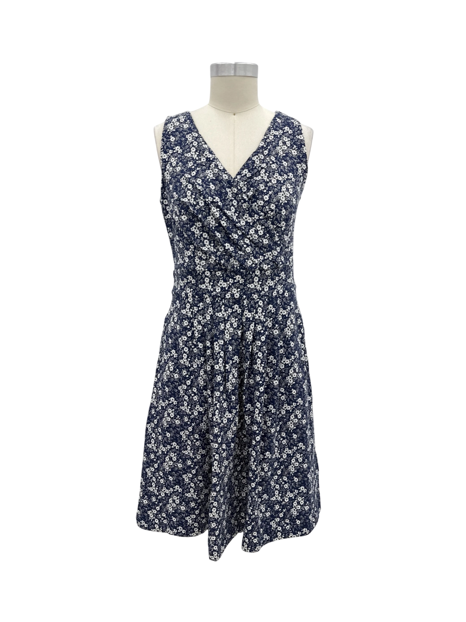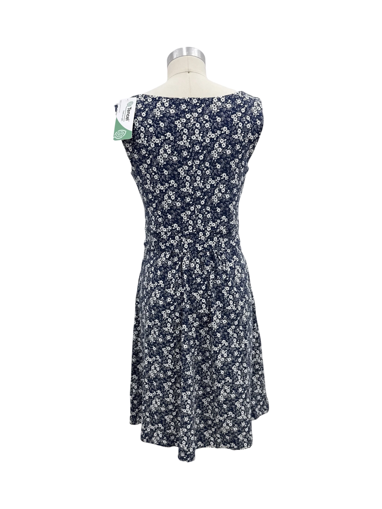 This beautiful LANDS' END dress is a perfect addition to your summer wardrobe. It features a flattering A-line silhouette, V-neck, and sleeveless design, making it ideal for warm weather. The dress is adorned with a charming floral pattern in shades of blue and white. Made with a blend of cotton, modal, and spandex, ensuring a comfortable fit. This pre-owned dress is in excellent condition and ready to wear for any casual occasion. Get ready to turn heads!