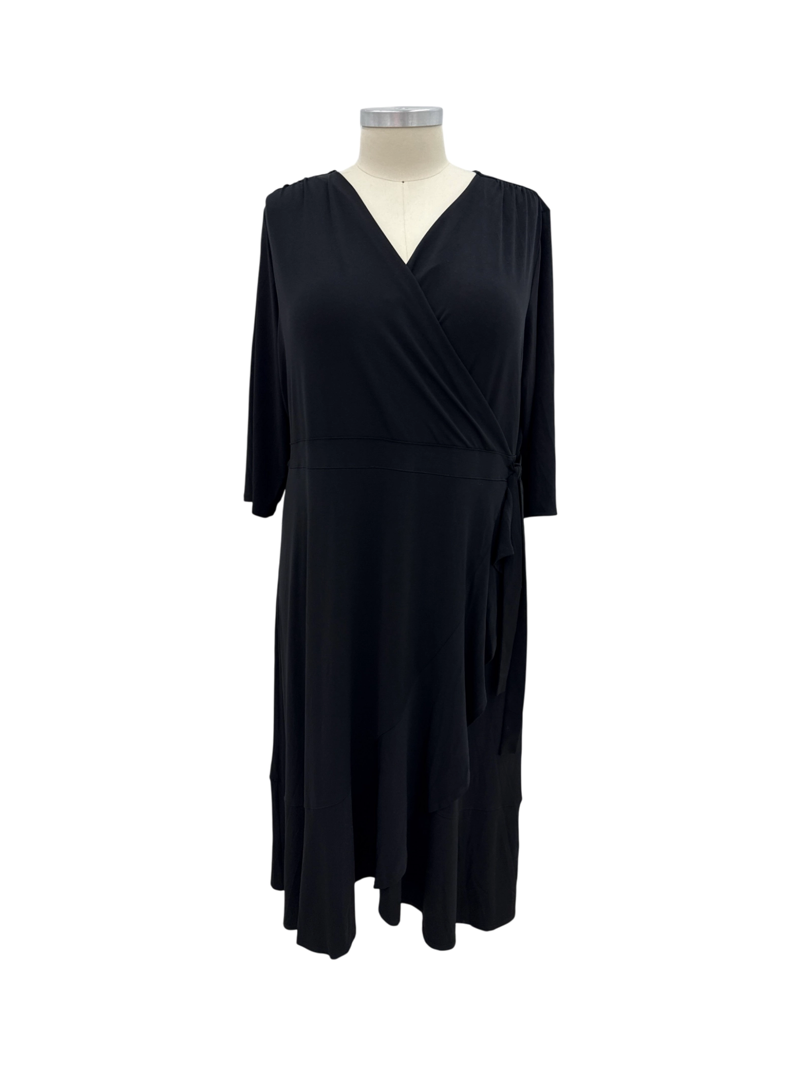 This elegant Lane Bryant dress is the perfect addition to any wardrobe. Crafted from a comfortable blend of polyester and spandex, this black dress features a flattering V-neck, mid sleeves, and an A-line silhouette. The midi skirt length is ideal for a versatile look, suitable for casual occasions. Its design ensures a comfortable and stylish fit, making it a great choice for both day and evening wear.
