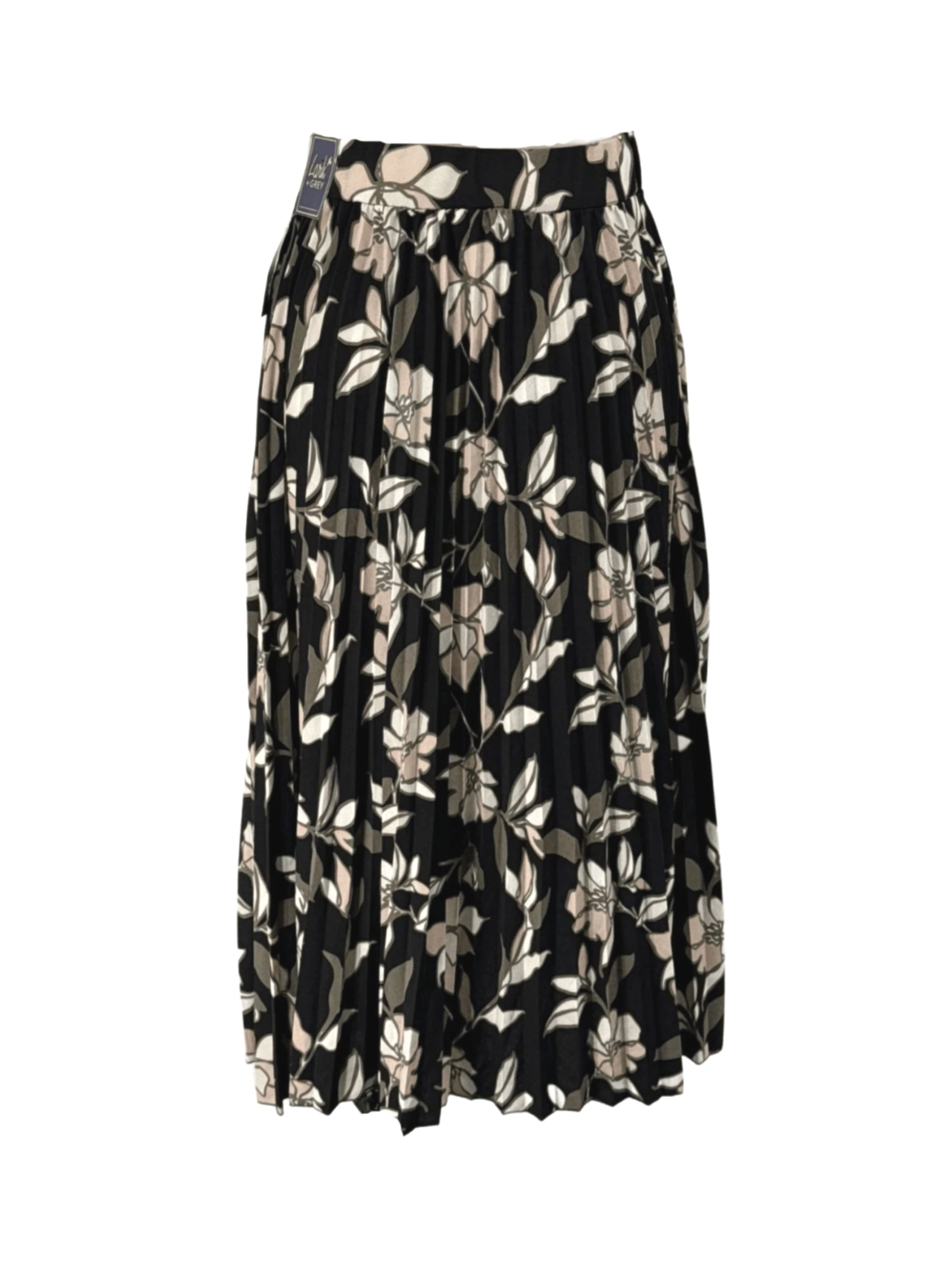 This pre-owned Lark + Grey skirt is a stylish and versatile addition to any wardrobe. Featuring a flattering pleated design with a beautiful floral pattern on a black background, it's perfect for summer, spring, and fall. Made with comfortable polyester and spandex fabric, it's easy to wear and care for. The midi length adds a touch of elegance. Ideal for creating a chic and feminine look.