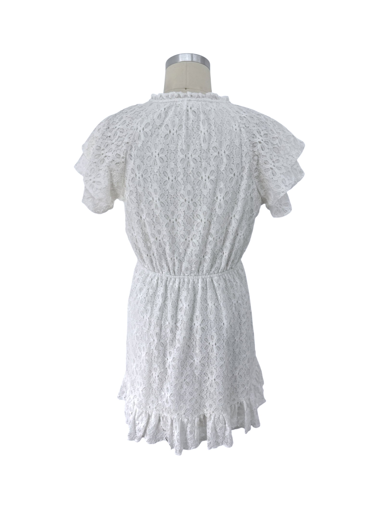 This pre-owned Lauren Conrad dress is perfect for a summer day. It features a delicate white floral lace pattern and an A-line silhouette. The dress has a keyhole neckline and short sleeves. Made from a blend of cotton, nylon, and polyester, this dress is both comfortable and stylish. It's ideal for casual outings, offering a charming and feminine look for any occasion. It’s in excellent condition.