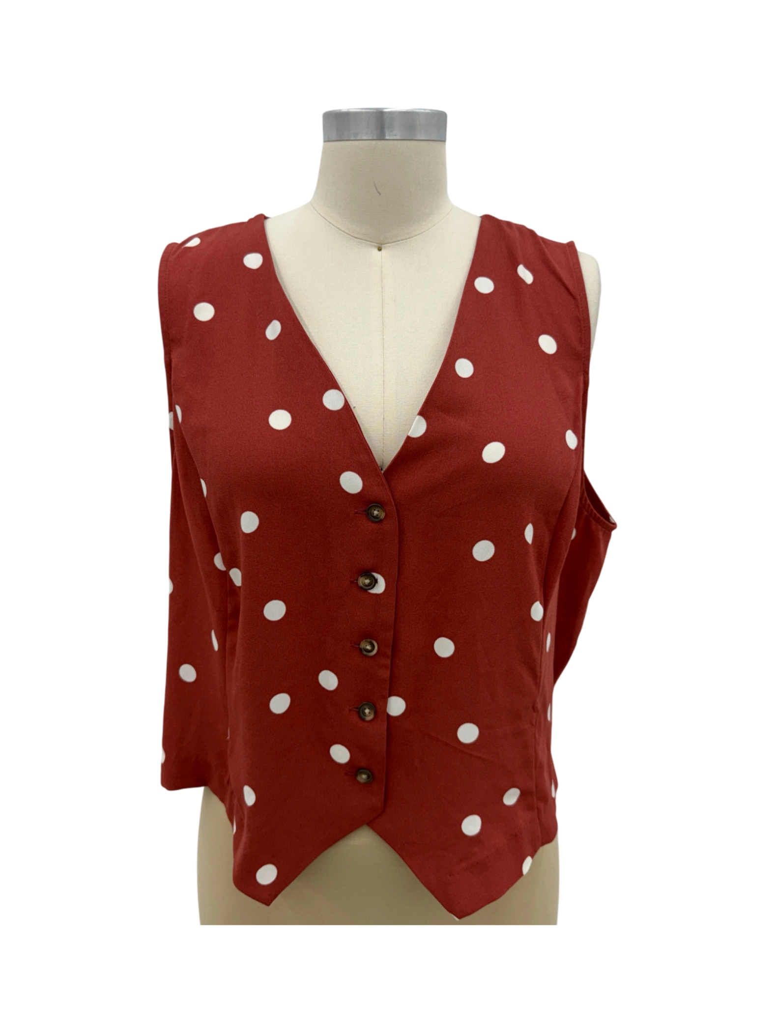 Elevate your wardrobe with this stylish pre-owned Lauren Conrad vest. This vest is a perfect layering piece for any season. Features a classic V-neck and a flattering fit, this vest is perfect for creating a chic and versatile look. The polka dots add a touch of playful charm, making it easy to dress up or down. Made from high-quality material, this vest offers both comfort and durability. This second-hand piece is a sustainable choice. - This pre-owned Lauren Conrad vest is a chic addition to any wardrobe. Featuring a classic V-neck and sleeveless design, this vest offers a flattering fit. Crafted from lightweight polyester with a unique dot pattern, it's perfect for layering or wearing on its own. Ideal for summer and fall, this vest adds a touch of sophistication to both casual and semi-formal outfits. Made in Indonesia, this vest is a timeless piece that will elevate your style.