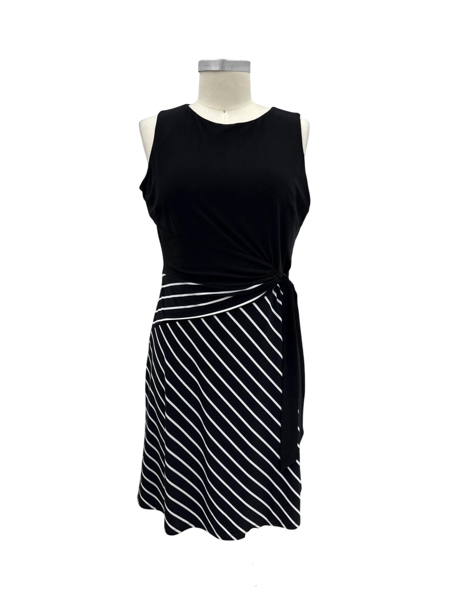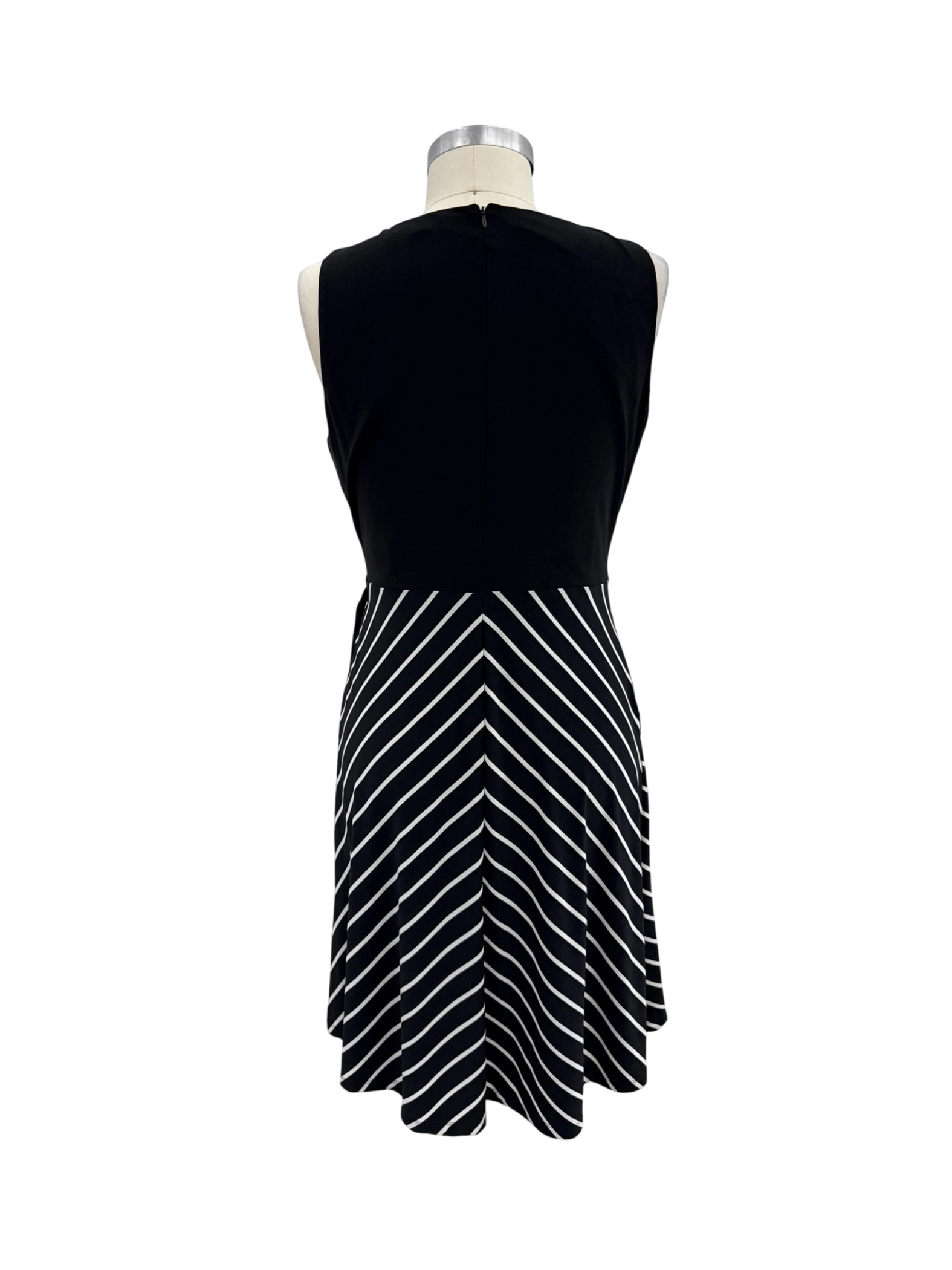 This elegant Lauren Ralph Lauren sleeveless dress is perfect for any occasion. Designed with a flattering A-line silhouette, it features a classic black and white striped pattern. Made from a comfortable blend of polyester and elastane, this dress is both stylish and easy to wear. Ideal for casual outings or cocktail parties, this dress is a versatile addition to your wardrobe.