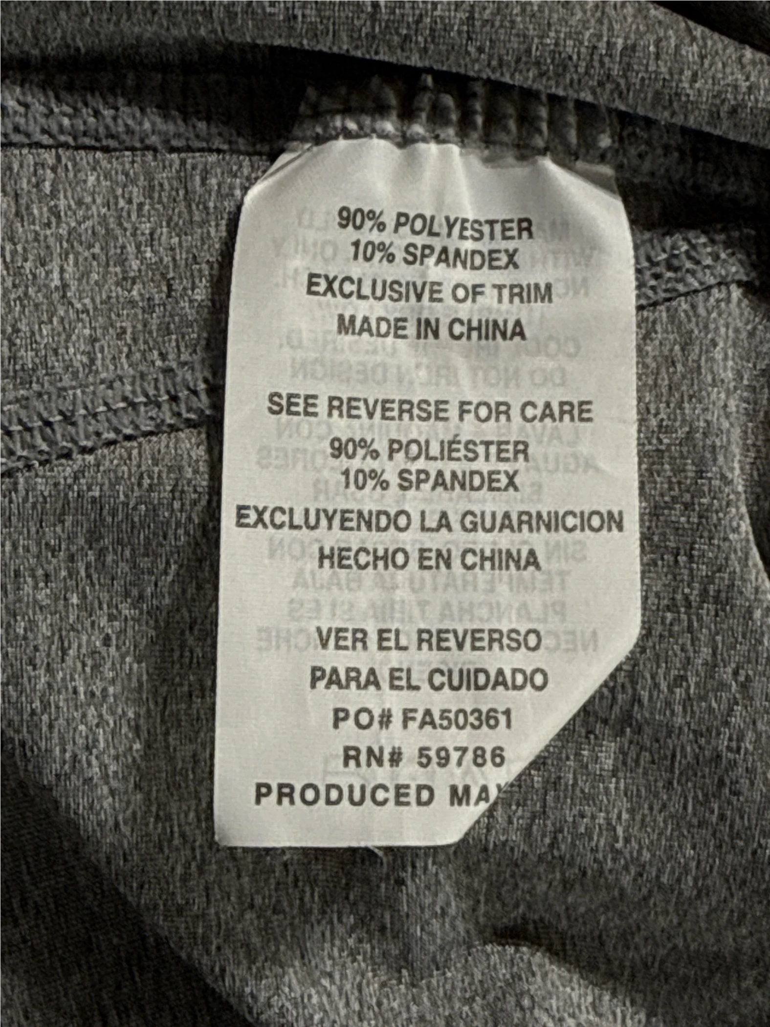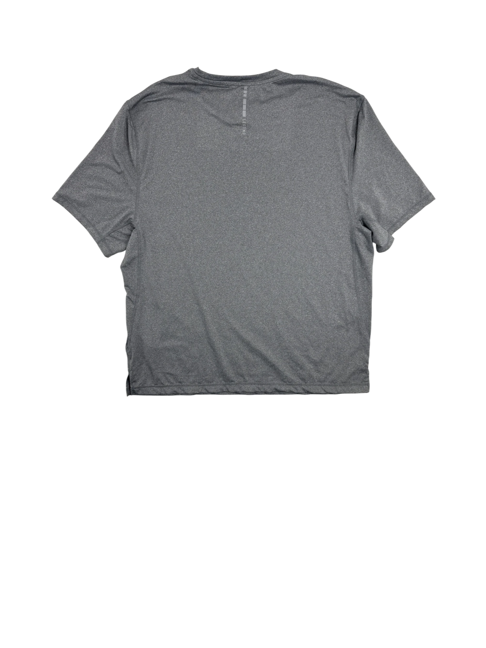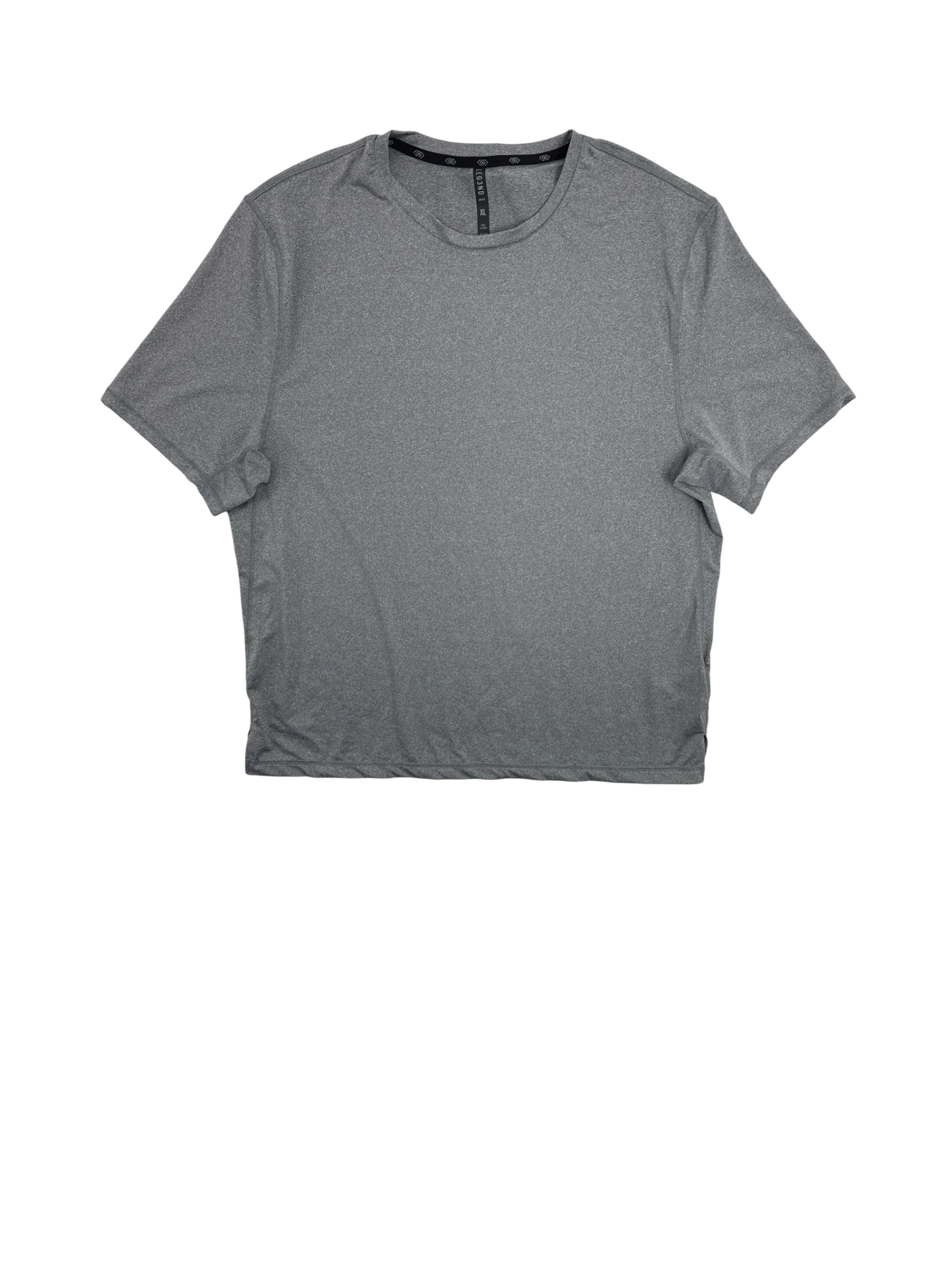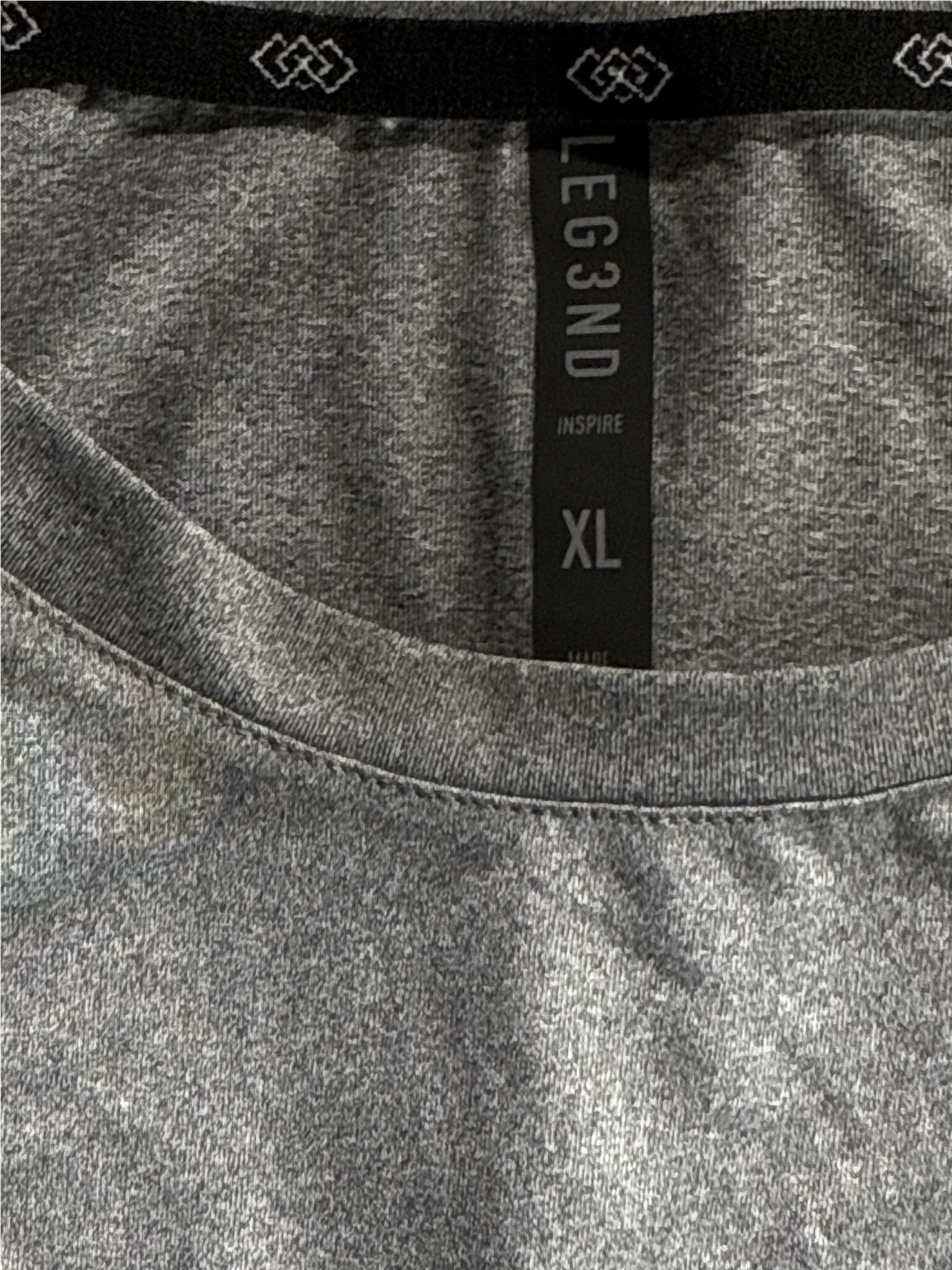 This LEG3ND men's top is a versatile addition to any wardrobe. The round neck and short sleeves make it ideal for warmer weather, while the gray color offers a neutral base for various outfits. Constructed with a blend of polyester and spandex, it promises comfort and flexibility. This second-hand top is perfect for casual wear, gym sessions, or layering. The simple design allows for easy pairing with jeans, shorts, or athletic wear.