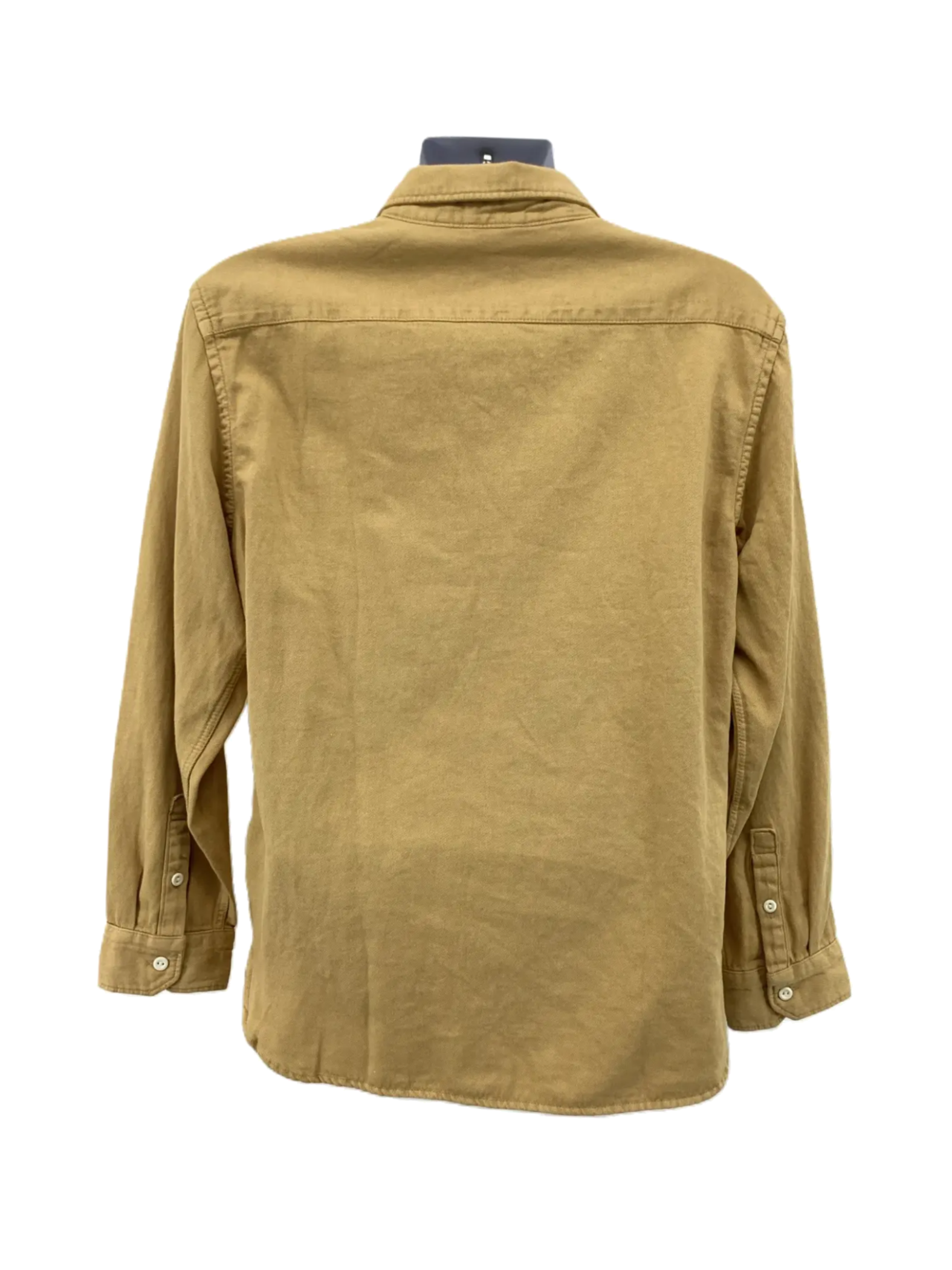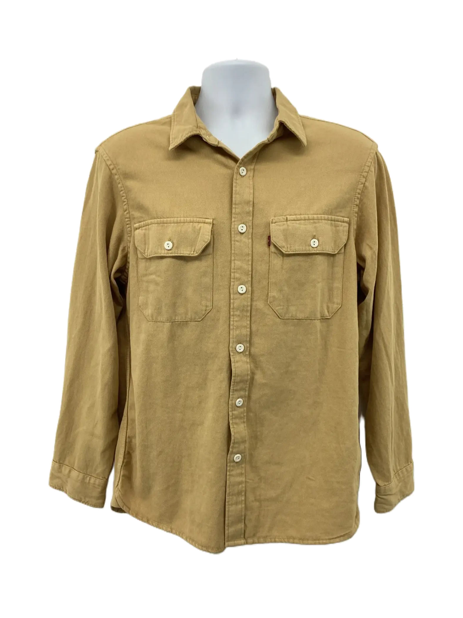 A new tan long-sleeve button-down worker shirt by Levi's Jackson Worker is available in size small with a relaxed fit.