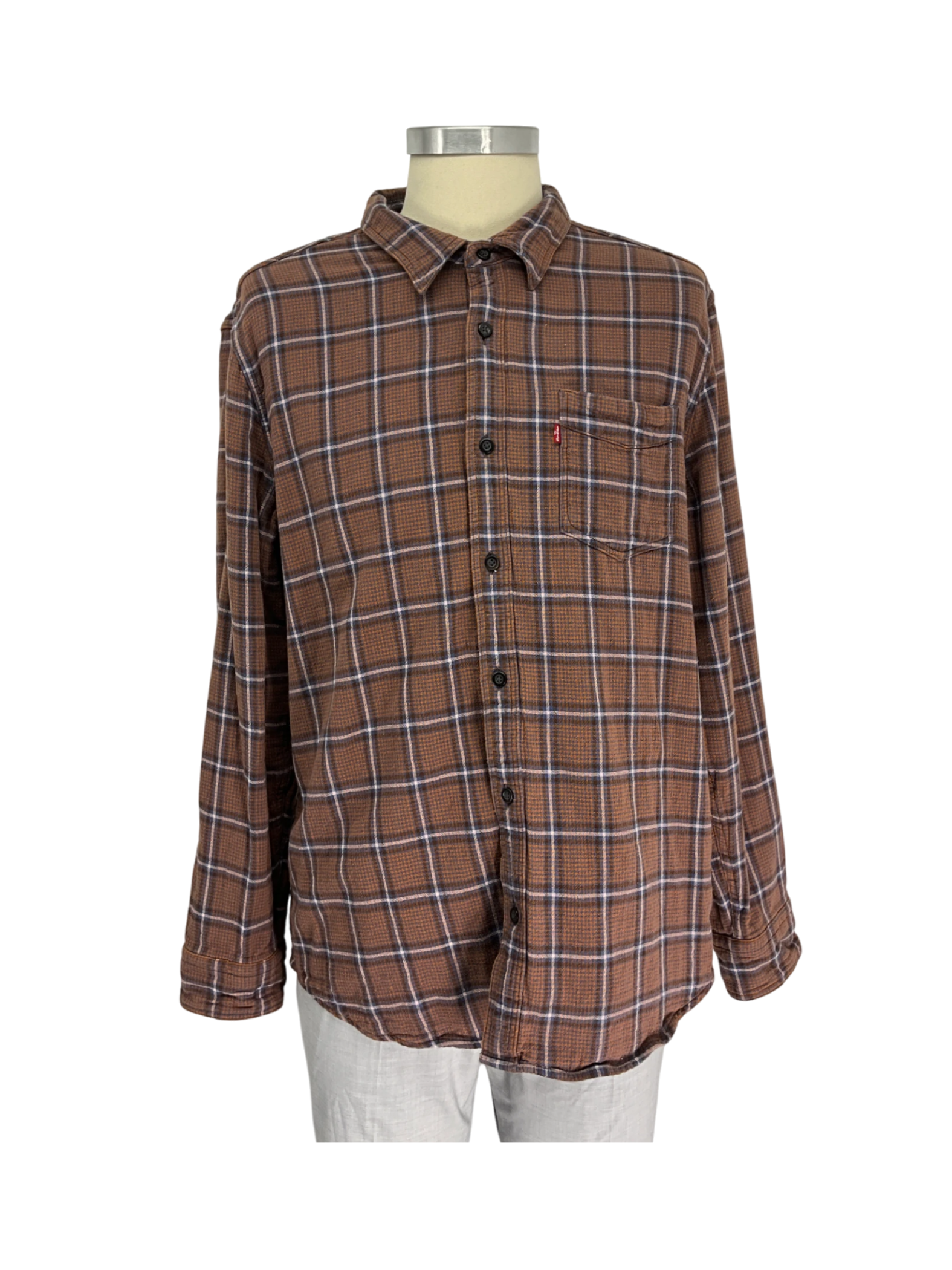 Men's long-sleeve checkered shirt with collar and button closure in size XL by Levi's.