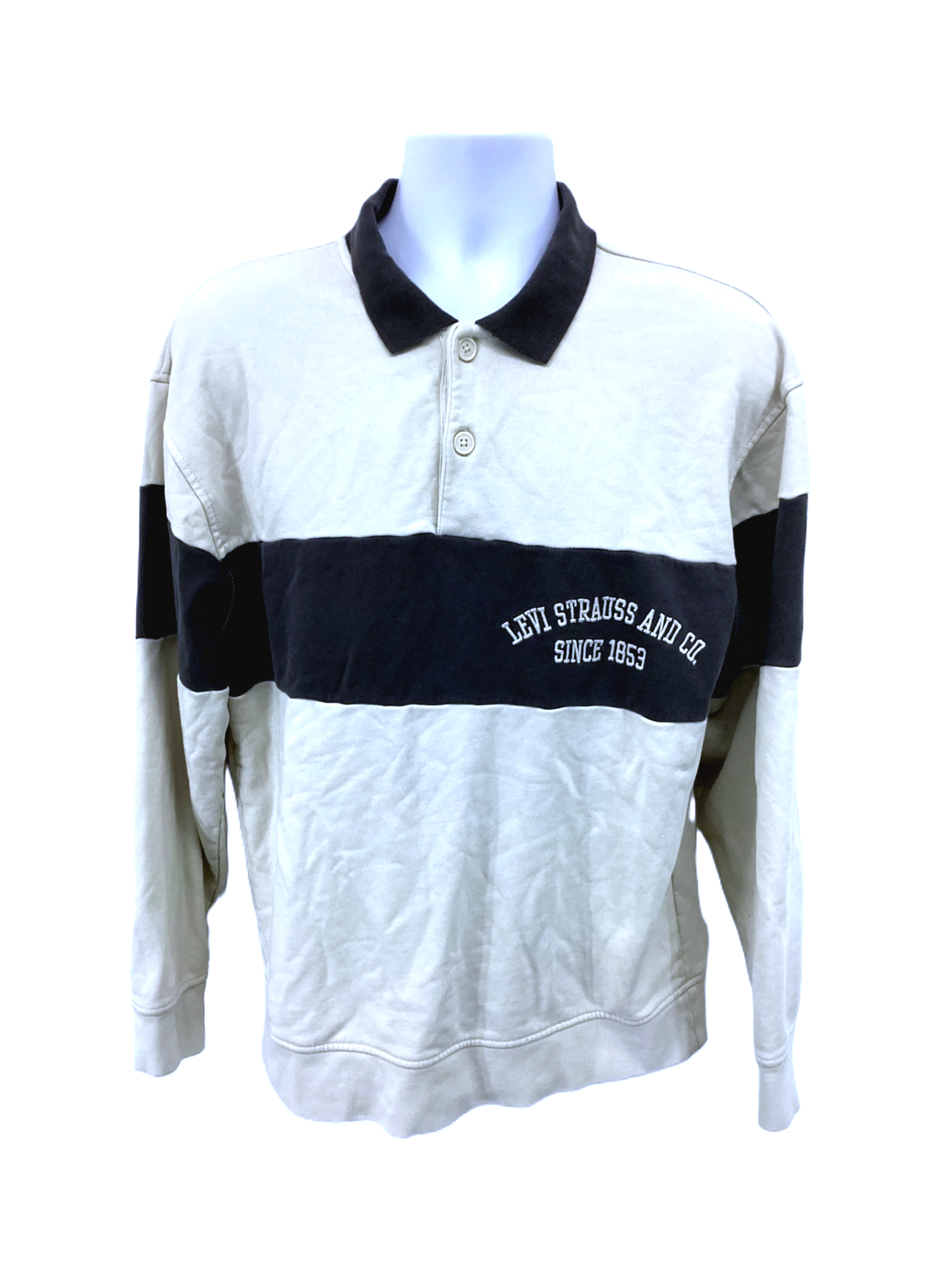 Archive Collared Crew Shirt relaxed fit size M gray and white long sleeve