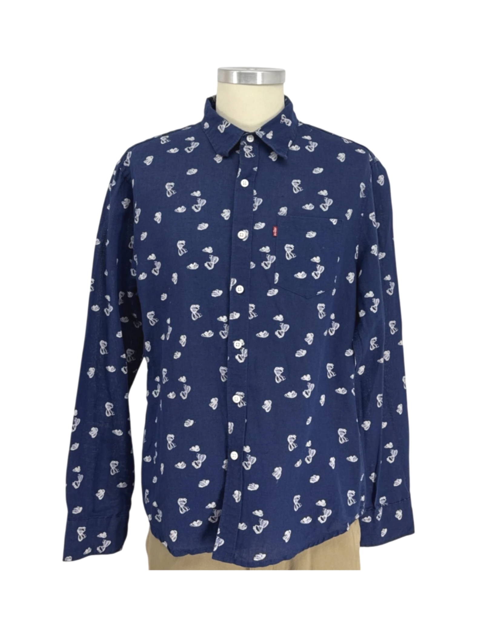 Elevate your wardrobe with this pre-owned Levi's long sleeve shirt, perfect for a stylish and comfortable look. Crafted from high-quality cotton, this shirt features a classic button-up design and a charming floral pattern on a navy blue background. Ideal for spring and fall, this shirt combines iconic Levi's quality with a touch of vintage flair. It's a versatile piece that can be dressed up or down for various occasions.