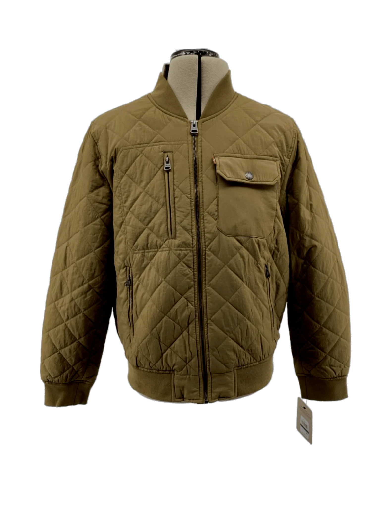 This is a men's diamond-quilted nylon bomber jacket made by Levi's.