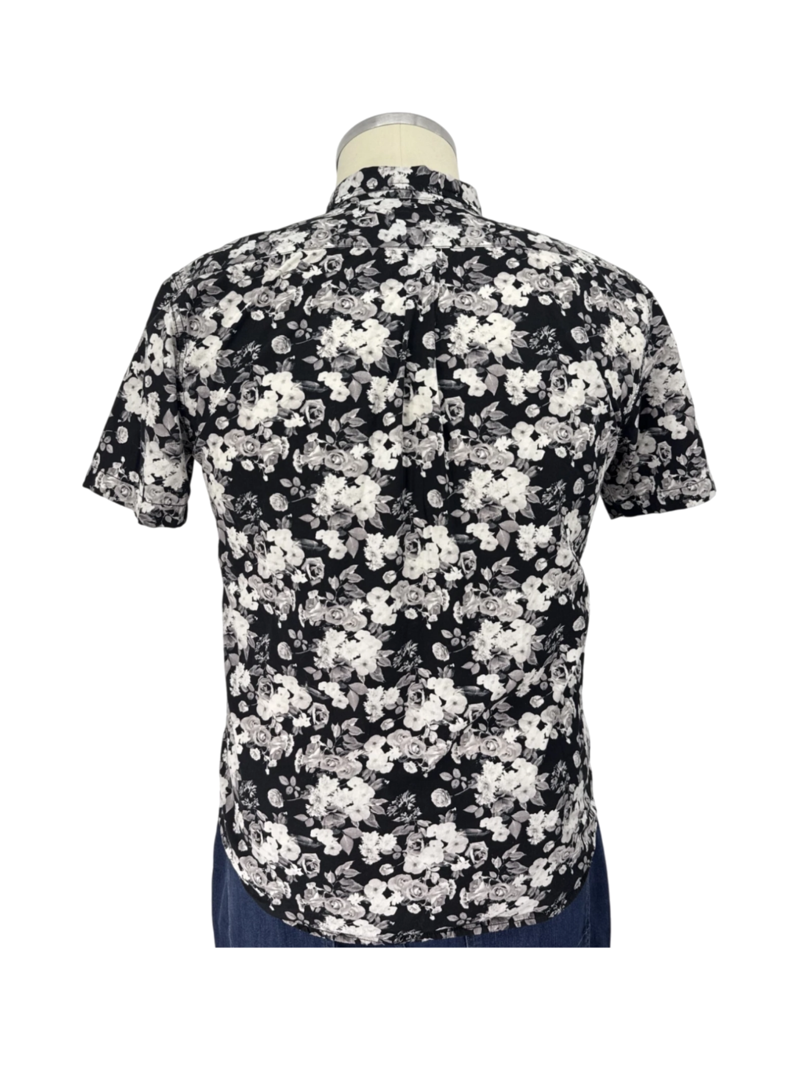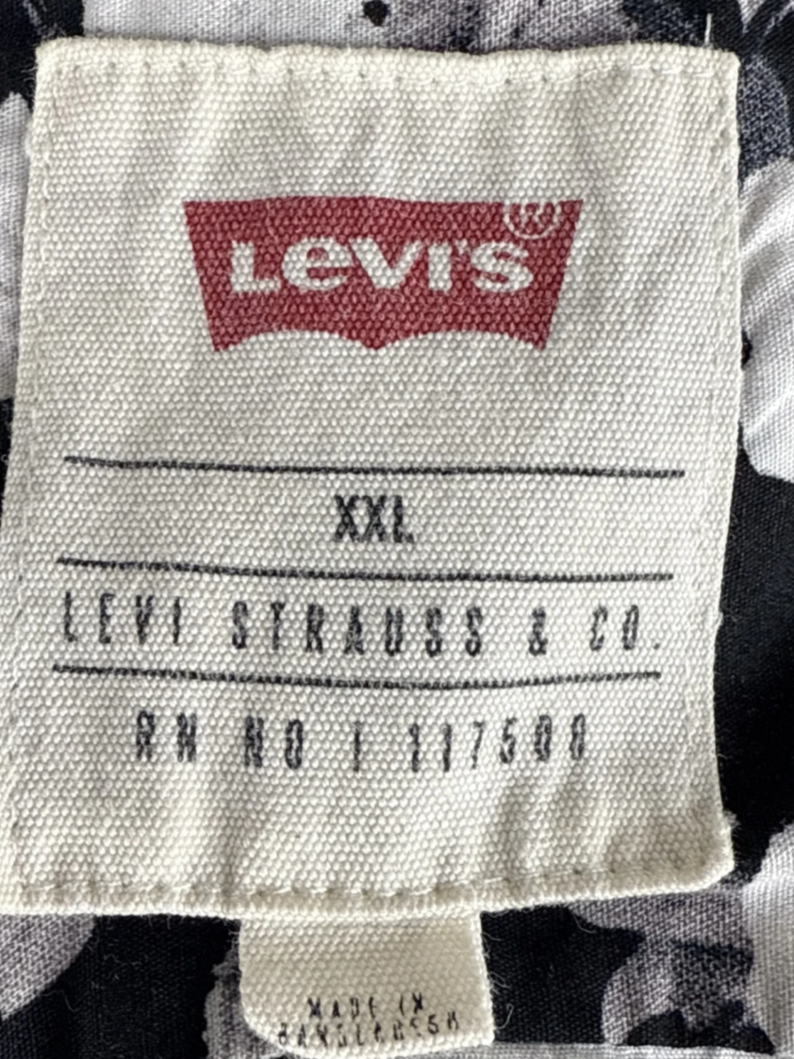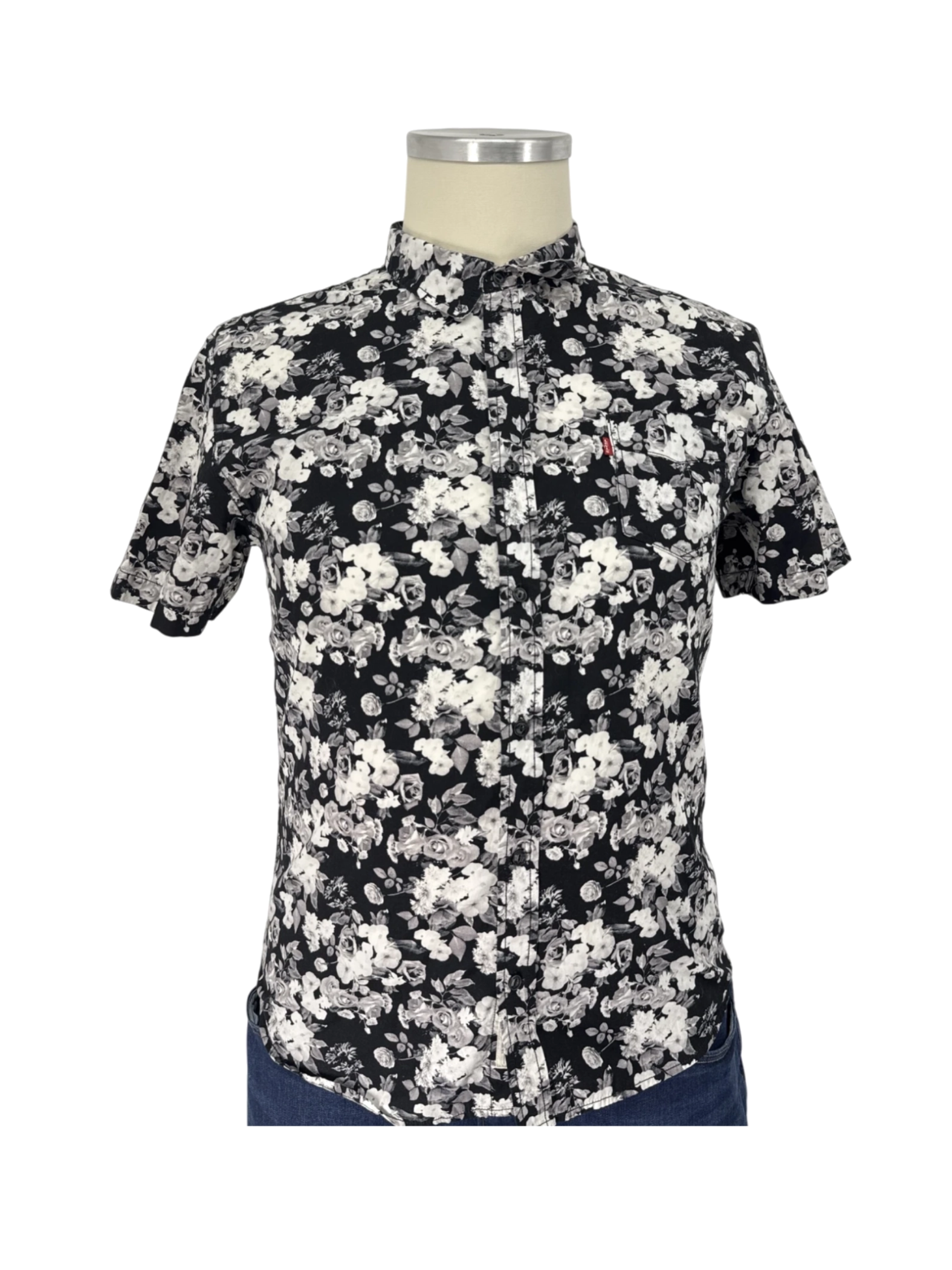 Pre-owned Levi's short-sleeve shirt for men. Featuring a classic collar and button-down closure, this shirt is made of a comfortable cotton blend. The black and white floral print adds a touch of style. Perfect for summer or spring, this shirt is a great addition to any wardrobe. It is in good condition and ready to wear. Get a stylish and affordable option for your wardrobe. This shirt is both fashionable and comfortable.