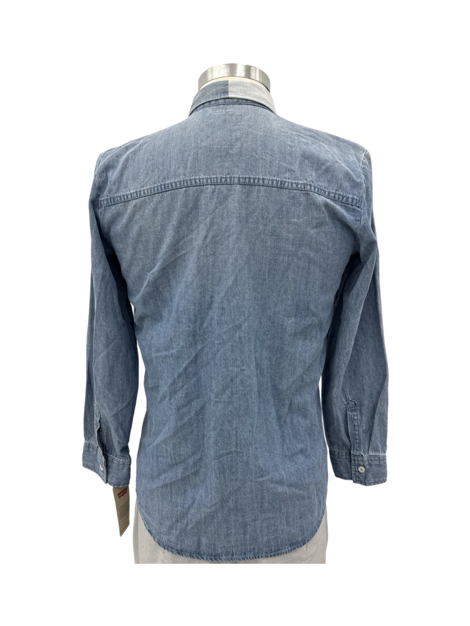 Elevate your denim game with this stylish Levi's long-sleeve shirt. This second-hand shirt features a unique patchwork design in shades of blue. Made from 100% cotton, it offers both comfort and durability. This shirt is perfect for casual wear. A great addition to any wardrobe, offering a blend of style and quality.