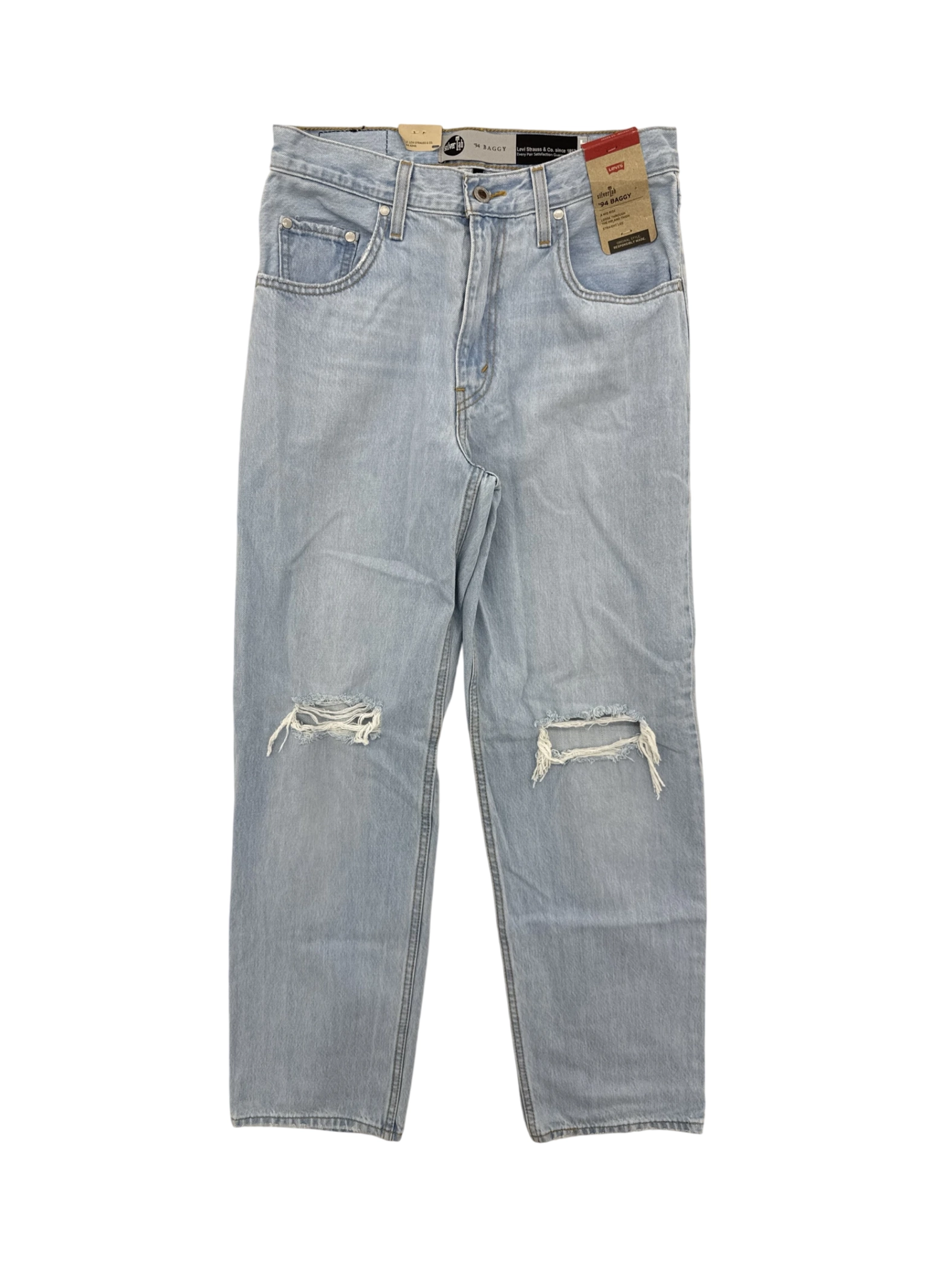94 vintage - These pre-owned Levi's '94 Baggy jeans are a stylish and comfortable addition to any wardrobe. Featuring a light denim wash and a straight leg fit, these jeans offer a classic and versatile look. The mid-rise waist and loose fit through the hip and thigh provide all-day comfort. Designed with original style and responsibly made, these jeans are perfect for casual wear. This pair is in excellent condition and ready to be your next favorite denim staple.