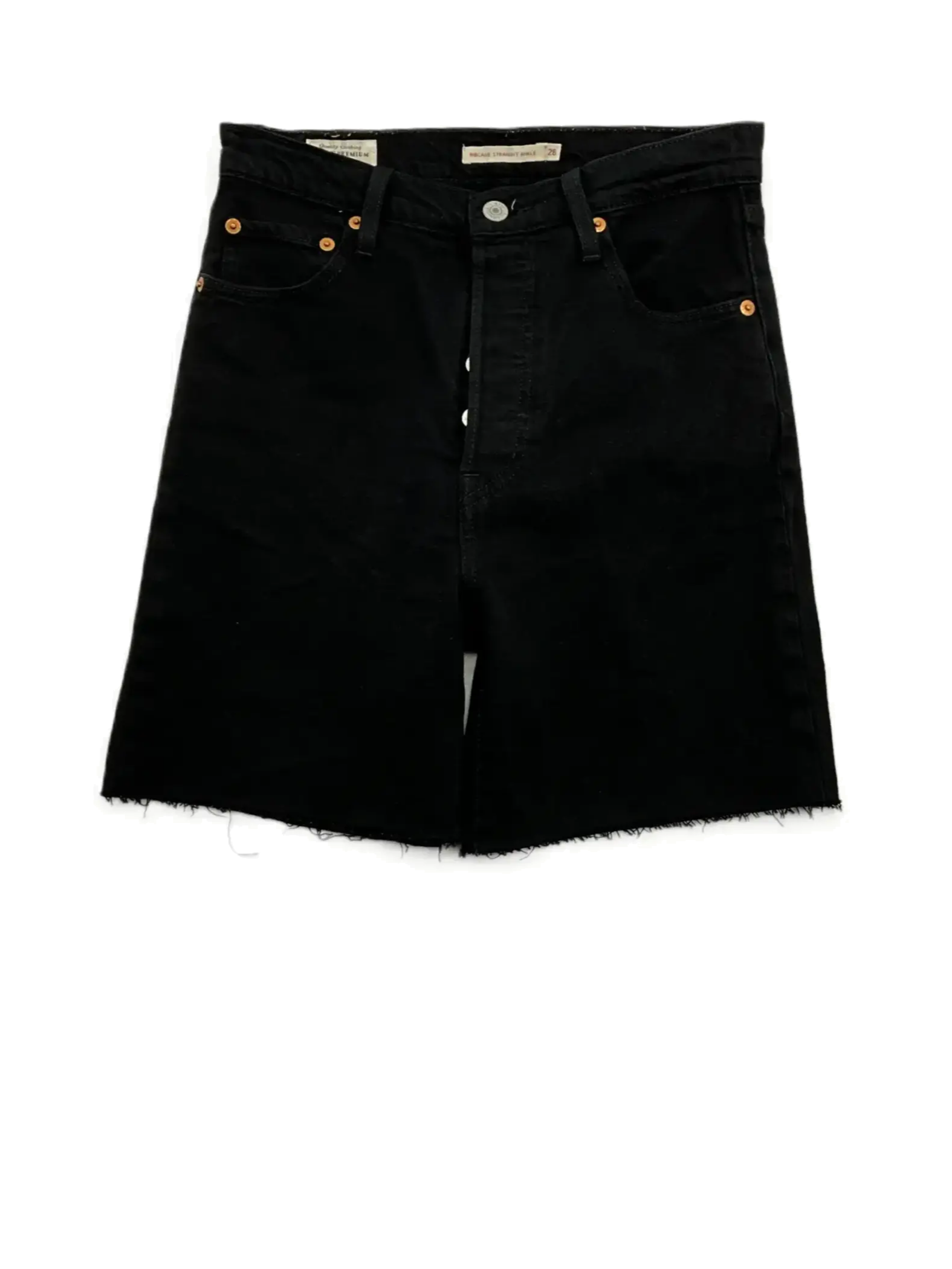 This item is a pair of black denim Levi shorts.