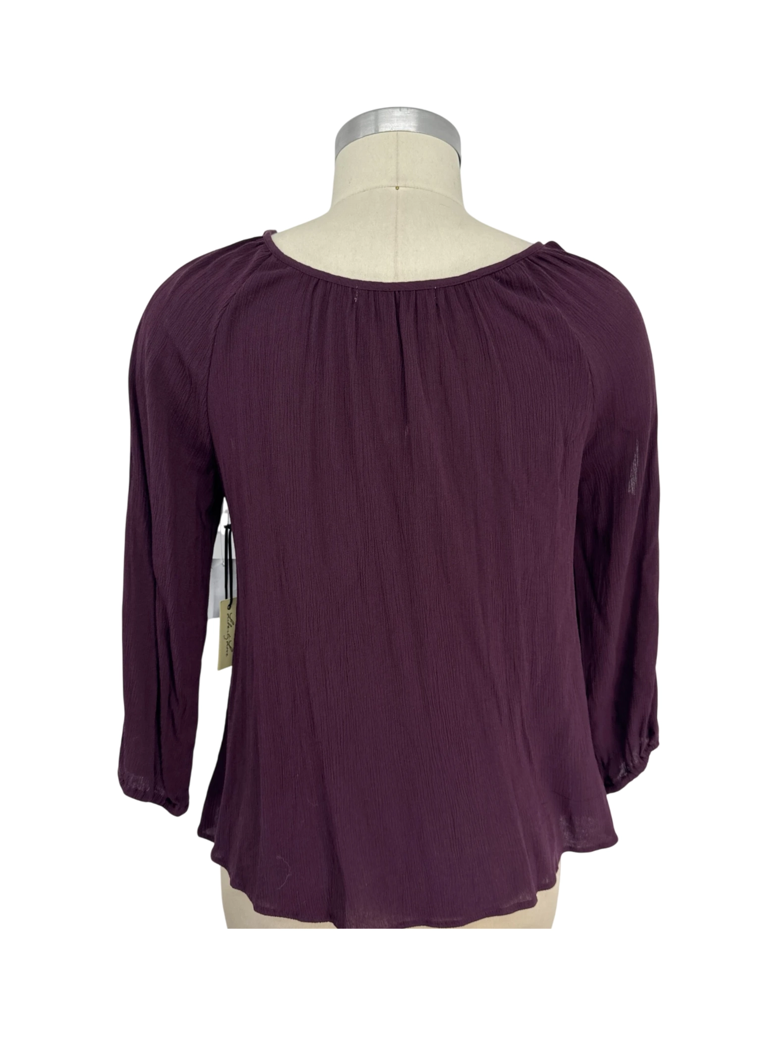 Elevate your wardrobe with this stylish pre-owned Liberty Love top. This beautiful top features a flattering V-neckline and 3/4 sleeves perfect for a chic look. Crafted from a soft and breathable rayon fabric, this top offers both comfort and style. The unique design and rich purple color make it a versatile addition to any closet. Great for casual outings or dressed up for a night out, this top is a must-have!