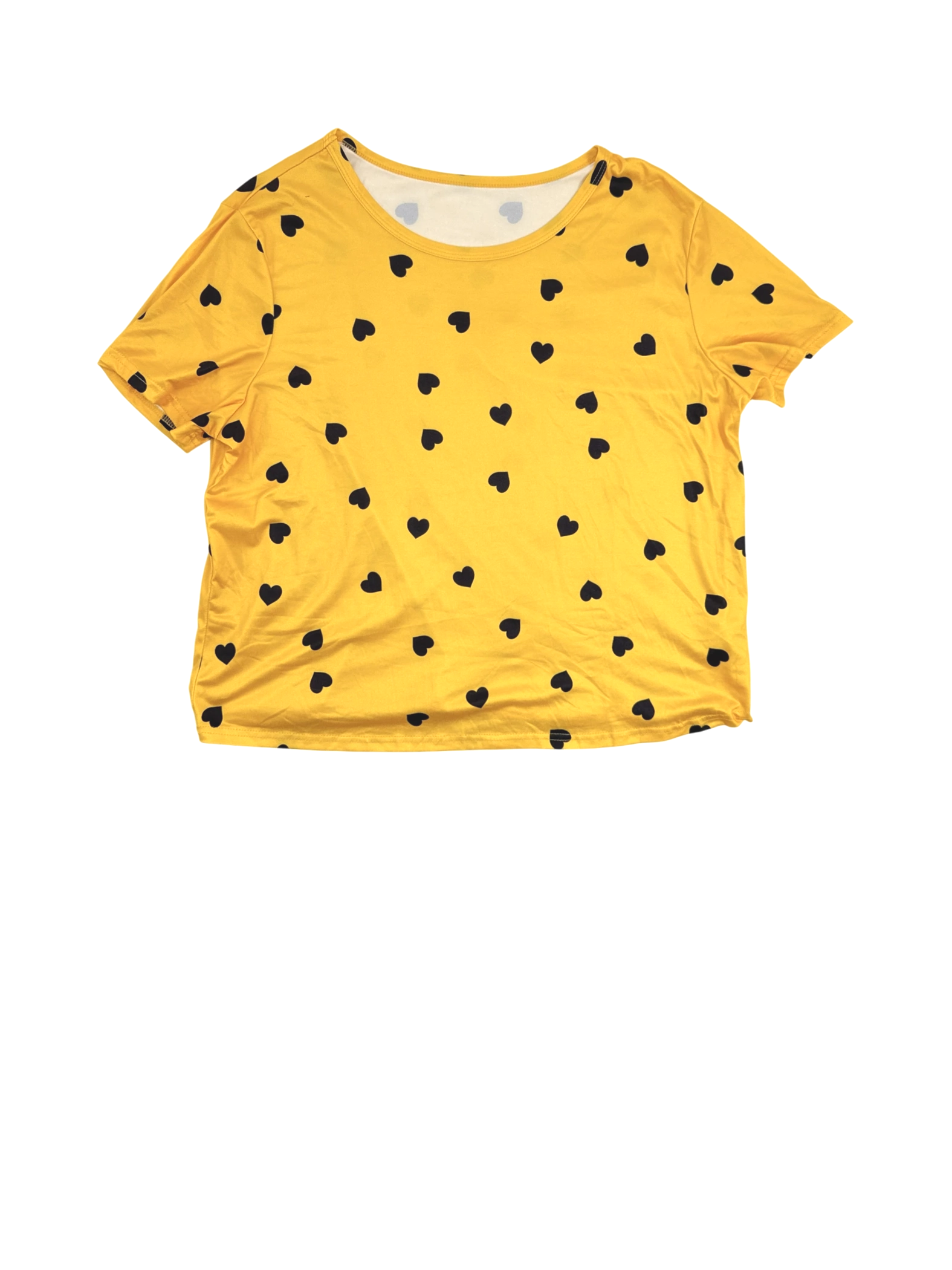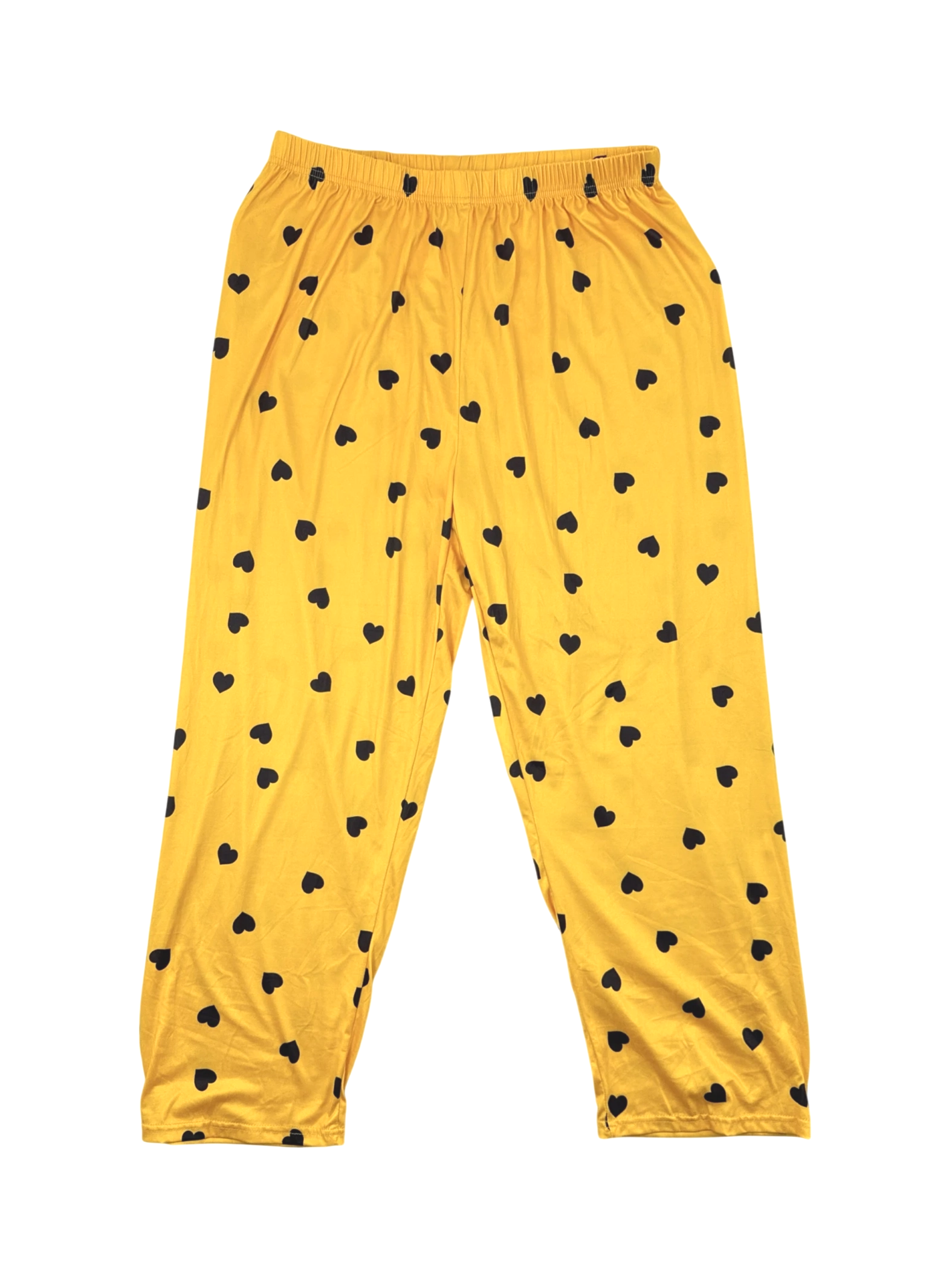 This pre-owned Lili pajama set is the perfect blend of comfort and style. Featuring a vibrant yellow hue adorned with playful black hearts, this set is ideal for warm weather. Crafted from a soft polyester blend with a touch of elastane for stretch, it offers a relaxed fit. The set includes a short-sleeved top and matching pants, making it a fun and cozy addition to any loungewear collection.