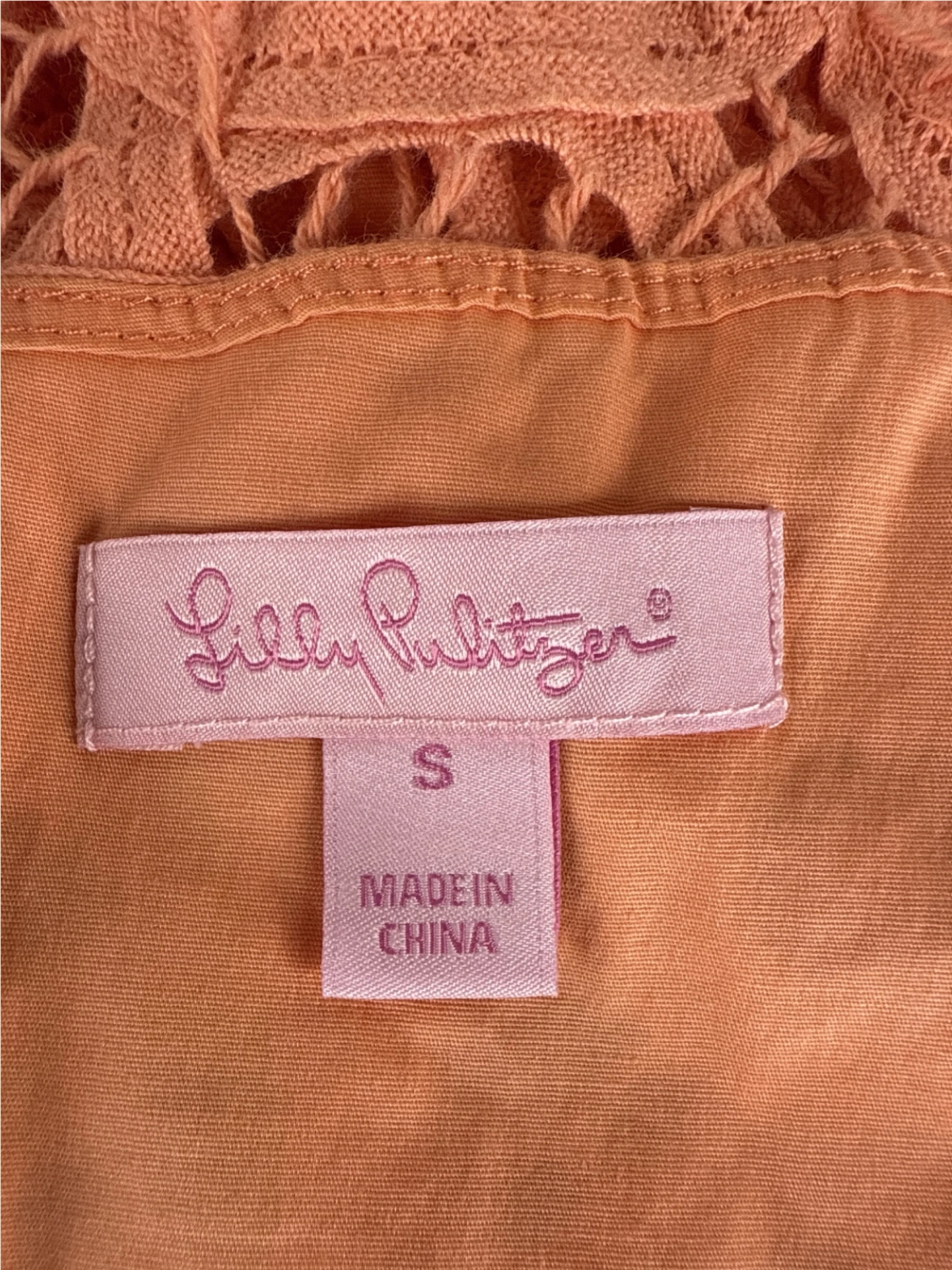 This pre-owned Lilly Pulitzer dress is a perfect addition to your summer wardrobe. Crafted from quality materials and adorned with a beautiful peach color. This dress is perfect for a casual outing or a cocktail party. Its A-line silhouette and sleeveless design offer a flattering fit, while its playful details, this dress is sure to make you feel confident and stylish. Shop now and add a touch of elegance to your look!